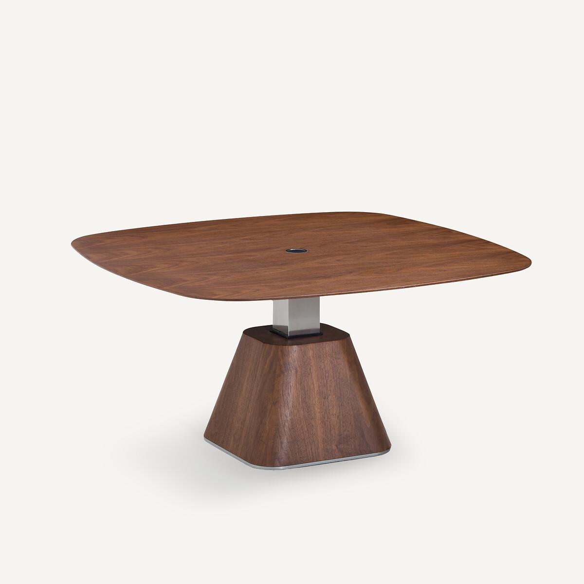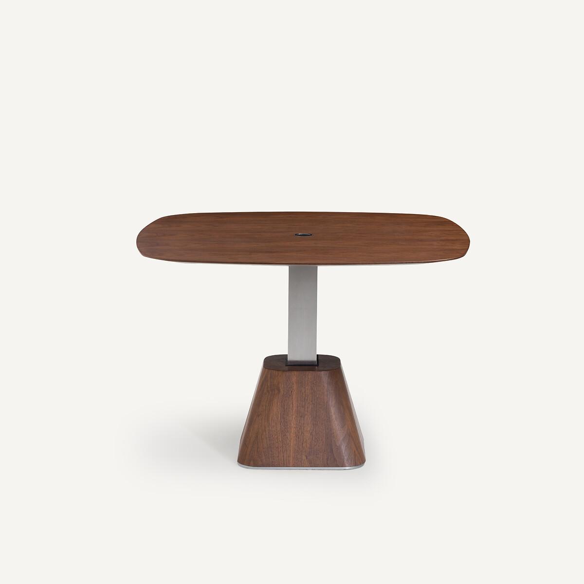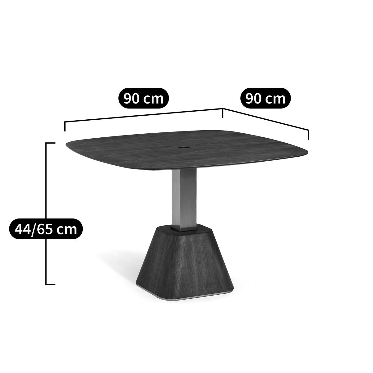 A coffee or dining table, next to a sofa or an armchair... Alteza is ideal for optimising small urban spaces. By pressing the central button, it goes up and down from 44cm to 65cm high. Intended to seat 3 to 4 guests, its walnut veneer top, with an organic profile, rests on a solid walnut base with a satin nickel finish post. An exclusive design by AMPM.Product Details • Square top in FSC® walnut veneered MDF with chamfered edges, nitrocellulose varnish finish. • Central base in metal with satin nickel finish, base in FSC®-certified solid walnut with nitrocellulose varnish finish. • Seats 3-4.Care Advice • We recommend the use of coasters and placemats, and to immediately wipe up any spilled liquid. Quality Info • Wood is a living material. The differences in shades, grains and knots reinforce its character and authenticity.. Over time it may crack slightly. It is a process caused by variations in temperature and humidity. Dimensions • Length: 90cm • Width: 90cm • Height: 44/65cmDelivery:. This product is sold ready to assemble. It will be delivered to your door. Note! Please check that all access points are large enough to accommodate your delivery (doors, stairs, lifts). • WOOD FROM SUSTAINABLY MANAGED FORESTS. FSC® certified wood comes from forests that are environmentally, socially and economically well managed. Dimensions and weight of parcel • 2 parcels • L45 x D45 x H48cm, 36kg • L100 x D100 x H80cm, 12kg