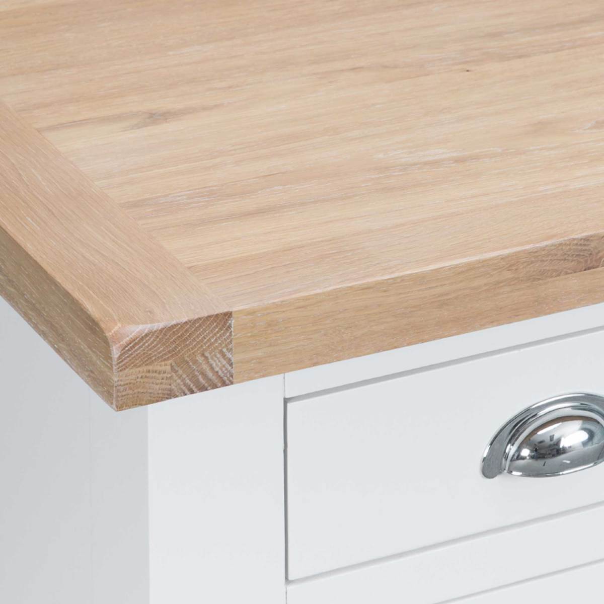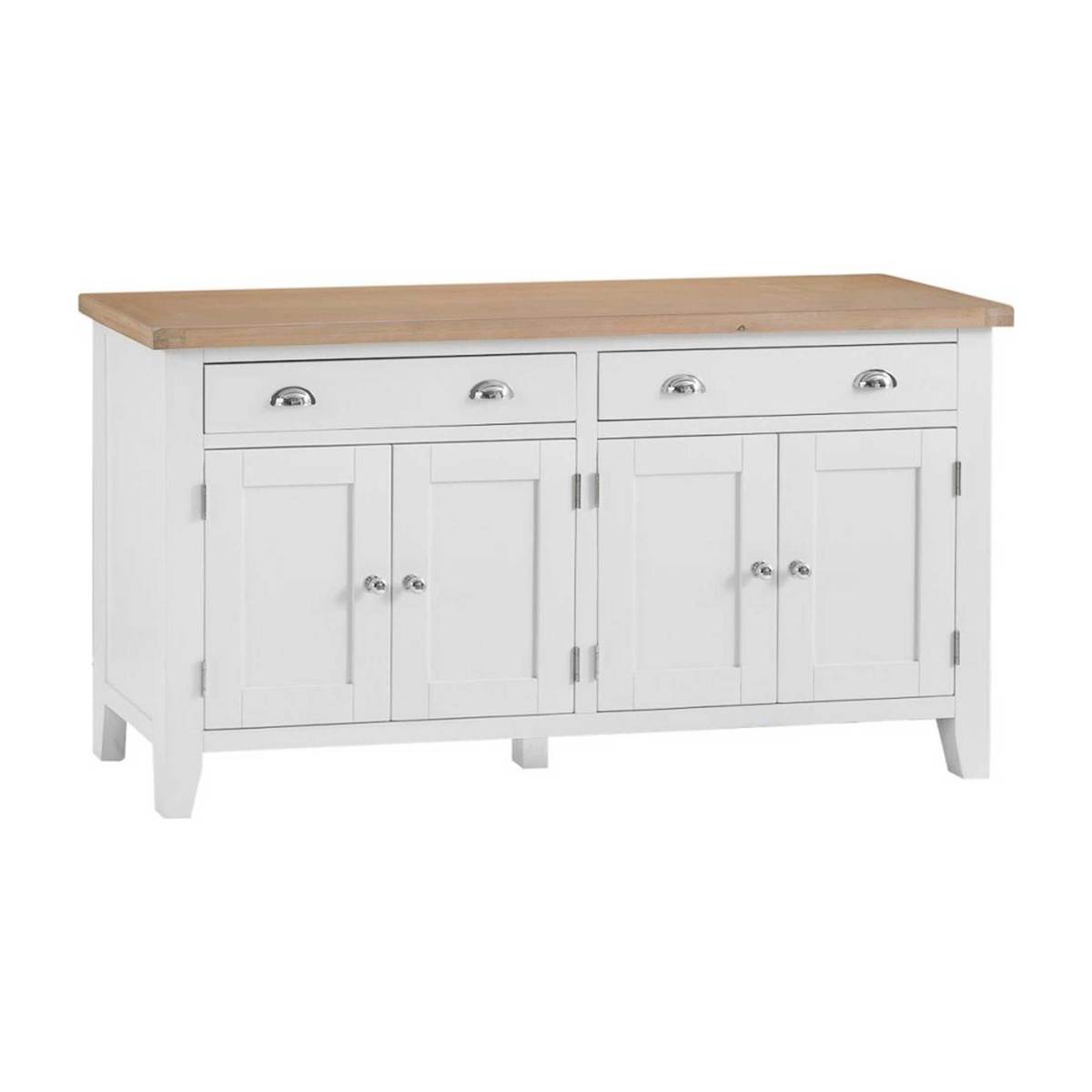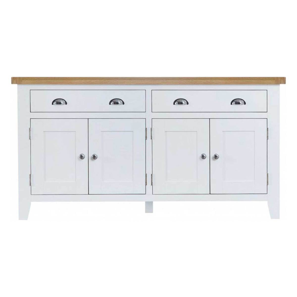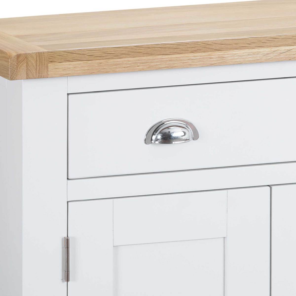 I love this sideboard for its versatile design and practical storage options. Its classic yet relaxed look makes it suitable for a range of interiors, from coastal and scandi to traditional country schemes. The white painted finish paired with the natural wooden top allows for easy styling with decorative bowls, plants, or colourful ceramics, while also hiding everyday clutter. It works particularly well in a dining room, hallway, or living space, offering ample storage for tableware or household essentials. For a contemporary touch, try combining it with modern hardware or keeping it pared-back with minimal accessories. It's a reliable piece that balances charm and function effortlessly.