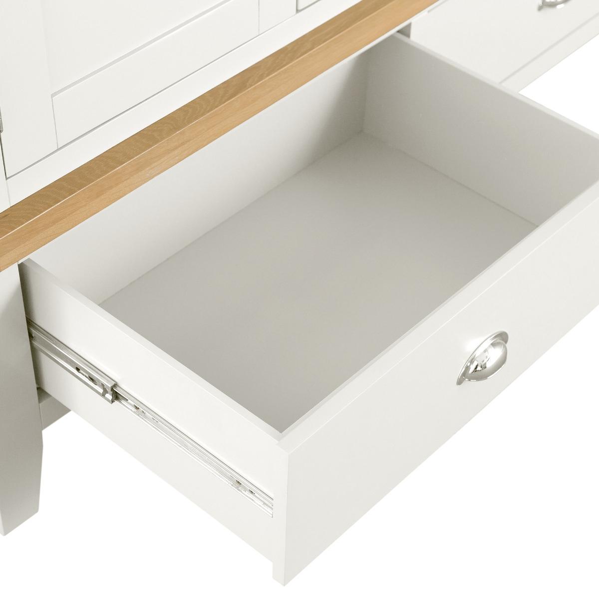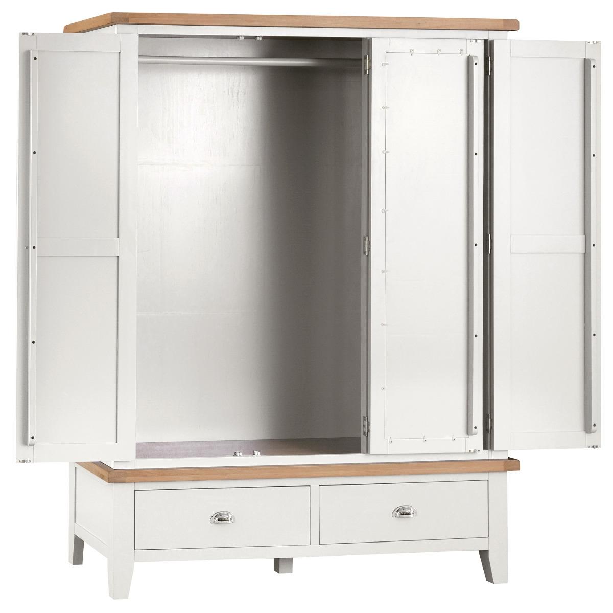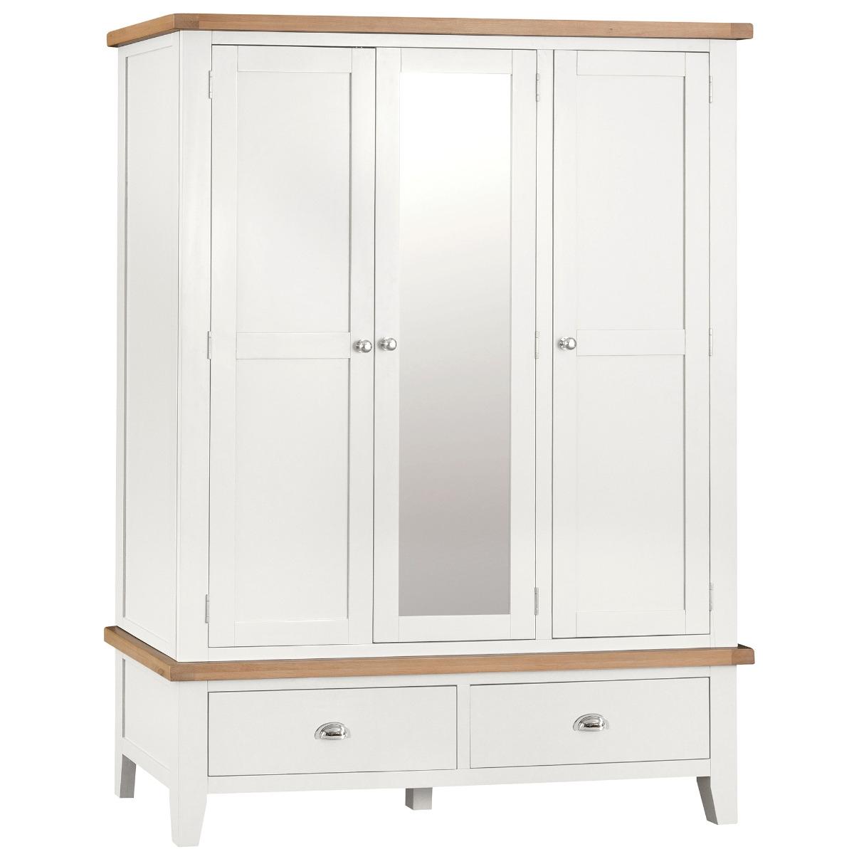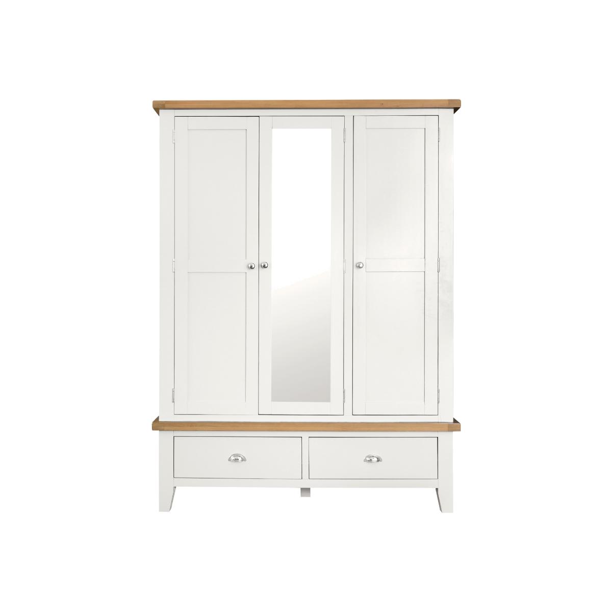 Design. Country living with a touch of modern is the ideal blend that the Althorp Large 3 Door Wardrobe introduces to your bedroom. The classic off white shade will tie in with a variety of interior settings, and the washed oak completes the timeless appearance perfectly. The Althorp Large 3 Door Wardrobe features a metal hanging rail and two drawers, providing plenty of storage options. The wardrobe is completed with a mirror in the centre; a practical addition to in keep with the airy theme this style of furniture instils.