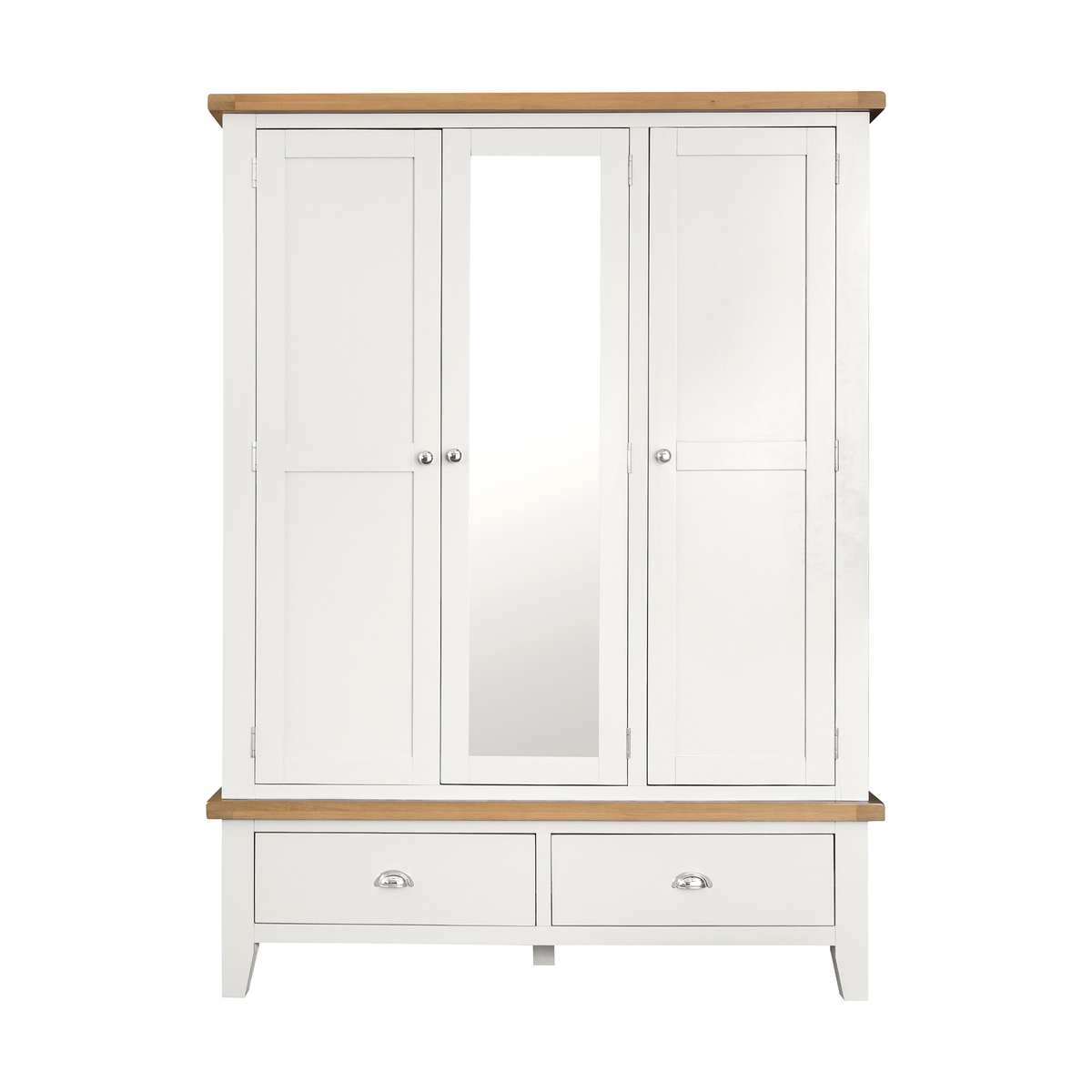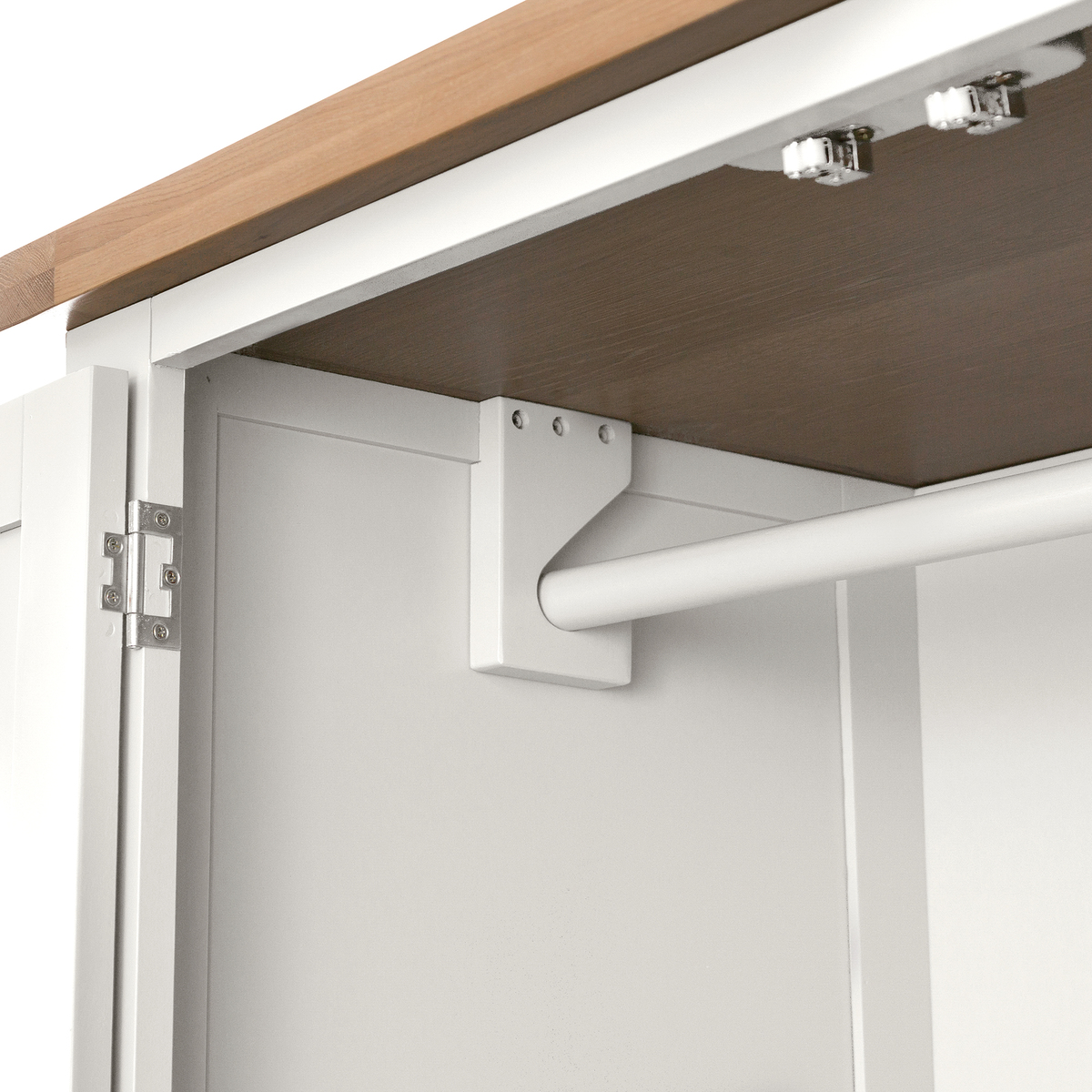 I love this wardrobe for its classic yet versatile look, making it a great focal point in both traditional and contemporary interiors. The white finish keeps it fresh and bright, while the wooden top adds warmth and texture. It's ideal for styling in cosy bedrooms, coastal schemes, or Scandi-inspired spaces. Practical tips include pairing it with minimal accessories to highlight its clean lines, or layering with textured textiles and muted tones around it for a relaxed, cohesive look. The drawers at the base also offer handy storage, keeping the space organised and clutter-free.