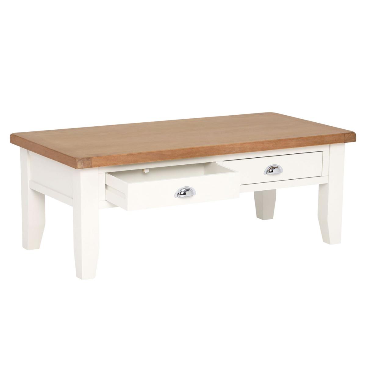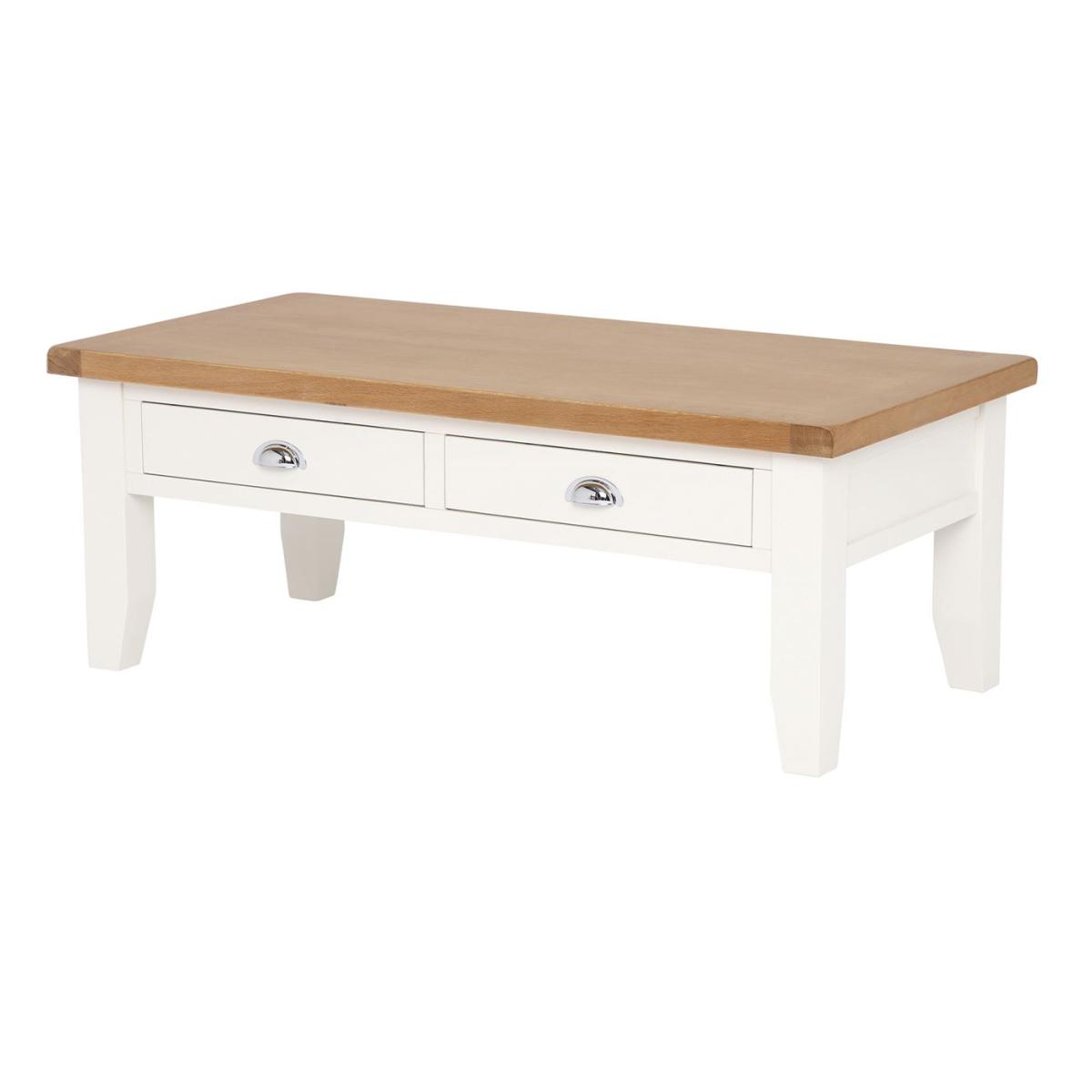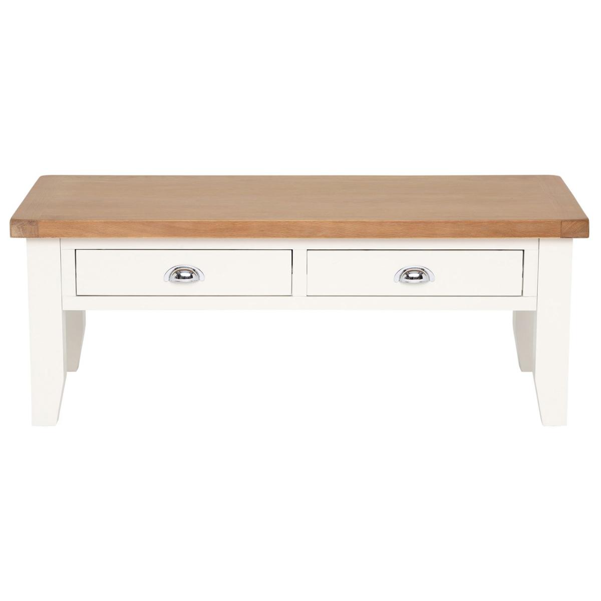 I really like this coffee table because of its versatile mix of white-painted base and natural oak top, which makes it adaptable to both traditional and contemporary interiors. It works particularly well in coastal or Scandinavian-inspired spaces where a light, airy aesthetic is desired. Practical styling tips include using it as a layered surface-pairing with a tray, candles, or brass accessories for visual interest-while keeping the top clear to preserve its natural beauty. Its sturdy design also means it can double up as a family-friendly piece with ample space for mugs, books, or a small display of greenery. Overall, it’s a great option for injecting a relaxed, yet polished look into a living room.