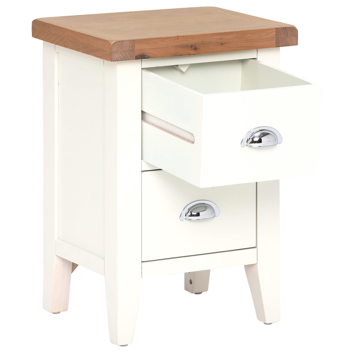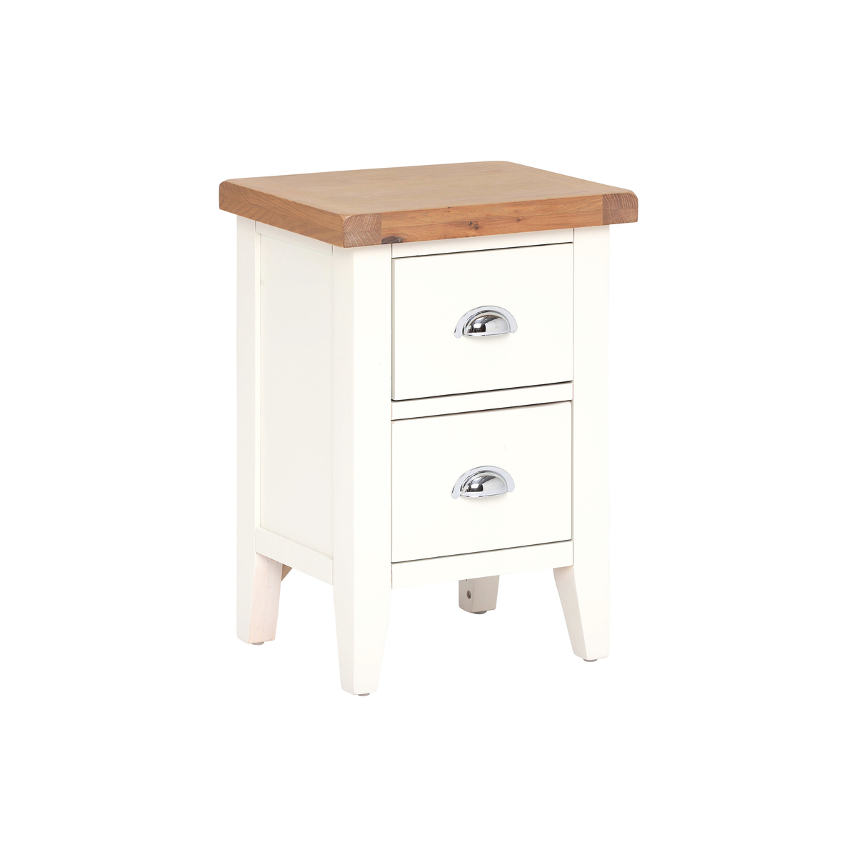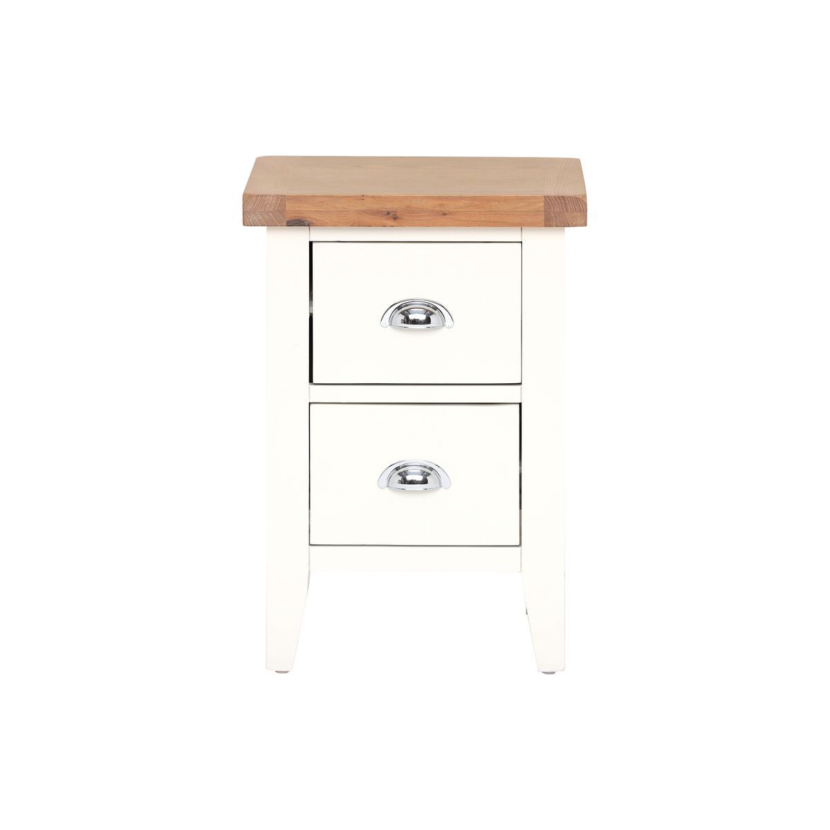 A timelessly stylish addition to the bedroom, the Althorp small bedside features a classic colour palette of fresh white and warm oak. Chrome cup candles provide a modern touch, letting it sit well within both contemporary and traditional interiors. Two deep drawers and an overhanging top provide the bedside table with plenty of room for handy storage. So you can enjoy your precious hours of downtime without the realisation that your phone charger, hand cream or glass of water is “all the way” across the room.