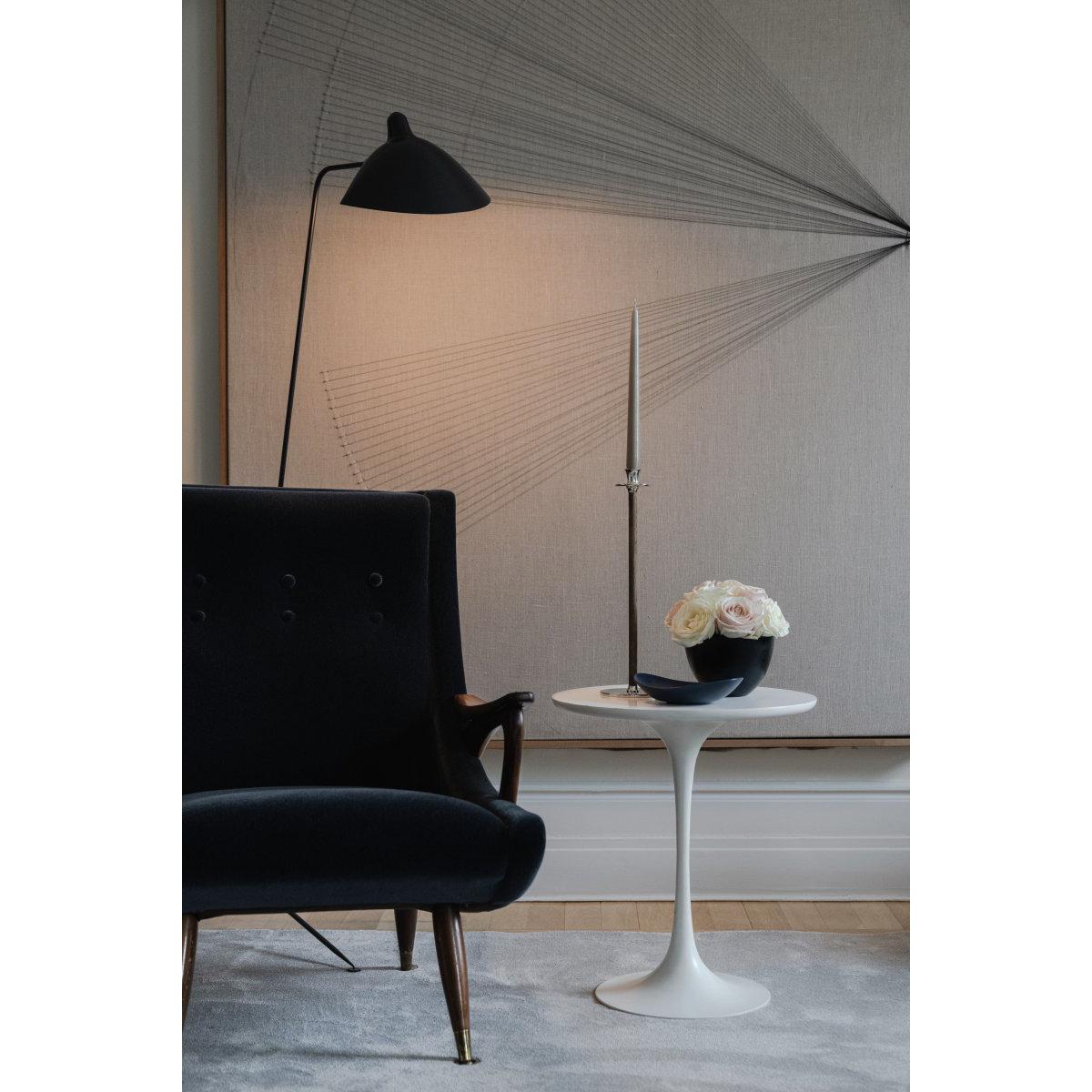I really like this candelabrum for its sleek, modern look with that polished nickel finish, which adds a touch of understated glamour. It works especially well in contemporary or minimalist interiors, but can also bring a luxe touch to more eclectic or industrial spaces. The tall, slender design makes it an excellent statement piece on a console table or dining room sideboard. For practical styling, consider grouping it with shorter candles for varied height, or pair with textured materials like velvet or wood to create contrast. Its versatile aesthetic means it can elevate both daytime tablescapes and evening arrangements, adding sophistication without overwhelming the space.