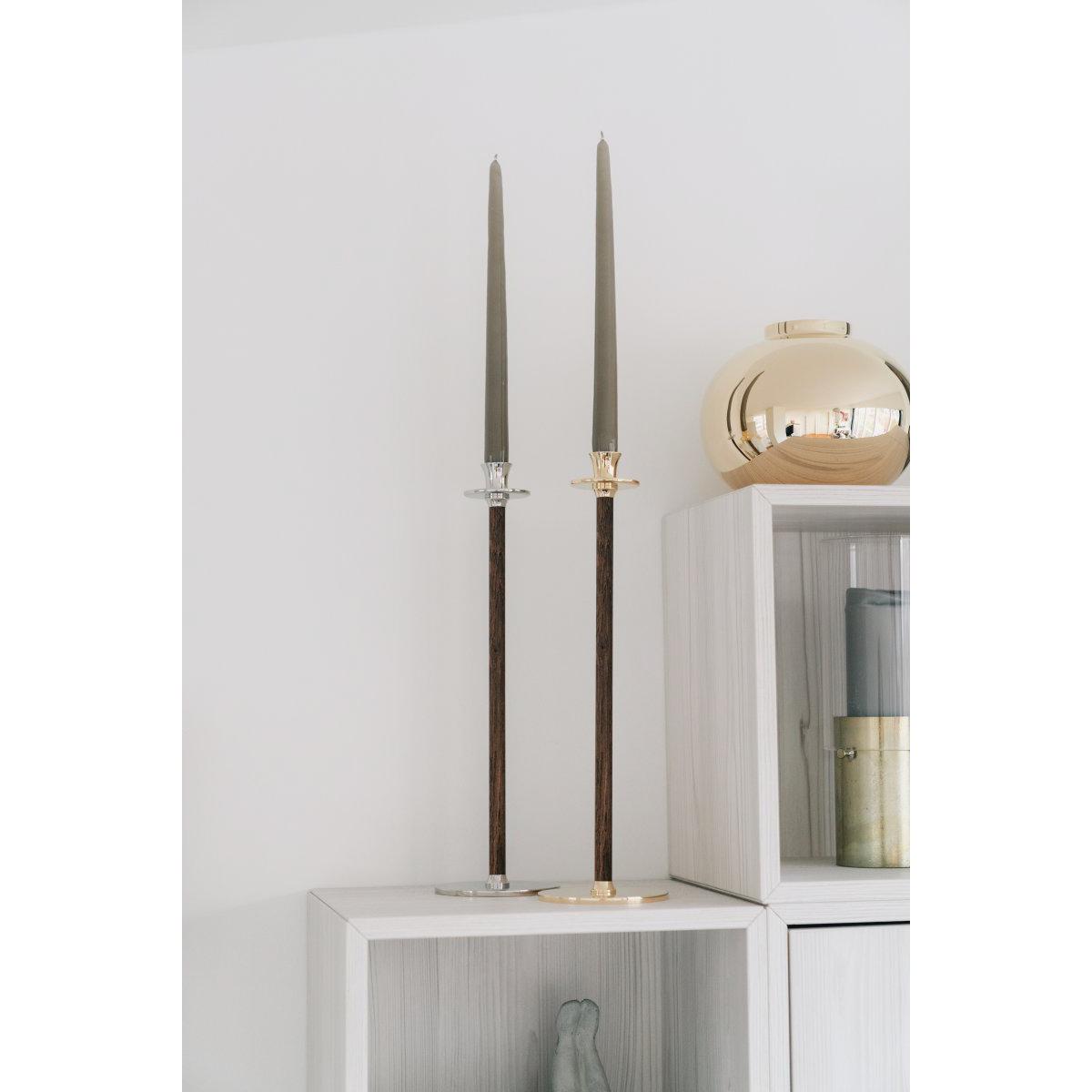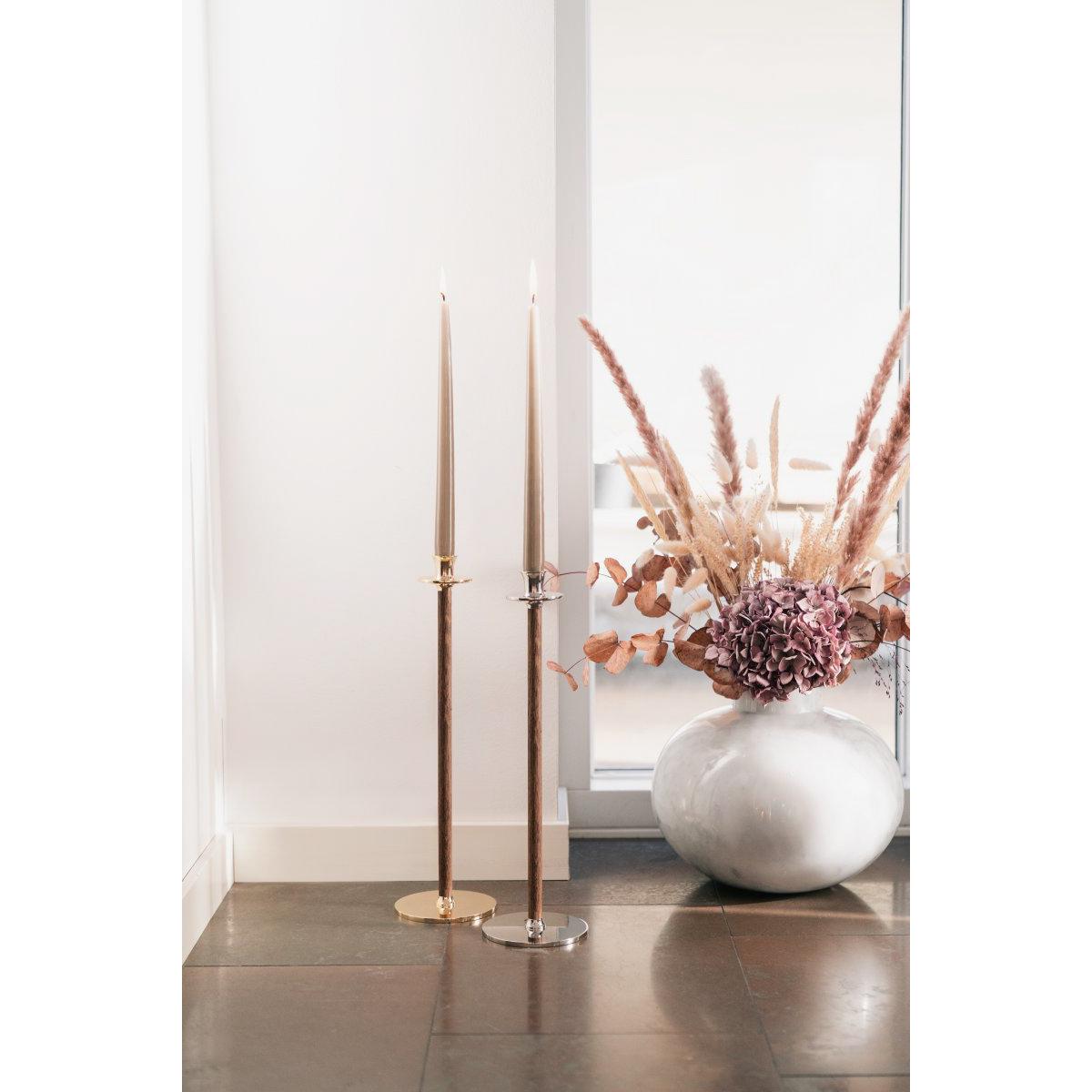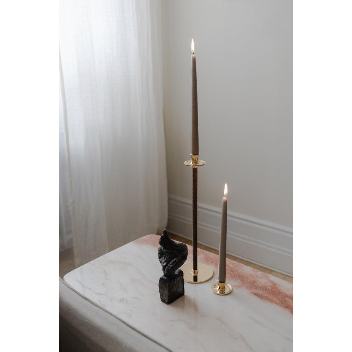 I love this style for its sleek, minimalist look that works brilliantly in both modern and traditional interiors. The brass finish adds a touch of elegance, while the solid construction ensures durability and a substantial feel. It’s perfect for creating a cosy ambiance on a dining table, sideboard, or mantelpiece. For styling tips, consider pairing it with tapered candles in neutral tones to emphasise its understated elegance, or layer it with other brass accents for a cohesive, curated look. Its height makes it especially suitable for layering with lower decorative objects or plants, adding visual interest without overwhelming the space.