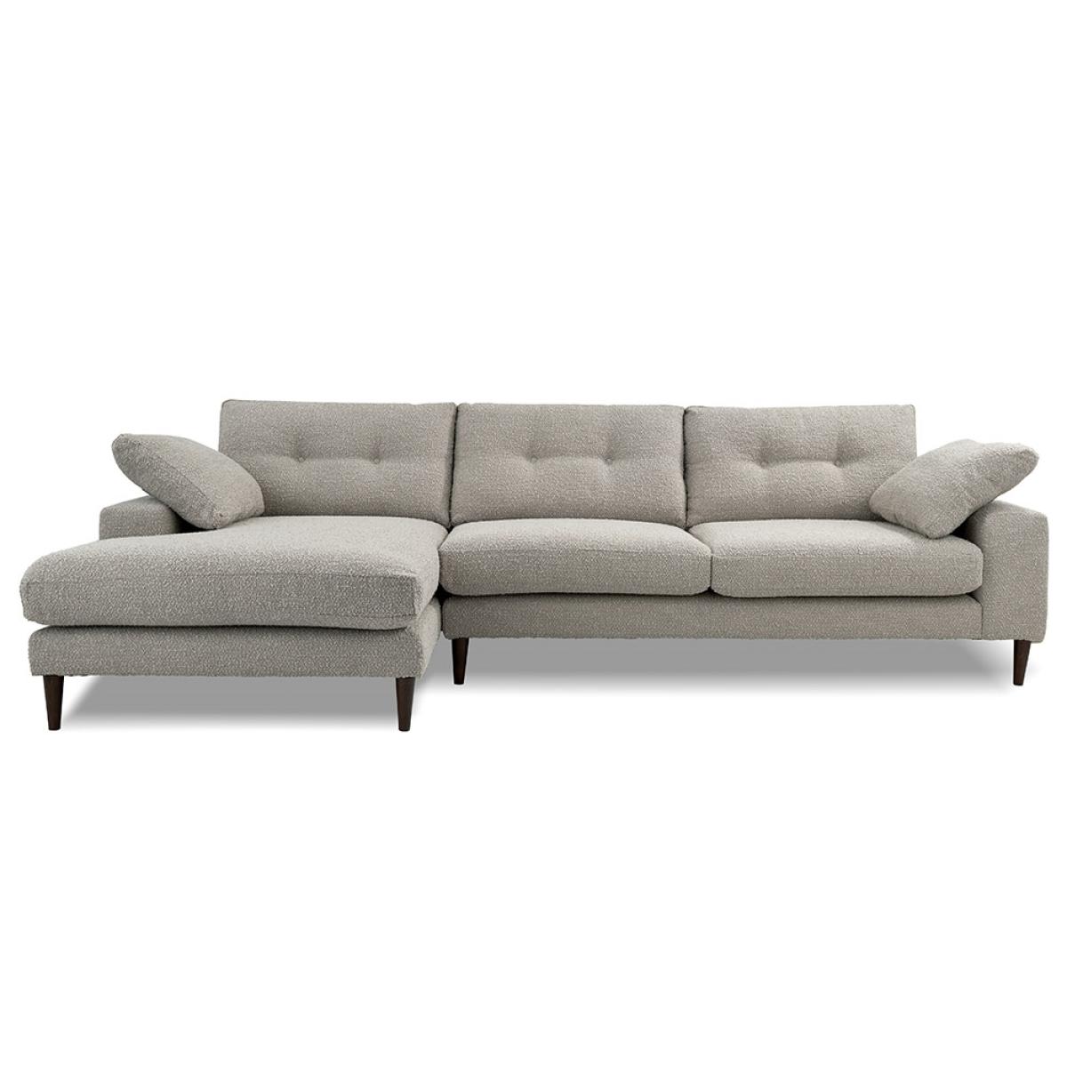 Made for cosying up - snuggle into the Alto Left Hand Facing Chaise Sofa. The L shaped sofa design gives you the option to sit and relax or rest your legs on the chaise longue - great if you've been on your feet all day! Including supportive bolsters; add a few colourful scatter cushions and throws to style your furniture and treat yourself to a cat-nap every once in a while. There's no better feeling than having an afternoon snooze on this sofa! Hand-crafted with care in the UK; the responsibly sourced wooden frame has been finished with foam and fibre filled cushions, buttoned details and tapered walnut stained feet - perfectly pairing contemporary and traditional designs. Choose from our gorgeous selection of fabrics to showcase your personal style; from luxuriously soft recycled velvets to textured bouclé - the Alto Chaise Sofa can't help but look inviting, no matter the upholstery you pick! Also available as a right hand chaise sofa; pair with the other pieces from the Alto range to suit your space.
