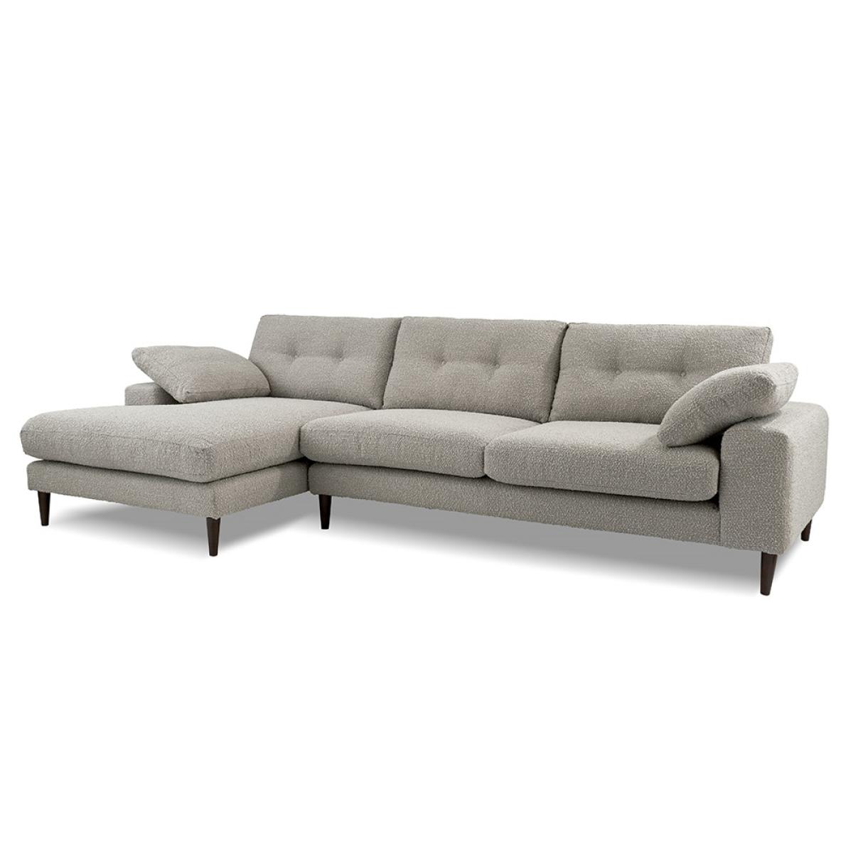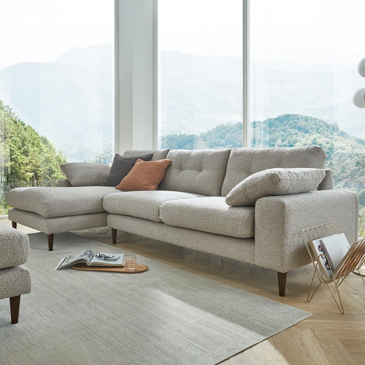 Made for cosying up - snuggle into the Alto Left Hand Facing Chaise Sofa. The L shaped sofa design gives you the option to sit and relax or rest your legs on the chaise longue - great if you've been on your feet all day! Including supportive bolsters; add a few colourful scatter cushions and throws to style your furniture and treat yourself to a cat-nap every once in a while. There's no better feeling than having an afternoon snooze on this sofa! Hand-crafted with care in the UK; the responsibly sourced wooden frame has been finished with foam and fibre filled cushions, buttoned details and tapered walnut stained feet - perfectly pairing contemporary and traditional designs. Choose from our gorgeous selection of fabrics to showcase your personal style; from luxuriously soft recycled velvets to textured bouclé - the Alto Chaise Sofa can't help but look inviting, no matter the upholstery you pick! Also available as a right hand chaise sofa; pair with the other pieces from the Alto range to suit your space.