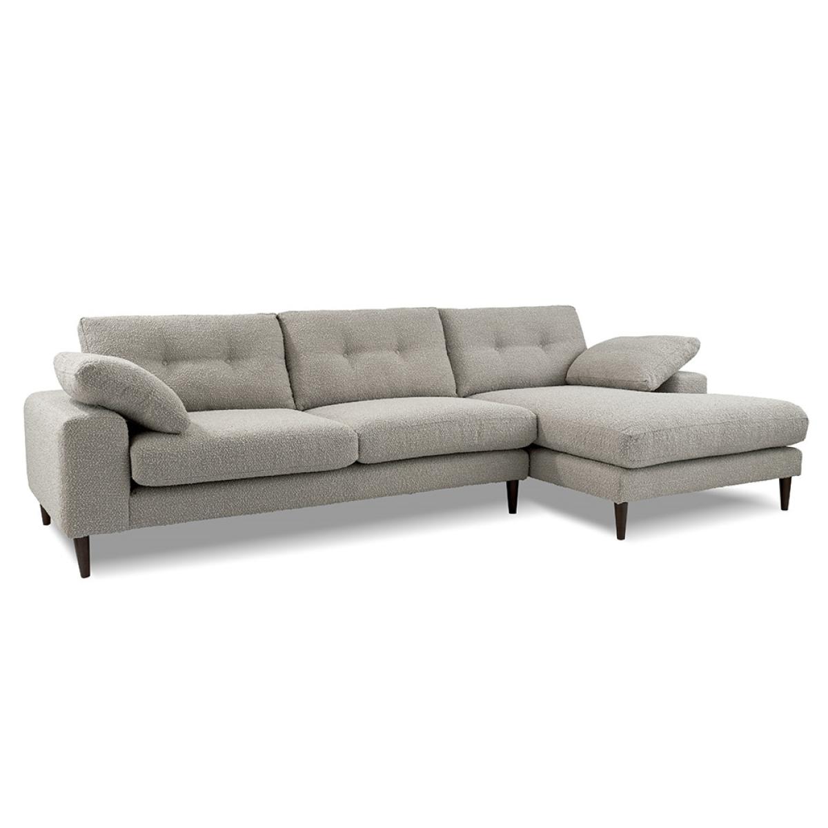 Handcrafted in the UK and made for stretching out - the Alto Right Hand Facing Chaise Sofa is snug and supportive. The L shaped sofa benefits from an added chaise longue so you can pop your feet up while you've got your nose in a book or you're fixated on your favourite TV shows. Settle into the deep seats, foam and fibre filled cushions and added bolsters to give your body a break while you unwind! Styled with buttoned accents, tapered walnut stained feet and box arms - the traditional and contemporary details would suit any interior style. Compliment your home with your choice of upholstery. From luxuriously soft, recycled velvets to textured bouclé - in a selection of striking and sophisticated colourways, you could even use your new sofa as inspiration to completely update your living room. Also available as a left hand chaise sofa; pair with the other pieces from the Alto collection and create the configuration to suit your living space.