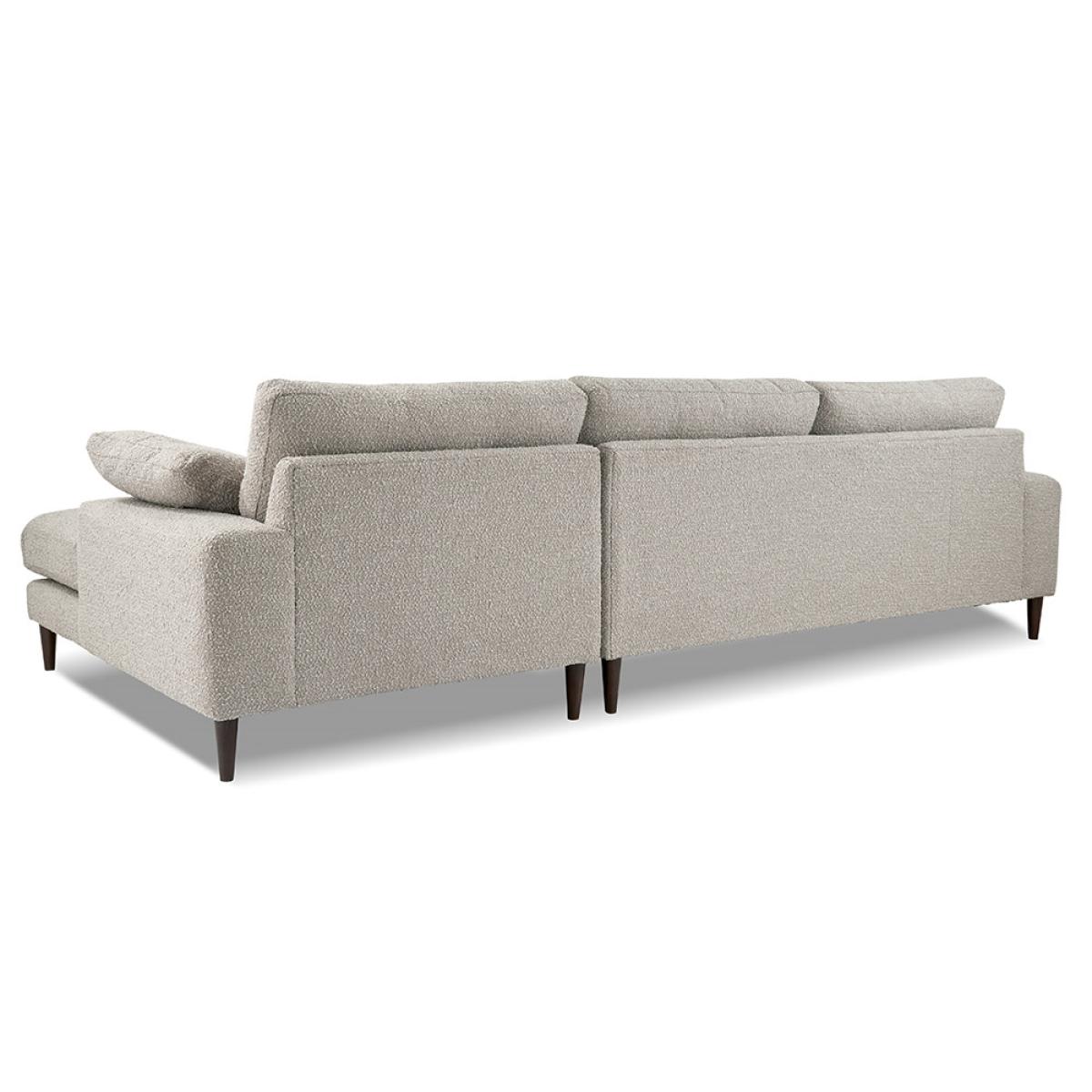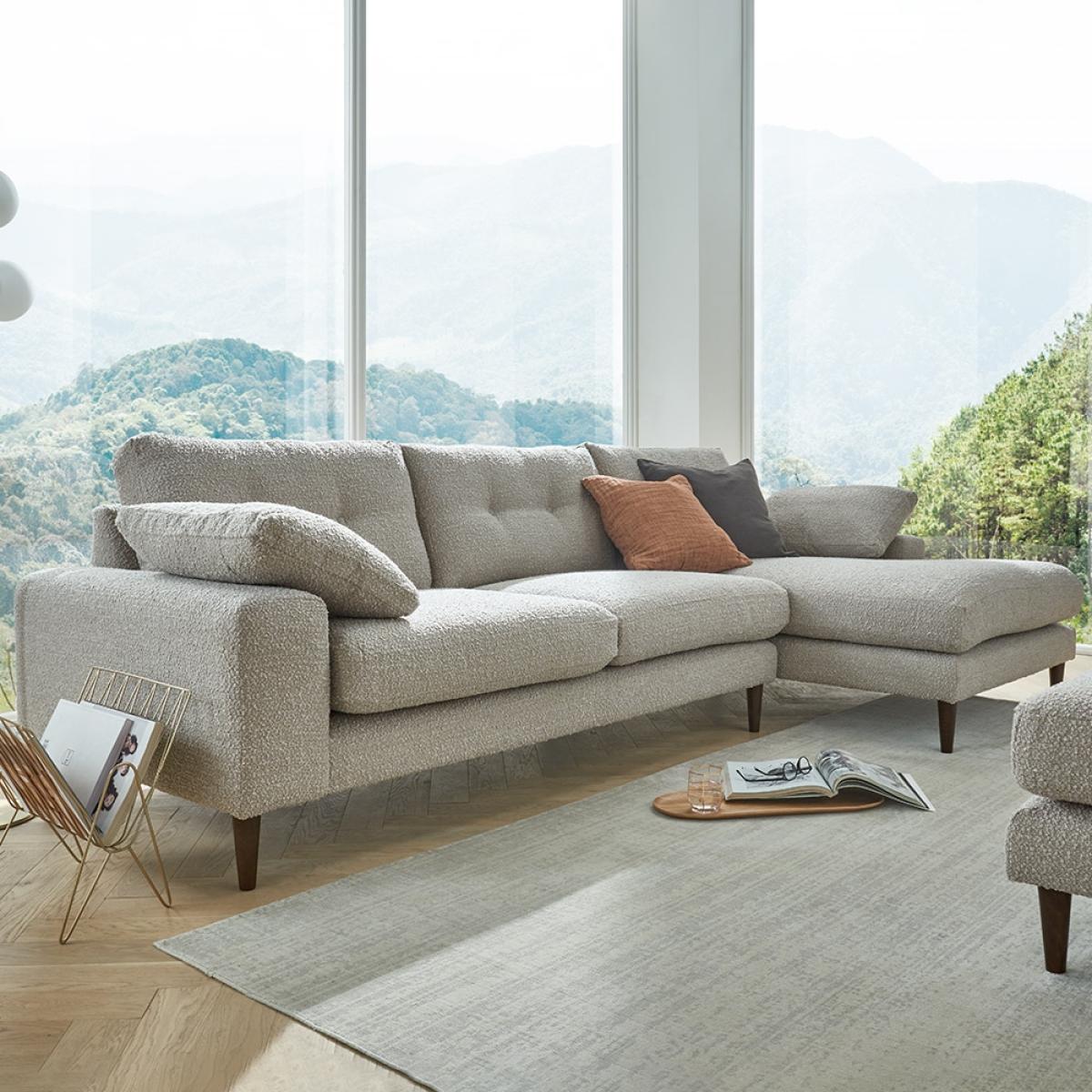 Handcrafted in the UK and made for stretching out - the Alto Right Hand Facing Chaise Sofa is snug and supportive. The L shaped sofa benefits from an added chaise longue so you can pop your feet up while you've got your nose in a book or you're fixated on your favourite TV shows. Settle into the deep seats, foam and fibre filled cushions and added bolsters to give your body a break while you unwind! Styled with buttoned accents, tapered walnut stained feet and box arms - the traditional and contemporary details would suit any interior style. Compliment your home with your choice of upholstery. From luxuriously soft, recycled velvets to textured bouclé - in a selection of striking and sophisticated colourways, you could even use your new sofa as inspiration to completely update your living room. Also available as a left hand chaise sofa; pair with the other pieces from the Alto collection and create the configuration to suit your living space.