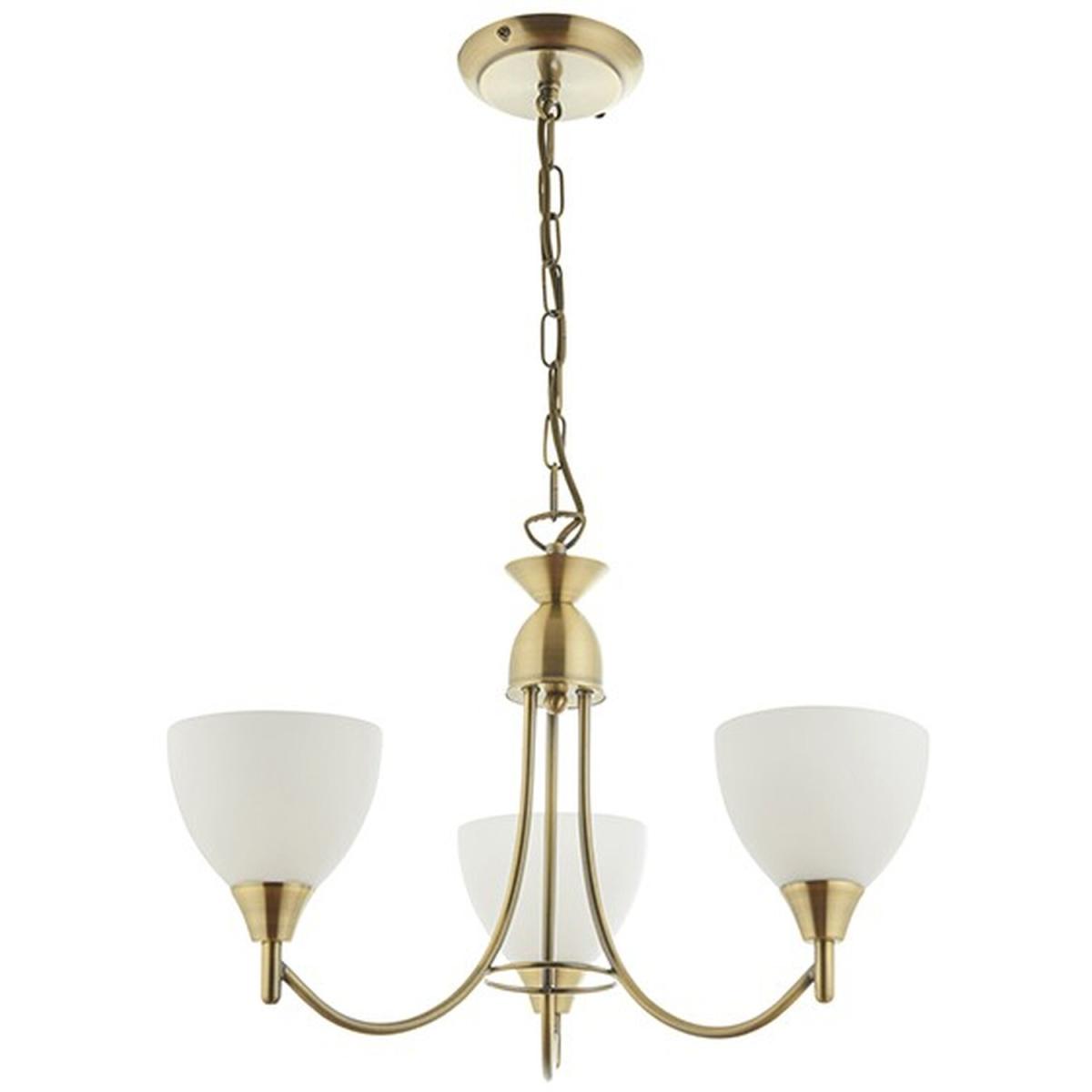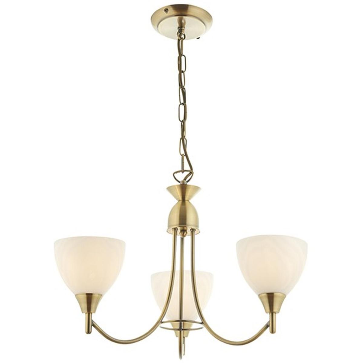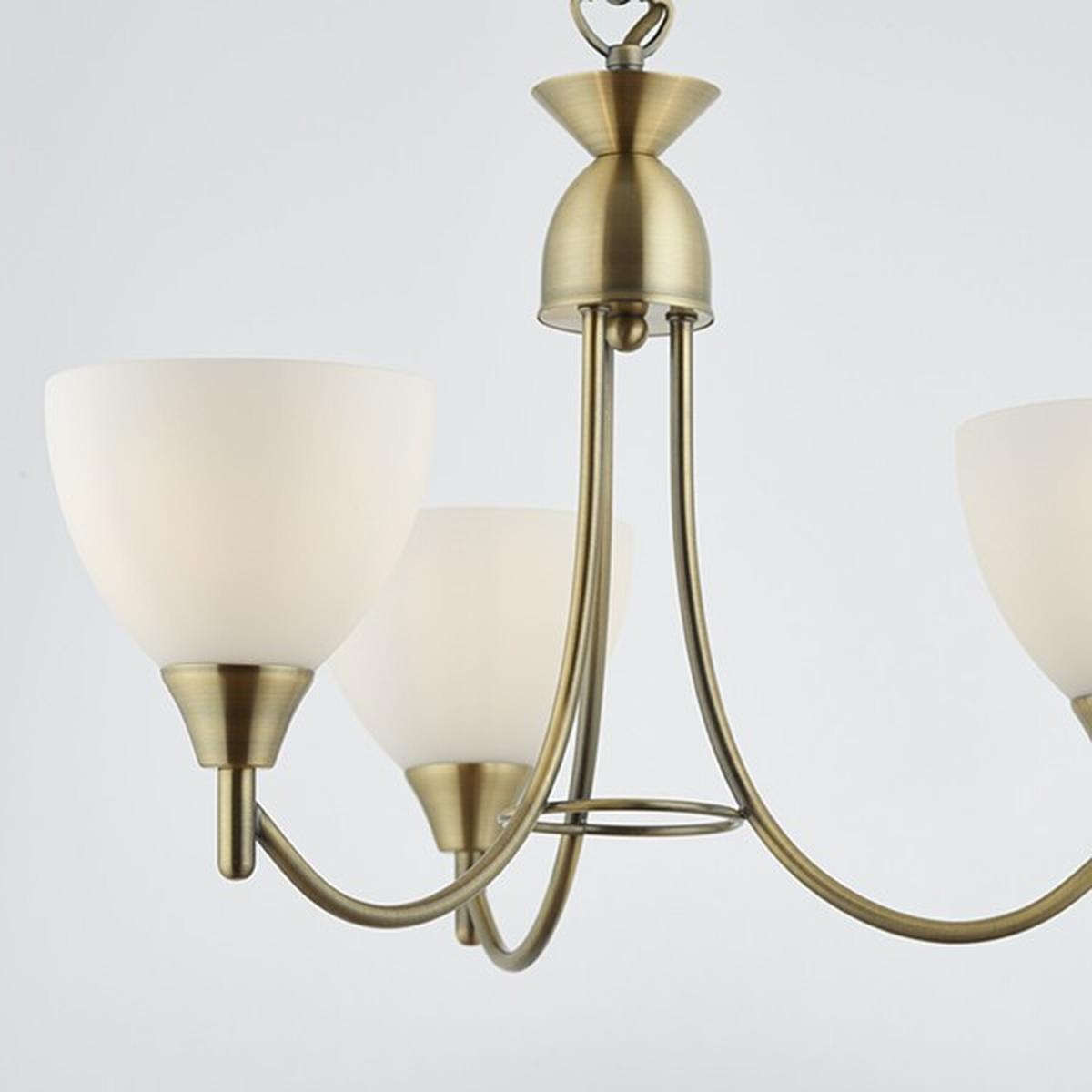 Alton 3 Light Multi Arm Ceiling Pendant Antique Brass, Opal Glass, E14 - Antique Brass