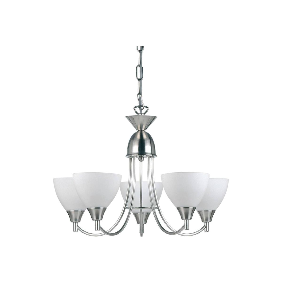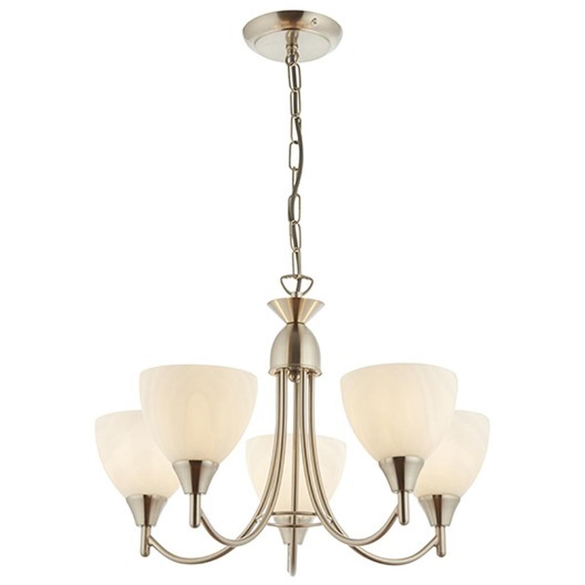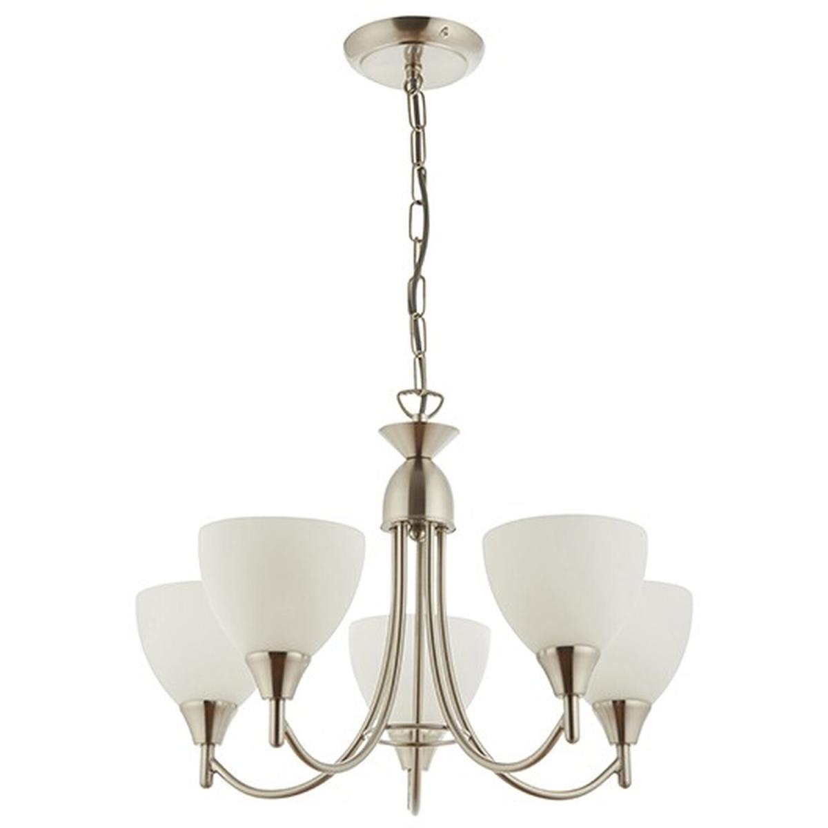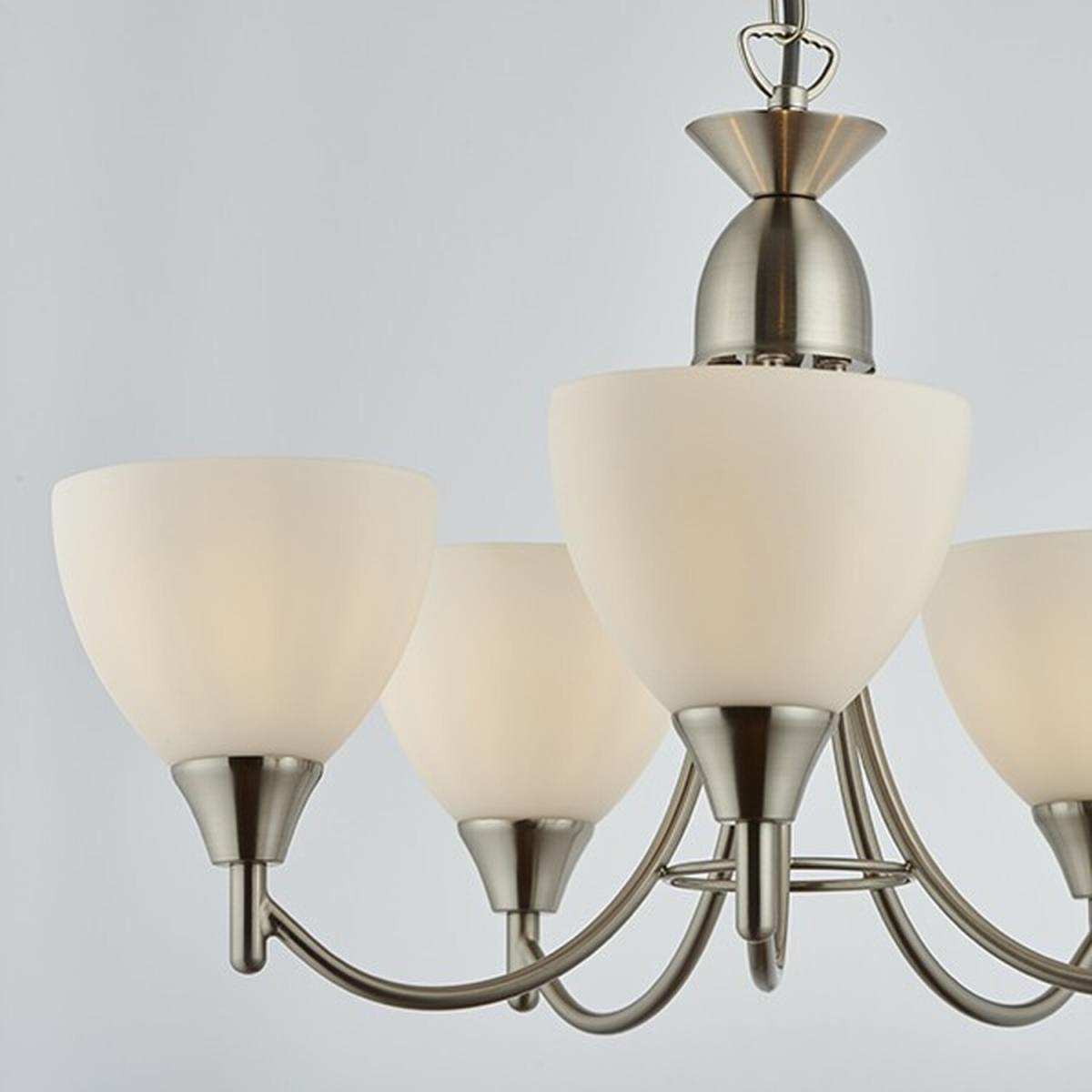 Alton 5 Light Multi Arm Ceiling Pendant Satin Chrome, Matt Opal Glass, E14 - Satin Chrome
