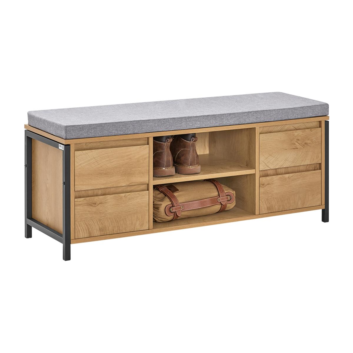 Modern design shoe cabinet shoe bench, good choice for your hallway and living room. Great design shoe rack, offering storage for shoes as well as extra seating space. It has 4 drawers and 2 open compartments, providing ample storage space for your shoes and other items. 4 slide-out drawers provide ample storage space for your personal items. The padded seat which is removable is ideal for comfortable sitting while putting on and taking off shoes. The legs are made of black powder coated steel. Sturdy and stable. This shoe rack will keep your halls and entryway organized as well as distinctive. Simple and elegant design, so it sure fit perfectly with any style of decor.