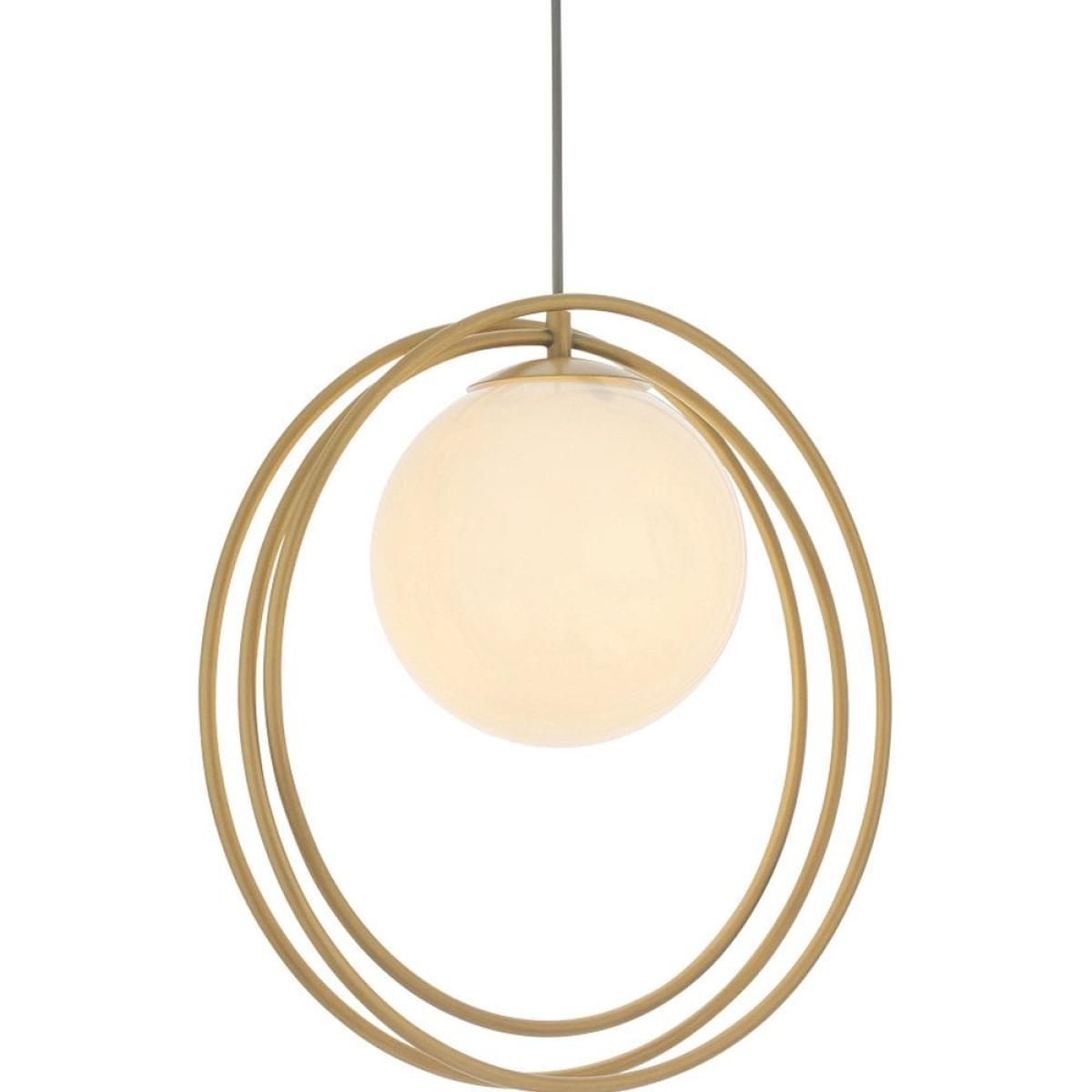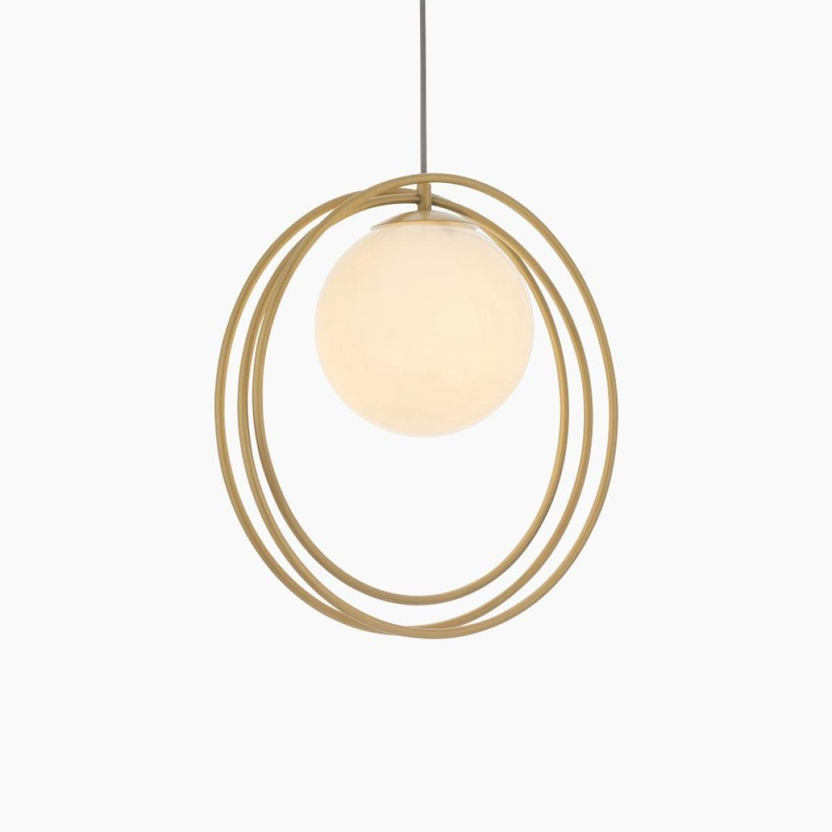 Revamp your living room or kitchen interior with the Altra circle pendant light. The luxe metallic curves on this ceiling light feel on-trend yet timeless - Creating a retro mid-century statement with its gravity-defying design that playfully balances a round opal glass shade, in a gloss finish, on top of brushed gold rings. The soft, warm glow that emanates from the Altra light will make you never want to leave. View The Altra Range