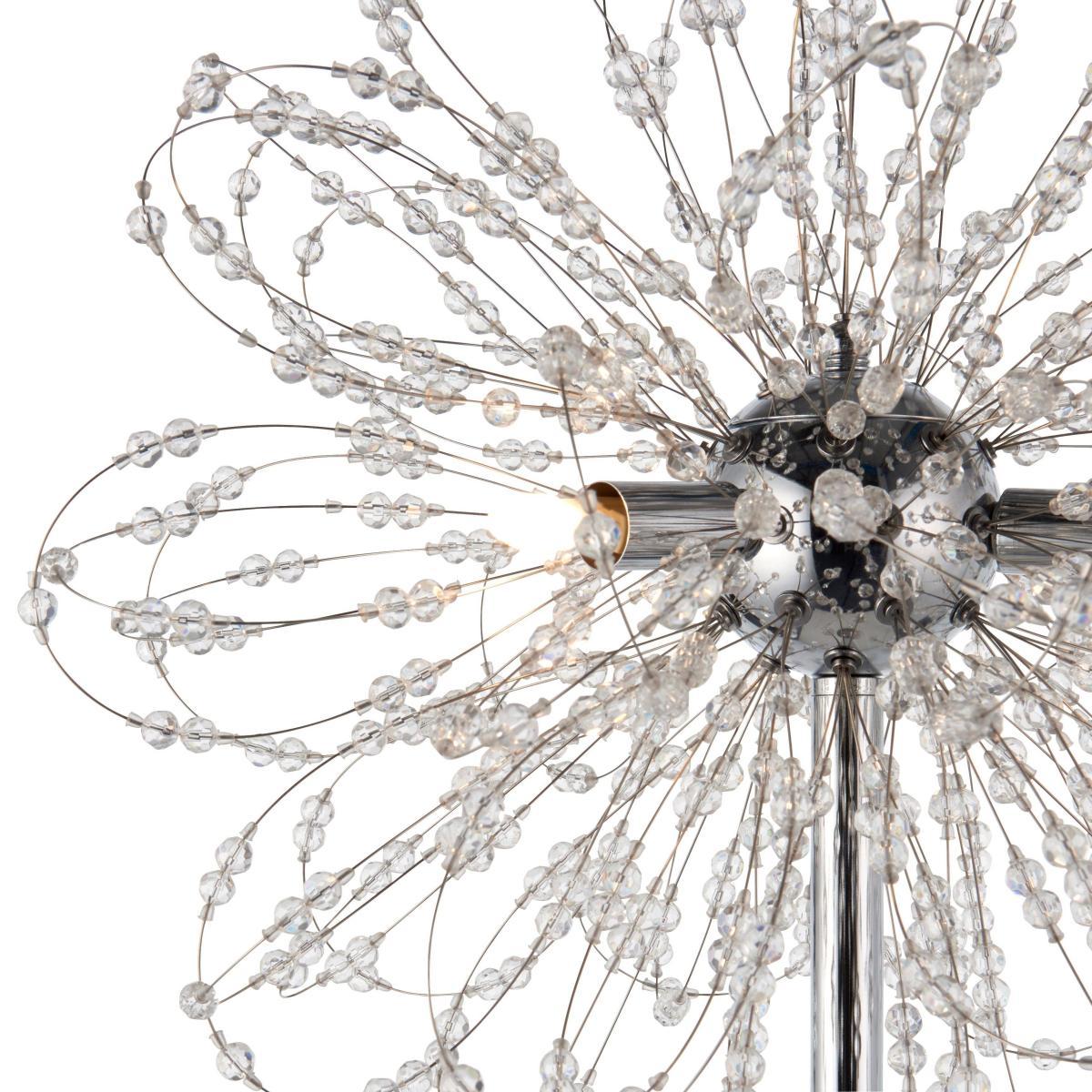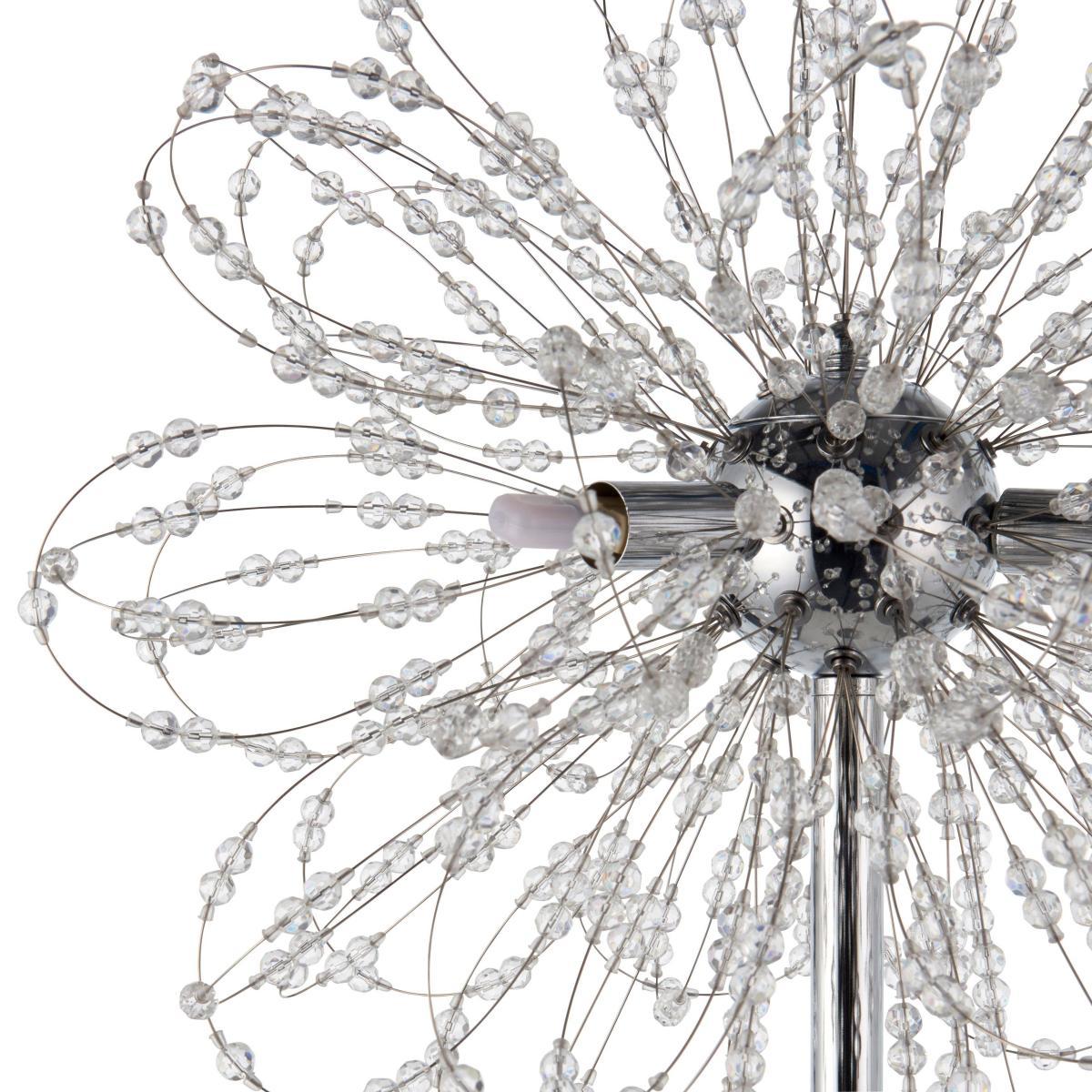 I love how this floor lamp adds a contemporary touch with its polished chrome finish and clear bead detailing, making it a statement piece without overwhelming a space. It works especially well in modern or minimalist interiors, but it can also add a touch of glamour to eclectic or industrial settings. For styling tips, consider placing it in a corner to highlight its sculptural quality, or use it as an accent piece next to seating areas to create a focal point. Pairing it with neutral tones or simple textiles will allow its reflective surfaces and delicate detailing to stand out beautifully. It’s a versatile piece that combines both function and design, perfect for enhancing a living room or bedroom with a touch of understated sophistication.