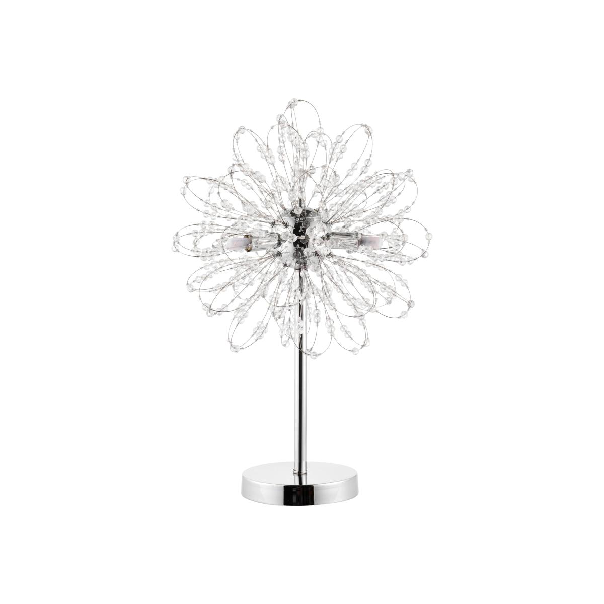 Contemporary polished chrome table lamp boasting delicate beading detail. A beautiful addition to your home, the Alula Table lamp is a contemporary and decorative 3 light table lamp, exclusive to Pagazzi. Finished in polished chrome throughout, this statement lamp features delicate starburst style wire, beautifully embellished with clear beading. A feature light, perfect as bedside table lighting, or in living rooms and hallways. We recommend using our 3w LED G9 Capsule bulbs which are a great replacement for standard halogen bulbs.