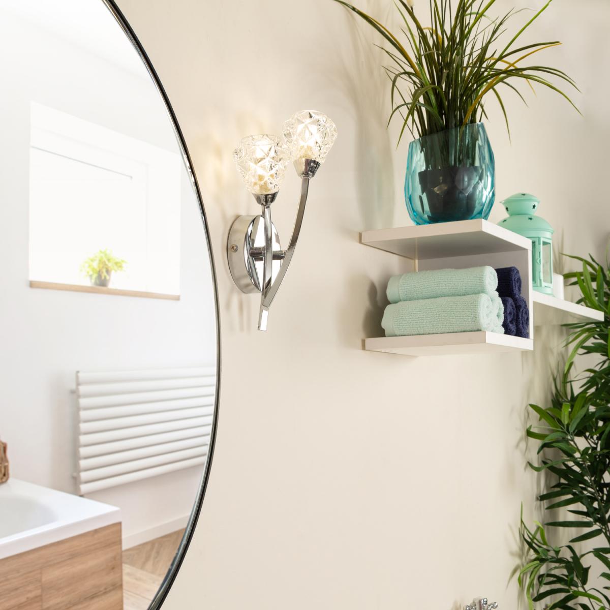 I love the Alula wall light for its sleek chrome finish and contemporary design, making it a versatile addition to modern bathrooms. It works particularly well in minimalist or industrial-inspired interiors, where its clean lines and subtle shine can add a touch of sophistication. For styling, consider placing it either side of a mirror to provide functional illumination without overpowering the space. Practical tips include pairing it with dimmable bulbs to suit different moods or tasks and positioning it at eye level for even light distribution. Overall, this wall light offers a chic, easy-to-maintain solution that elevates the look of any bathroom.
