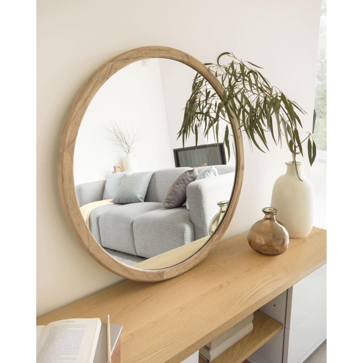 I love the 80 cm round mindi mirror for its clean, natural frame that adds warmth without overwhelming a room. Its simple shape works brilliantly in Scandi, coastal or modern-rustic schemes, especially on a light-coloured wall where it reflects daylight and opens up a hallway or living space. For styling, hang it at eye level above a slim console or chest of drawers and balance with a couple of wall lights or a cluster of potted greenery. It also plays nicely in a gallery-style grouping - pair with smaller round or oval mirrors, or prop it against a mantel for a casual, lived-in vibe.