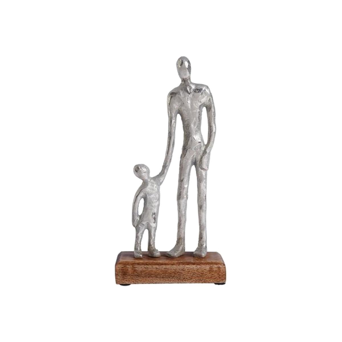 A silver aluminium metal father and child decorative ornament on a contrasting wooden base. This stunning item would be sure to add charm to any interior and would make a great gift idea that any Father would love! This is a perfect gift for Fathers Day, Birthday Gift or Special Occasion. Measures 26 x 12.5 x 5.5 cm.