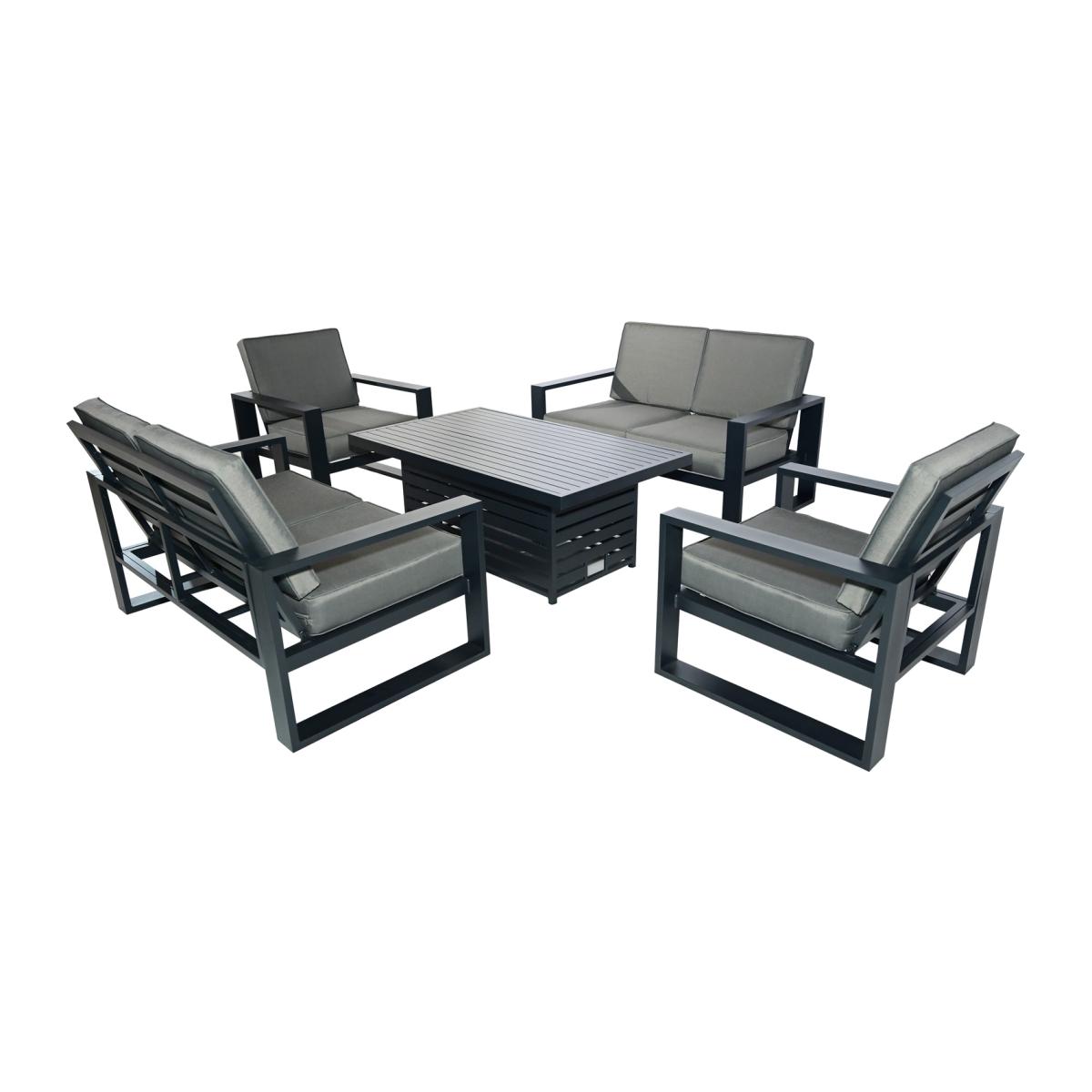 Create an elegant backyard and entertaining space with the Patio Aluminum Sofa by Furniture One ! This collection offers the perfect blend of streamlined, minimalist seating and luxuriously comfortable deep seating. All of the same comfort with none of the maintenance! Durable aluminium frames and all-weather seat padding are made to endure in any outdoor setting, rain or shine. It's a beautiful addition whether in your garden, patio, porch, poolside, or other outdoor space! Aluminium Garden Sofa with Height-Adjustable Table Furniture Set - Grey / 1 Height-Adjustable Table, 2 Armchair, 2 Loveseat