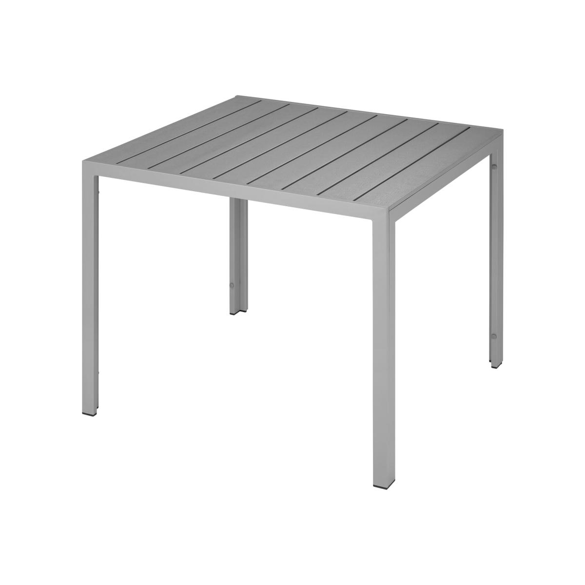 Square, modern, versatile its compact size and clean lines give this tectake garden table a simple design that speaks for itself as a design feature ideal for indoor home and outdoor use. The tables wood-look panels give it a sophisticated look, while its stable aluminium frame makes this piece of furniture waterproof and very stable. Two adjustable feet make short work of uneven floors. This table is sure to stand out thanks to its robust construction and low-maintenance finish. Get a fresh style inside or out with this garden table from tectake.