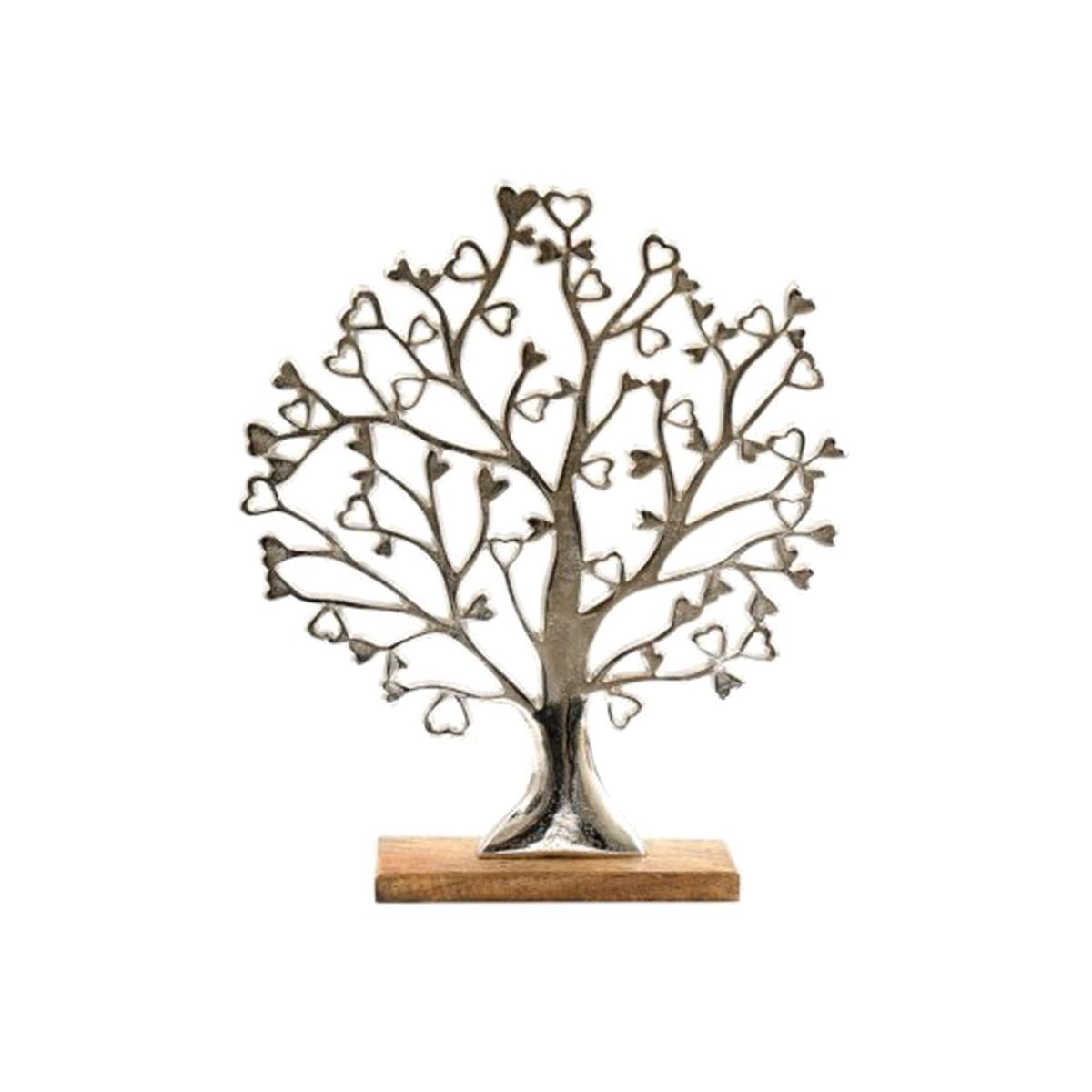 Aluminium Large Tree of Love On Wooden Base - Silver