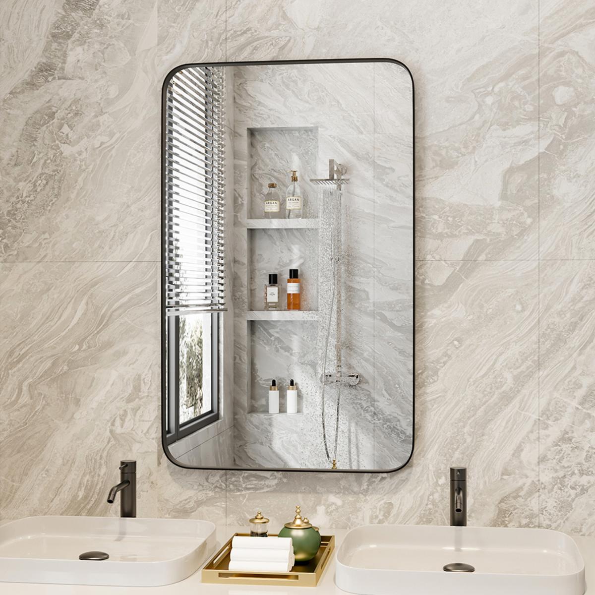Livingandhome Aluminum Frame Wall Mirror has a full-screen mirror to expand your field of vision, which is perfect for grooming, makeup application and other daily routines. Its size ensures that you can see yourself from various angles without any limitations. This wall mirror employs a premium-grade aluminum frame renowned for its superior strength and exceptional resistance to deformation, ensuring long-lasting durability. The selected glass is exceptionally clear and provides a high level of accuracy in showcasing your beauty.