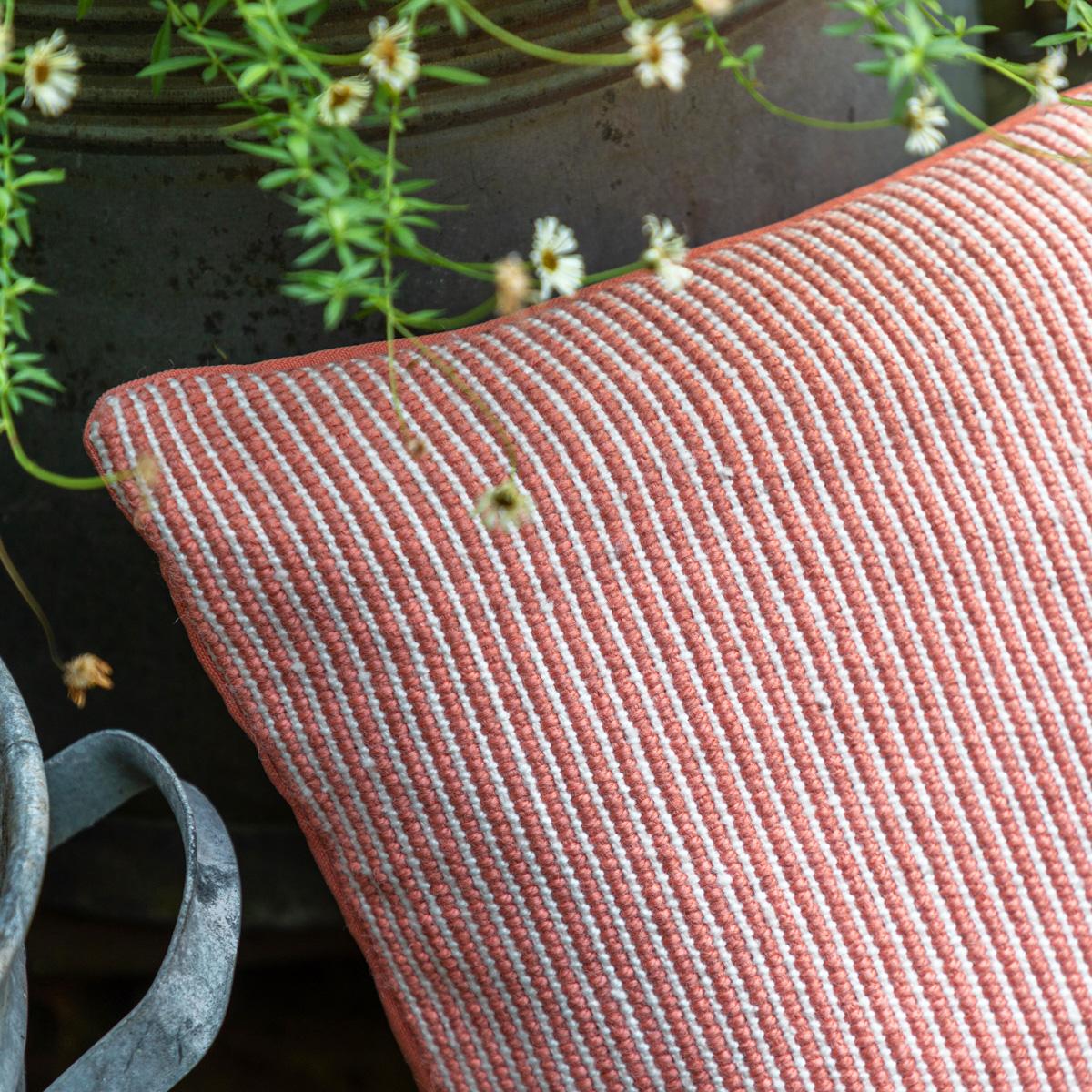 I love this cushion for its warm apricot hue and subtle pinstripe pattern, which adds a relaxing yet stylish touch to any space. It works particularly well in neutral or earthy interiors, effortlessly complementing textures like linen, wood, or woven fabrics. For a laid-back, cosy vibe, try pairing it with soft cotton throws and natural-toned furniture. Practical styling tips include mixing it with textured cushions for layered depth or using it as a focal point on a plain sofa or armchair. Its colour and pattern make it versatile enough to fit both contemporary and boho interiors, bringing a hint of colour without overpowering the room.