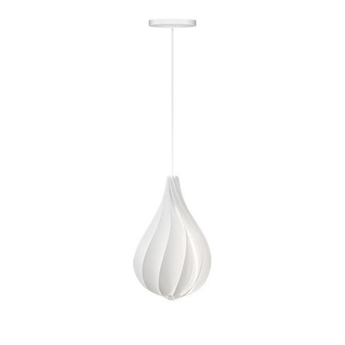 The Alva ceiling lamp by the Danish brand Umage / Vita was designed by Lorenzo Radaelli. The lampshade was inspired by the shape of a classic light bulb, merged into a twisted spiral shape. An eye-catching design that works well in close to any room of the house. Available in different colors.