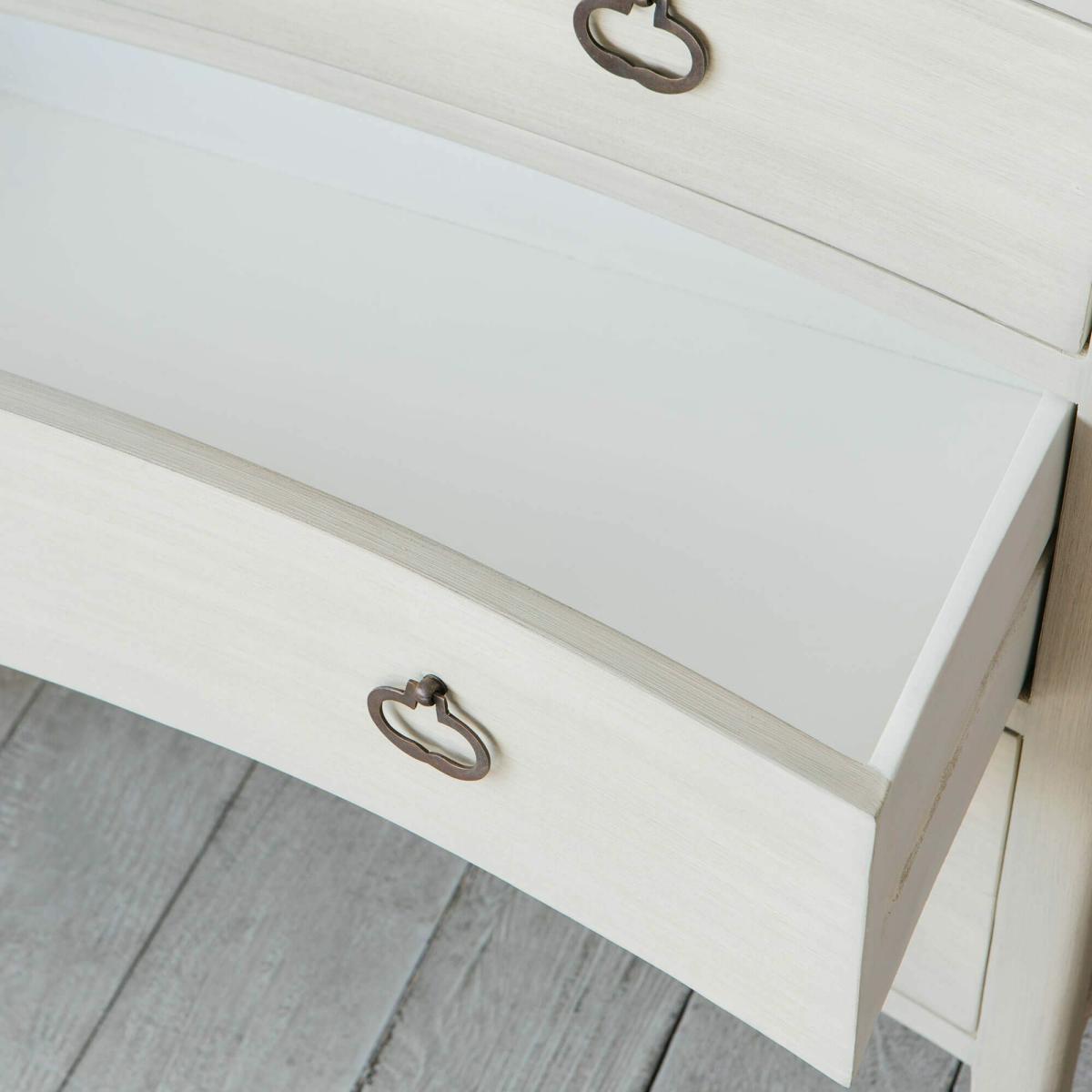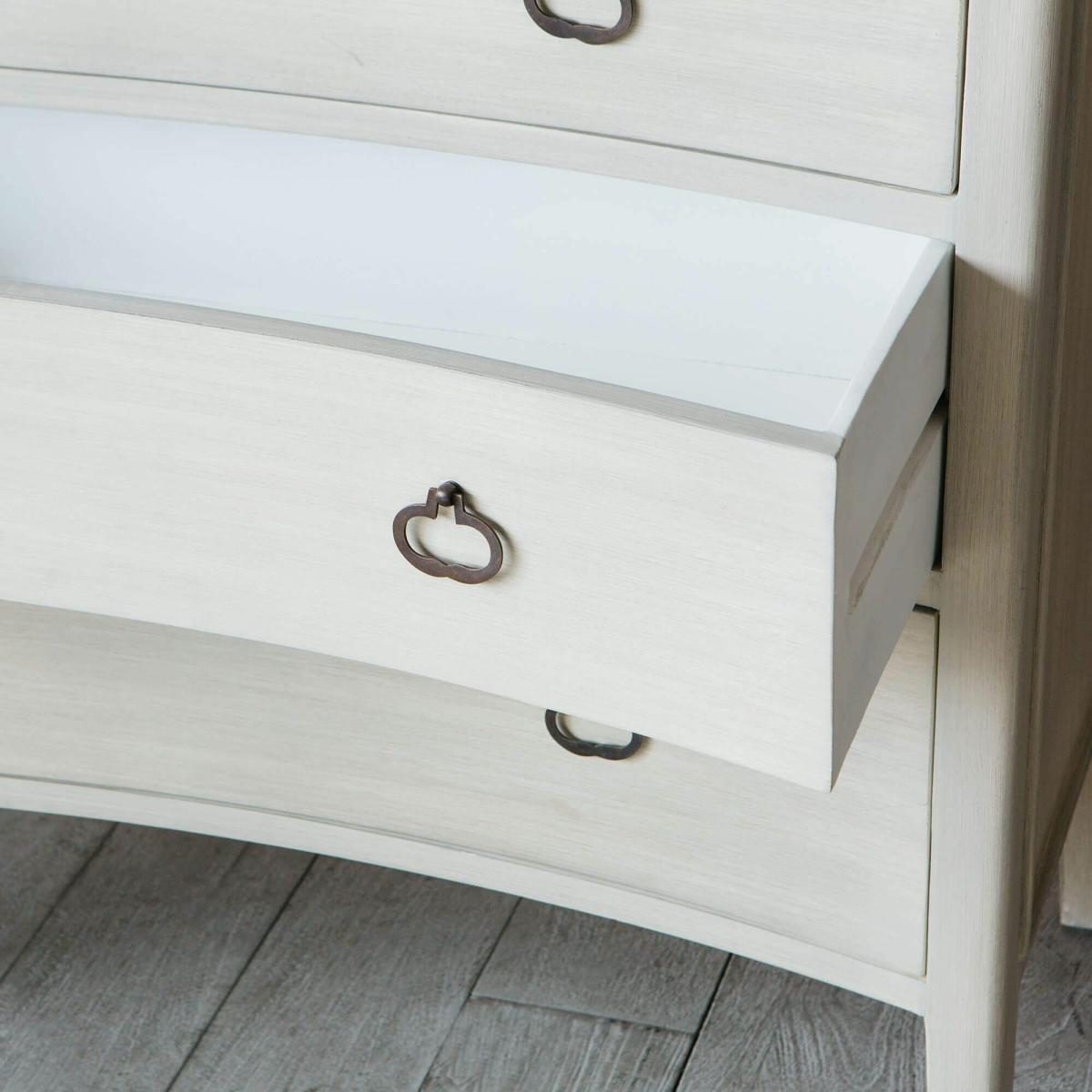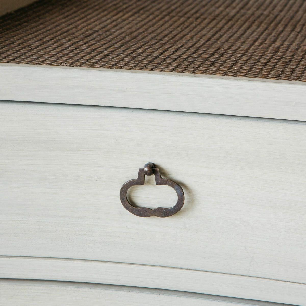 A classic design with finely tapered legs crafted from Durian wood, three generously sized drawers finished with circle handles and a wicker rattan top. With its white-washed finish, this chest of drawers will suit a stylish coastal home.
