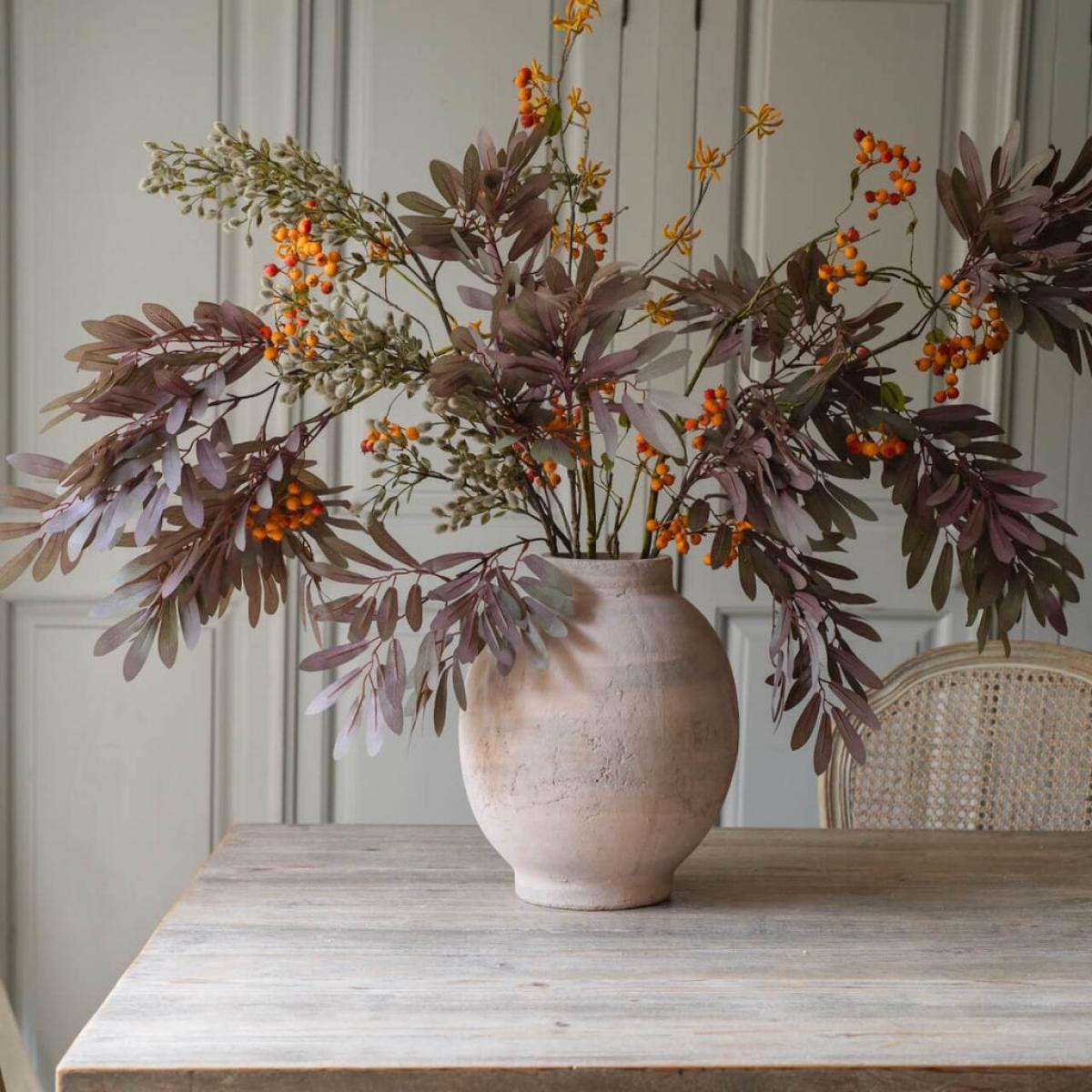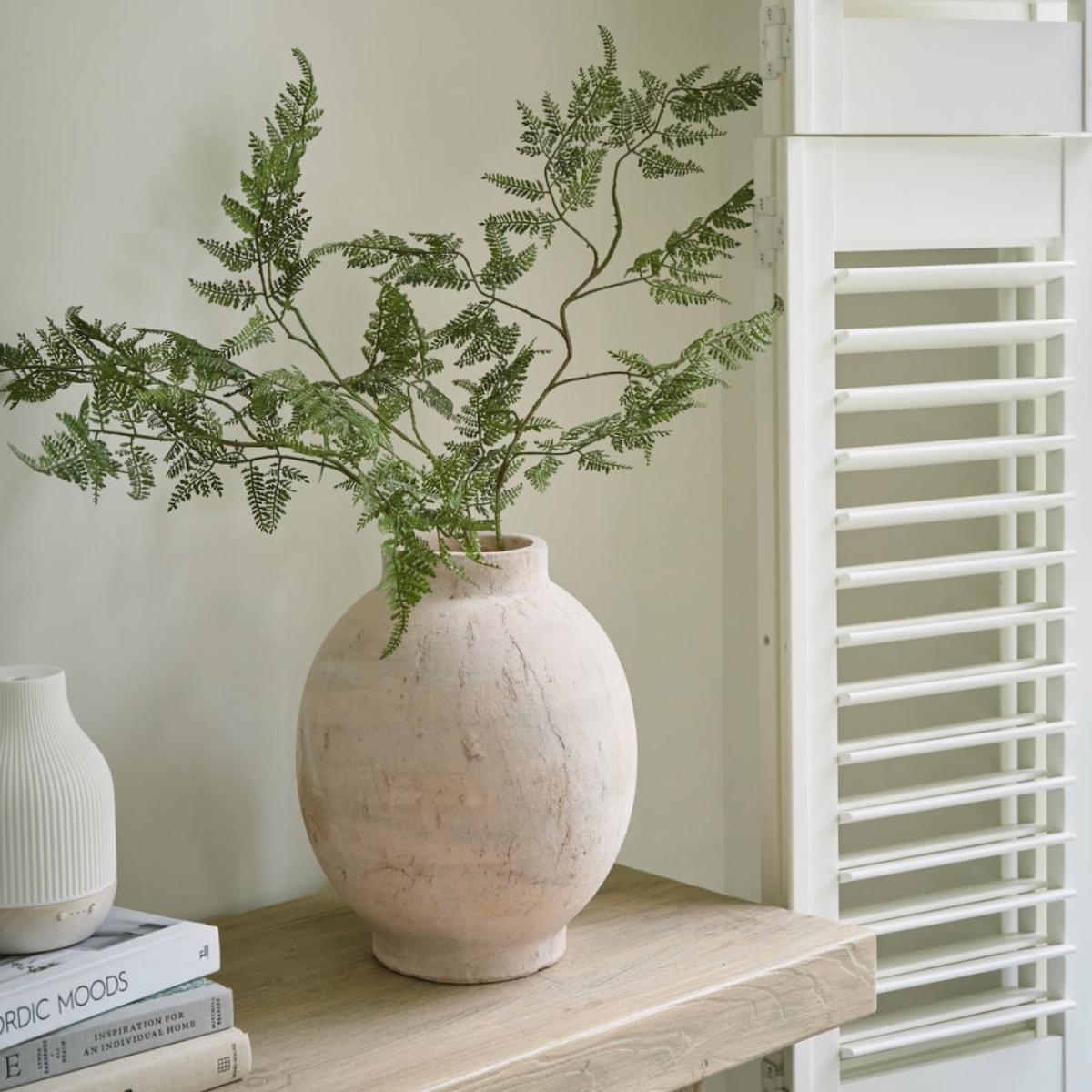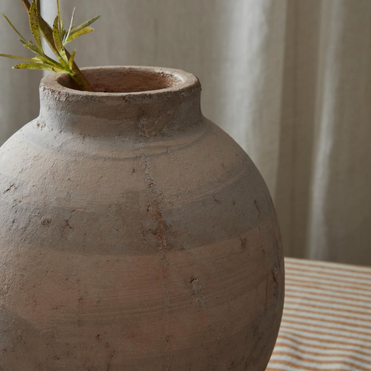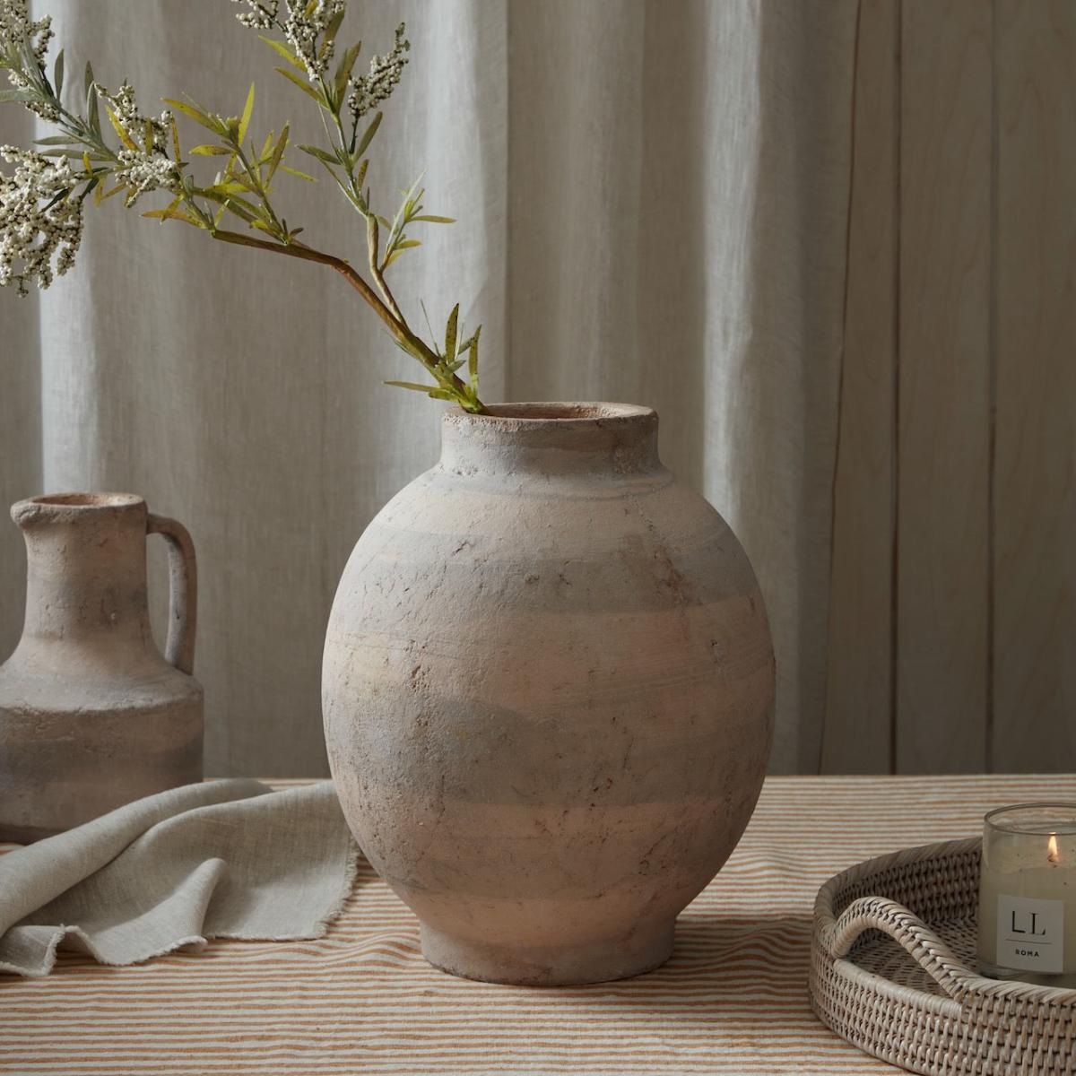 The Alva Vase has a beautifully sculptural shape combined with a rustic distressed look. The fabulous curves narrow at the neck to ease your floral styling. Styled together with the shorter version these vases make fabulous decorative pieces for a console table even when left unfilled. This is a handmade product, each piece is unique, and we cannot guarantee that it is water tight so if using as a vase we advise the use of dried or faux flowers.