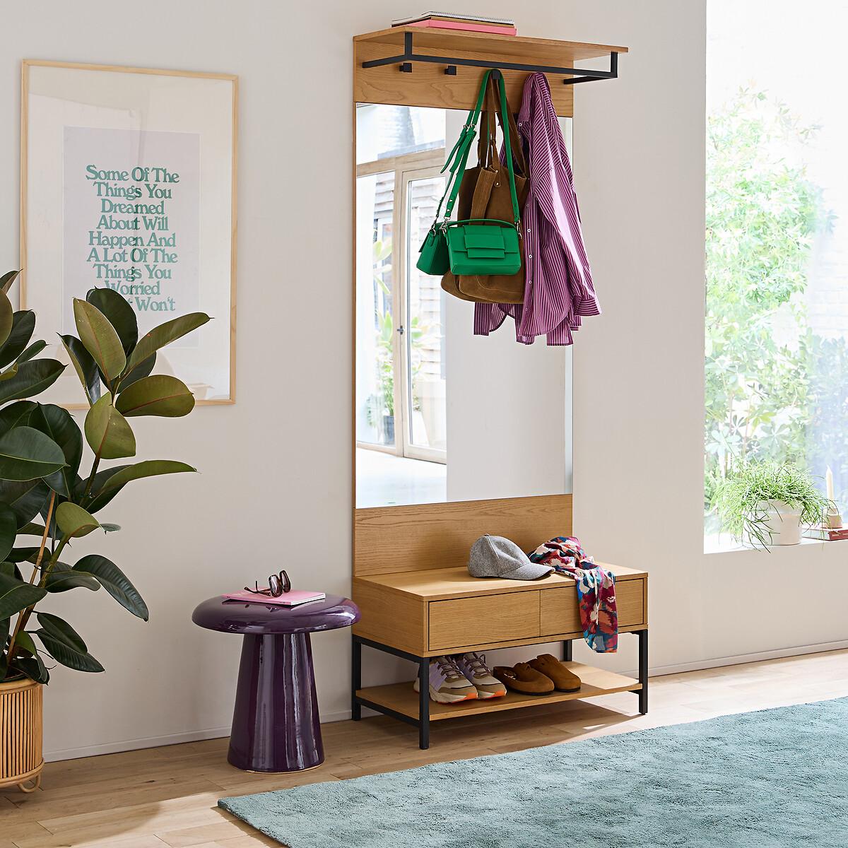 Mix of FSC® certified oak and metal. Sober, graphic lines. Introducing Alvan, the clever clothes rail with timeless style. A shelf, a hanging rail and coat hooks for hanging clothes, scarves and bags.. To be combined with the bench and mirror from the same range. Designed by La Redoute Intérieurs. Product Details • 1 shelf • 1 hanging rail • 4 hooks • MDF structure with natural finish oak veneer and black stained steel with nitrocellulose varnish finish • Wall fixing (screws and plugs not supplied)Dimensions • Width: 80cm • Height: 19.5cm • Depth: 30cm • Weight: 5.5kg • This product requires assembly. • WOOD FROM SUSTAINABLY MANAGED FORESTS. FSC® certified wood comes from forests that are environmentally, socially and economically well managed. Dimensions and weight of parcel1 parcel • W94 x H15 x D37.5cm. 7.3kg