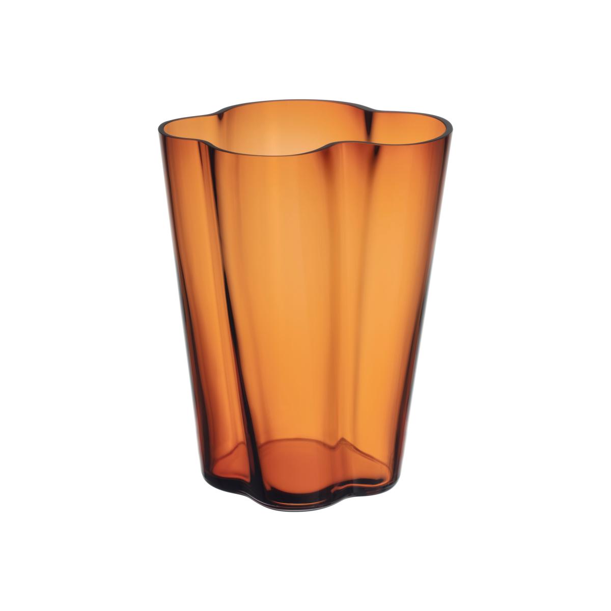 Alvar Aalto vase copper from Finnish Iittala is a handblown warm and earthy copper-coloured glass vase. Alvar Aalto is inspired by the Finland of his childhood, the land of a thousand lakes, and the vase and other iconic vases from the Alvar Aalto Collection feature an undulating design. The beautiful glass vase looks lovely with or without flowers and can be displayed on a side table, on the bookshelf or on the dinner table.