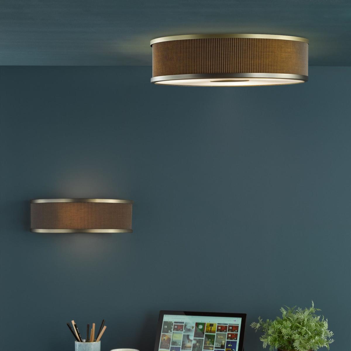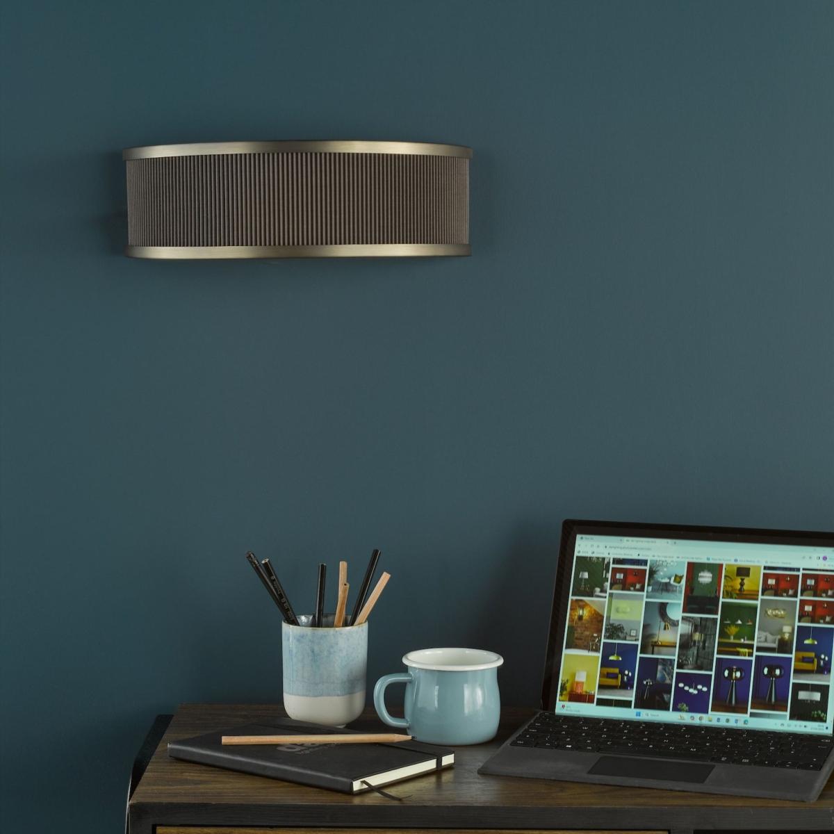 Alvaro 1-light flush wall light, featuring an antique bronze and brown micro pleat shade with opal glass diffusers. The Alvaro wall light is a sophisticated fixture that combines warm tones and classic design elements. The antique bronze frame paired with a brown micro-pleat shade offers a rich, textured look that adds depth and elegance to any room. The carefully crafted shade enhances the warm tones of the light, creating a cosy and inviting atmosphere. The opal diffusers soften the illumination, ensuring a warm, even glow above and below the fixture that's perfect for living rooms, bedrooms or hallways. With its timeless aesthetic and versatile functionality, the Alvaro wall light brings both character and refinement to modern and traditional interiors alike. Part of the Alvaro collection. Alvaro 1-light flush wall light, featuring an antique bronze and brown micro pleat shade with opal glass diffusers. The Alvaro wall light is a sophisticated fixture that combines warm tones and classic design elements. The antique bronze frame paired with a brown micro-pleat shade offers a rich, textured look that adds depth and elegance to any room. The carefully crafted shade enhances the warm tones of the light, creating a cosy and inviting atmosphere. The opal diffusers soften the illumination, ensuring a warm, even glow above and below the fixture that's perfect for living rooms, bedrooms or hallways. With its timeless aesthetic and versatile functionality, the Alvaro wall light brings both character and refinement to modern and traditional interiors alike. Part of the Alvaro collection.