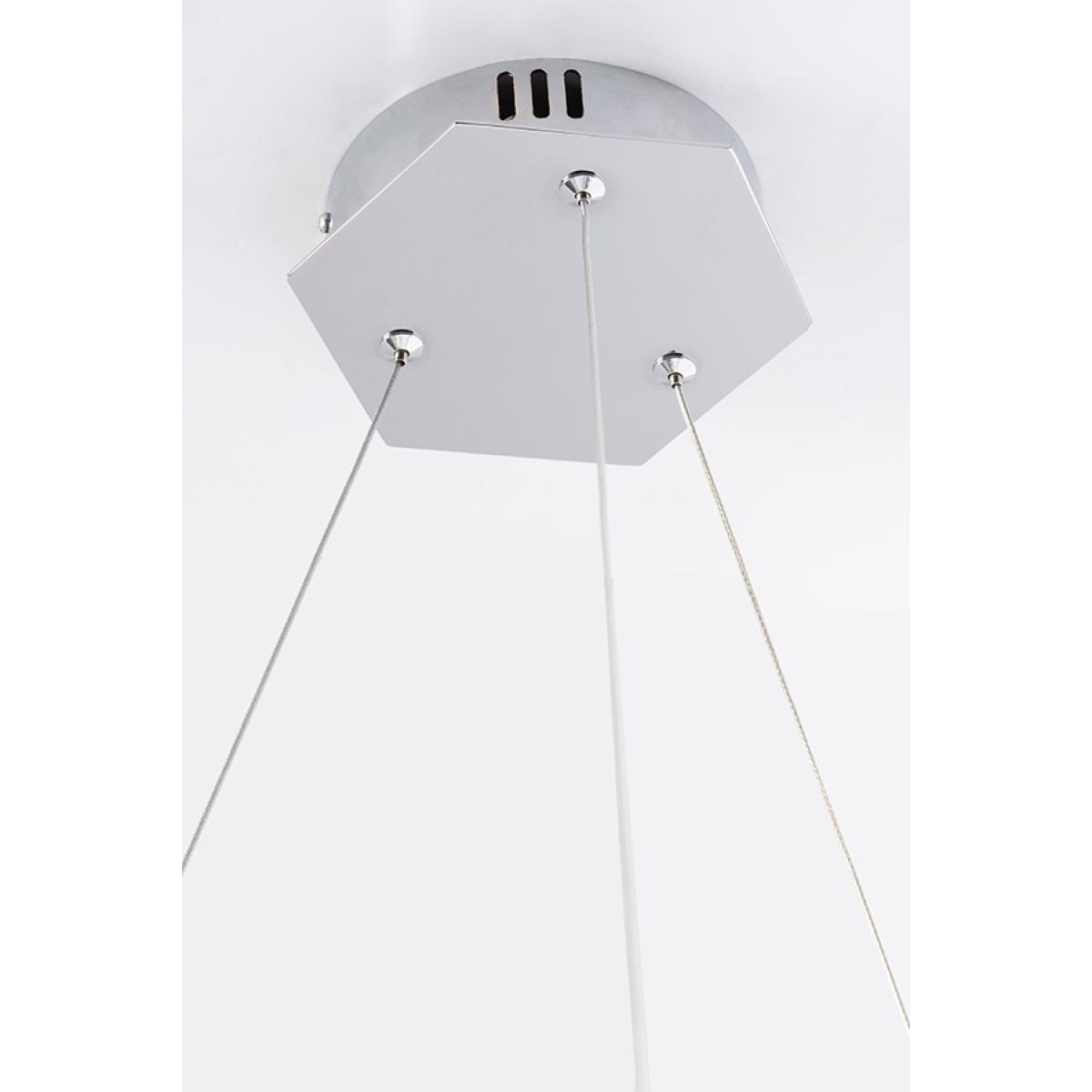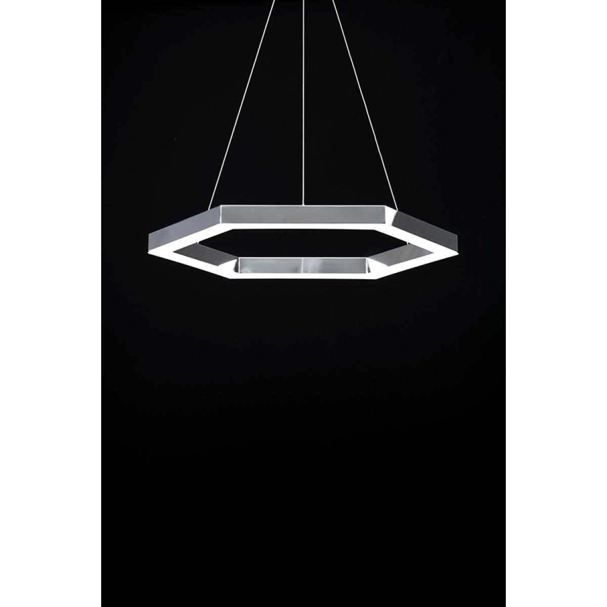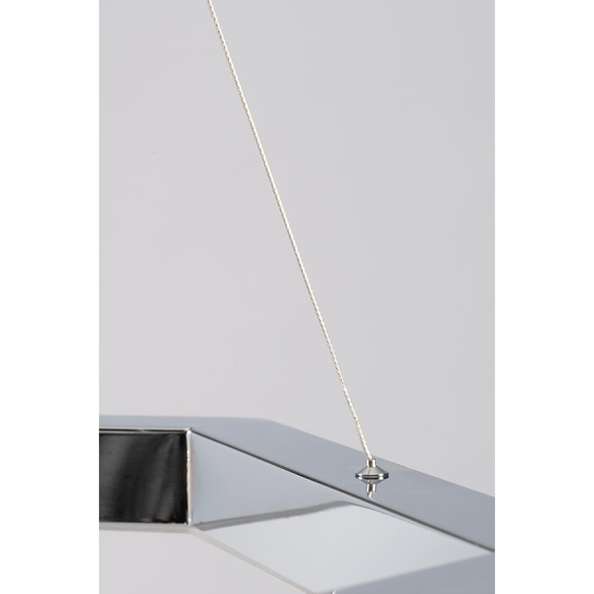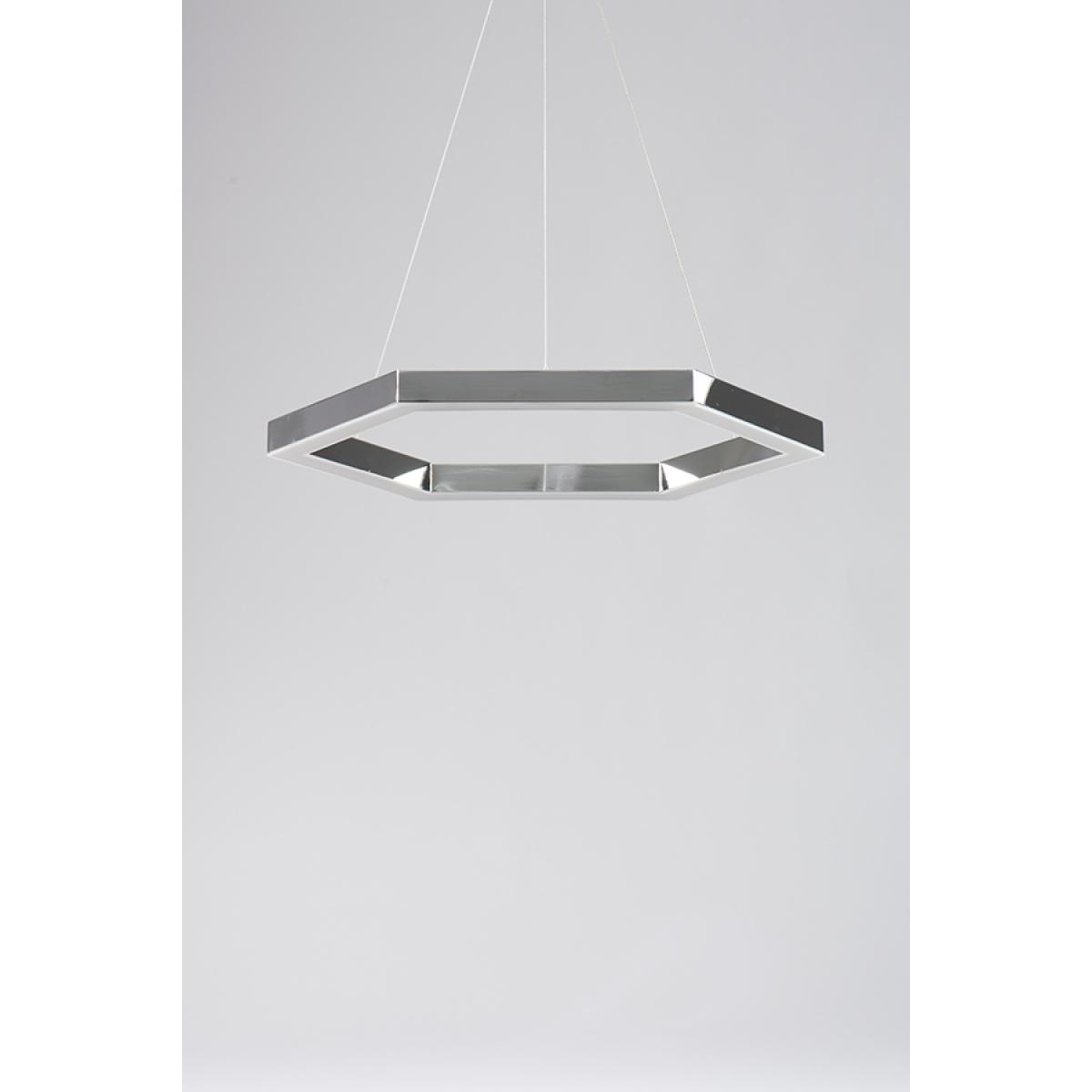 An impressive contemporary pendant light with a graphic, hexagonal silhouette. Steel with polished chrome finish. Simple height adjustable mechanism. Low energy LED light strip and driver concealed inside the structure. Frosted acrylic diffuser creates a practical yet ambient lighting mood. Supplied fully assembled.