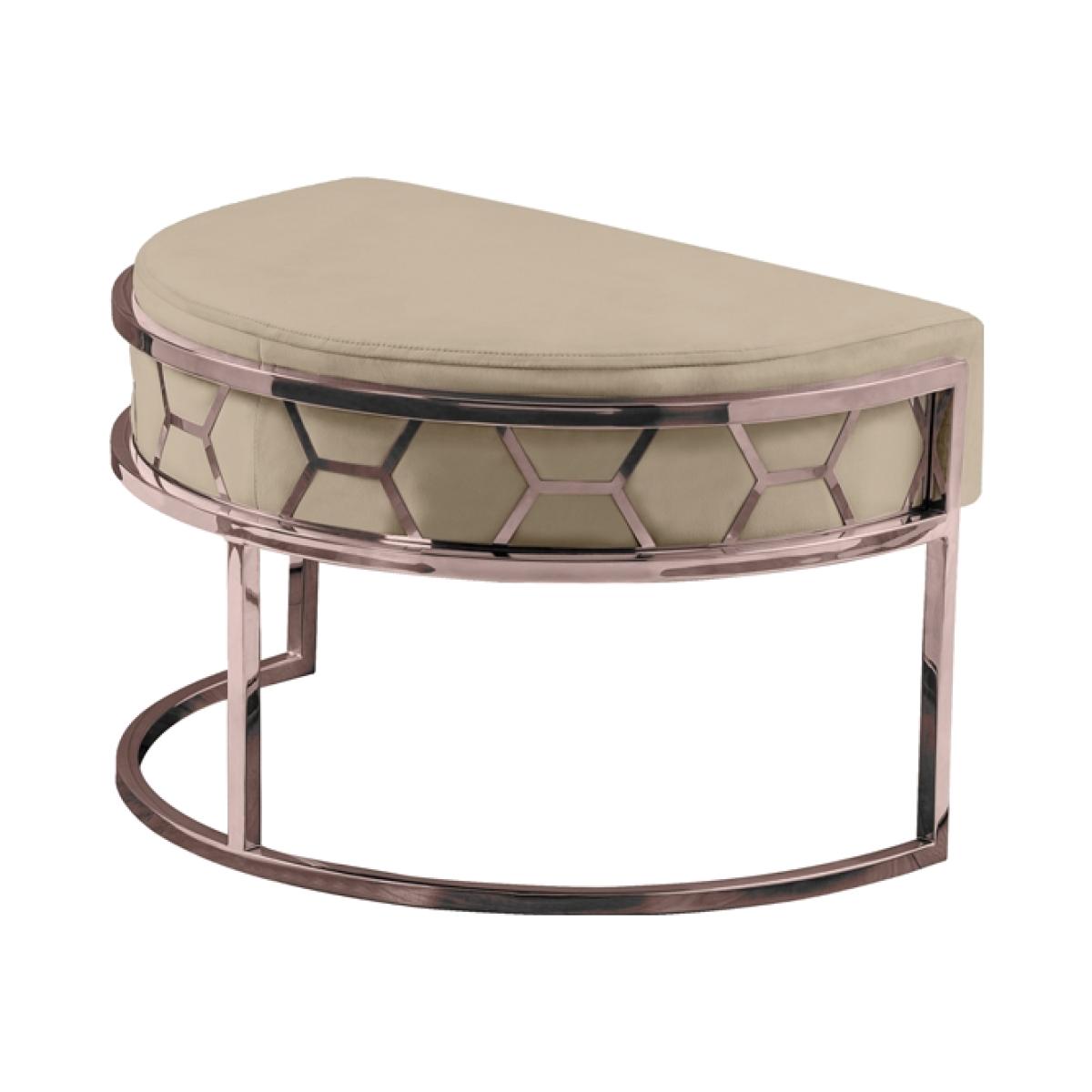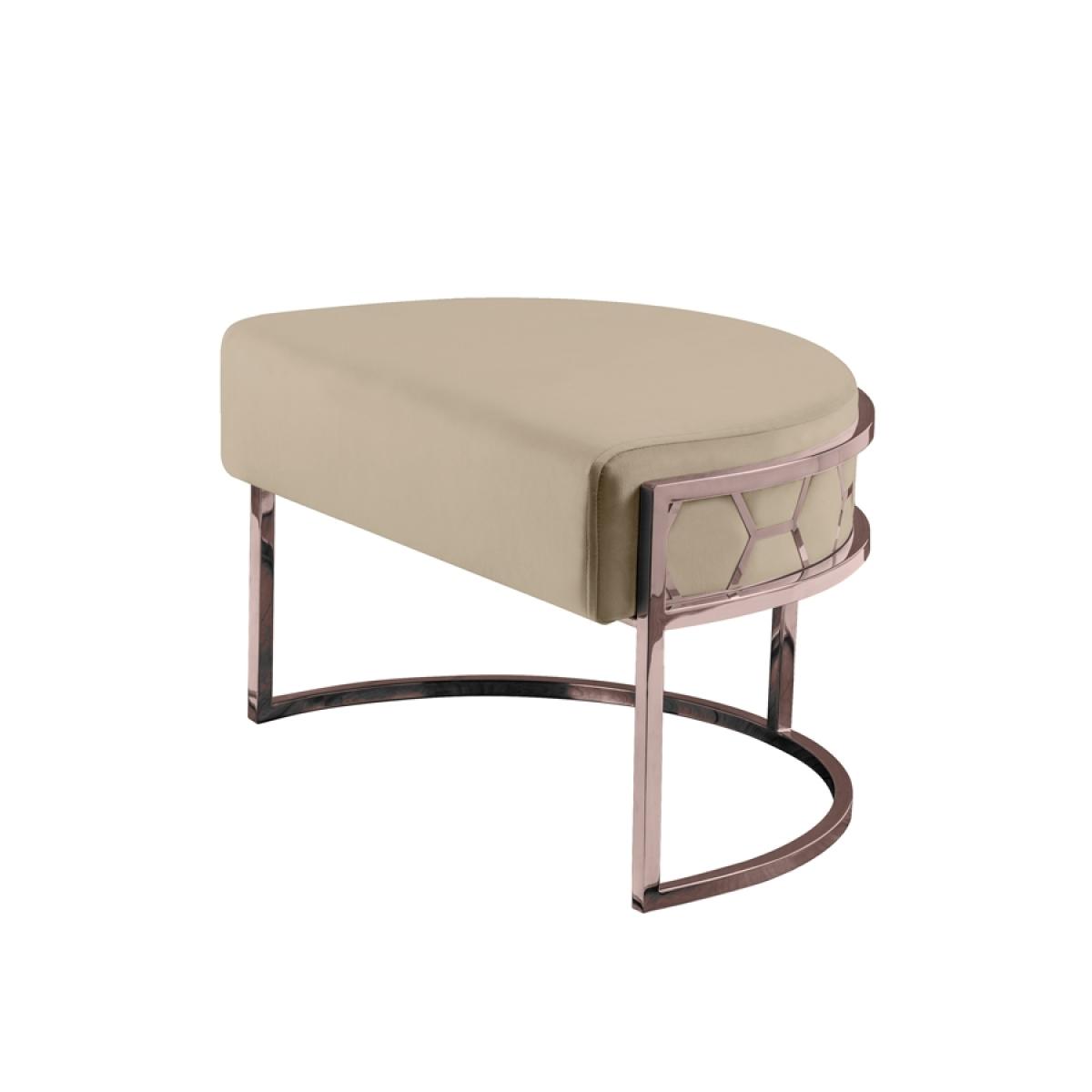 A unique and distinctive footstool with laser cut hexagonal detailing. Inspired by highly collectable Mid-Century American furnishings. Steel frame with electroplated copper finish. Upholstered to order in the UK. Velvet upholstery fabric, available in a selection of colours. Can be upholstered in customers own fabric subject to suitability. We recommend that customers request a free swatch of Fabric, to check the colour as on screen colour can vary. As this item is bespoke made, returns cannot be accepted due to the colour. Please E-mail or call for a swatch.