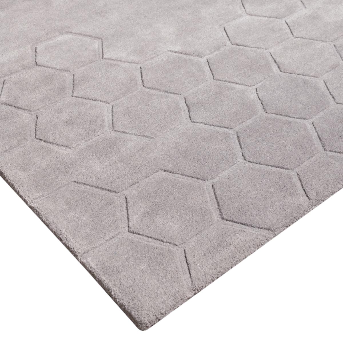 A geometric inspired design with high/low loop cut pile detail. Hand Tufted 100% Wool. Wool rugs shed fibres during vacuum cleaning and everyday use; this is not a fault but a natural characteristic. Please use only suction type vacuum cleaner as rotating brush vacuum may damage the rug. Spills should be cleaned immediately to help avoid staining- use a clean white absorbent cloth to dab the spillage, avoid scrubbing and chemical cleaners. For deep cleaning use a professional carpet cleaning company- do not dry clean or tumble dry. If loose threads appear carefully trim them with scissors.