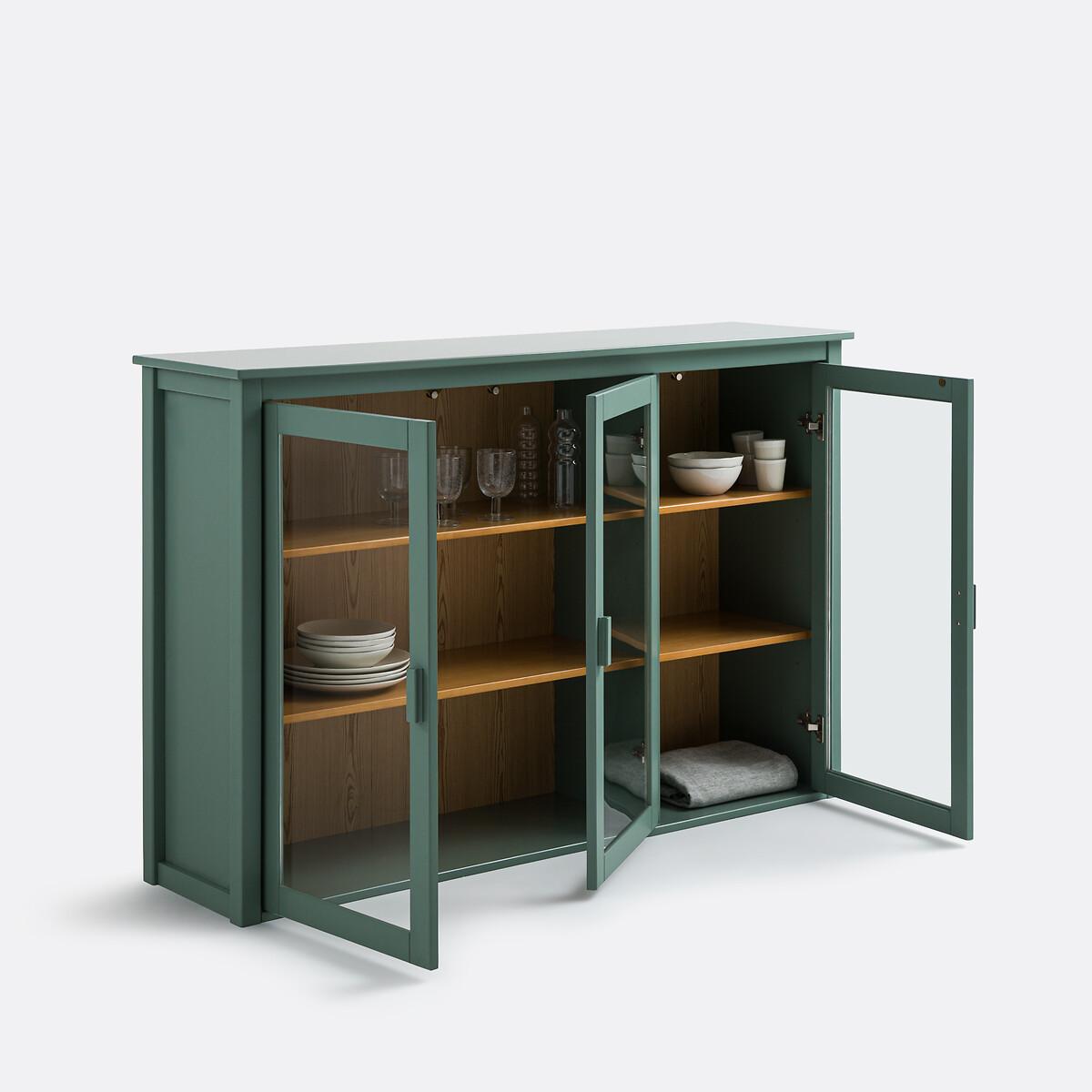 Country chic design. Plenty of storage capacity. The Alvina extension unit complements the low display cabinet in the same range, which it can be placed on. Made from FSC®-certified mixed solid pine and MDF, it is ideal for storing spices, glasses and crockery behind glass doors in the kitchen. Or books and knick-knacks in a living room. Designed by La Redoute Intérieurs. Product Details • Structure in solid pine and painted MDF panels, acrylic finish • Solid pine and tempered glass doors • Oak effect MDF base with polyurethane finish • Solid pine shelves, acrylic varnish • FSC® Mixed certified wood • 2 fixed interior shelves • Wall hooks (screws and plugs not supplied) • People required for assembly: 2. Dimensions • Width: 160cm • Height: 104cm • Depth: 40cm • Weight: 55.6kgDelivery:. This product requires assembly. Available for home delivery. Note! Please check that all access points are large enough to accommodate your delivery (doors, stairs, lifts). • WOOD FROM MORE SUSTAINABLY MANAGED FORESTS AND CONTROLLED SOURCES. FSC® Mix wood contains at least 70% FSC® certified and/or recycled wood, the remainder being FSC® controlled wood. Dimensions and weight of parcel2 parcels • L111 x H20 x D56cm. 31.2kg • L170 x H21 x D46cm. 39.5kg