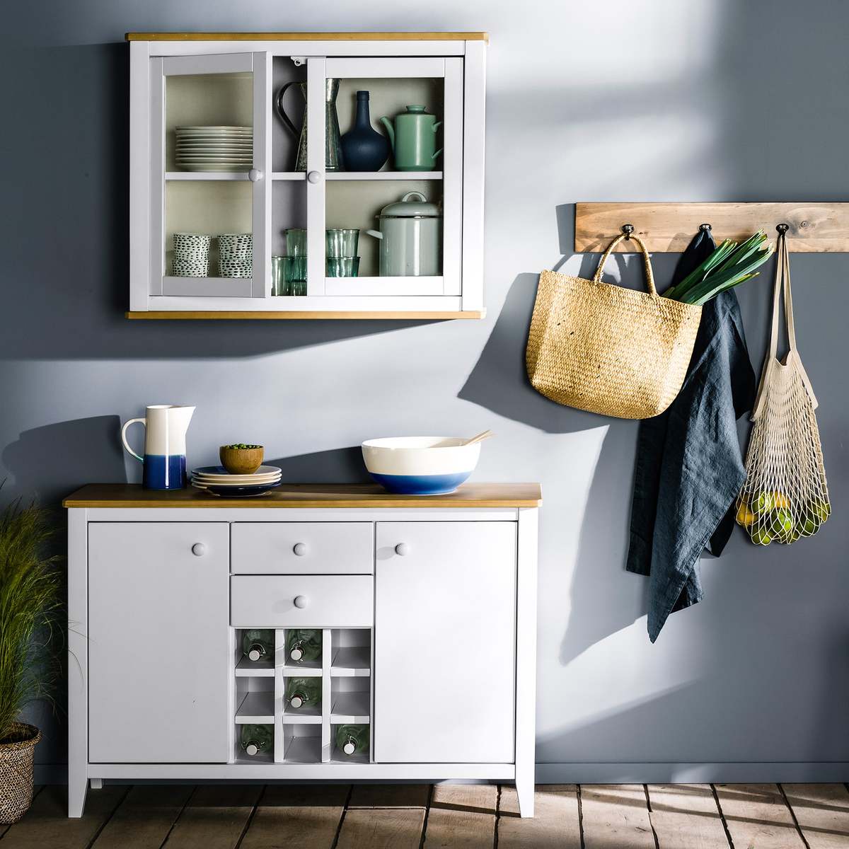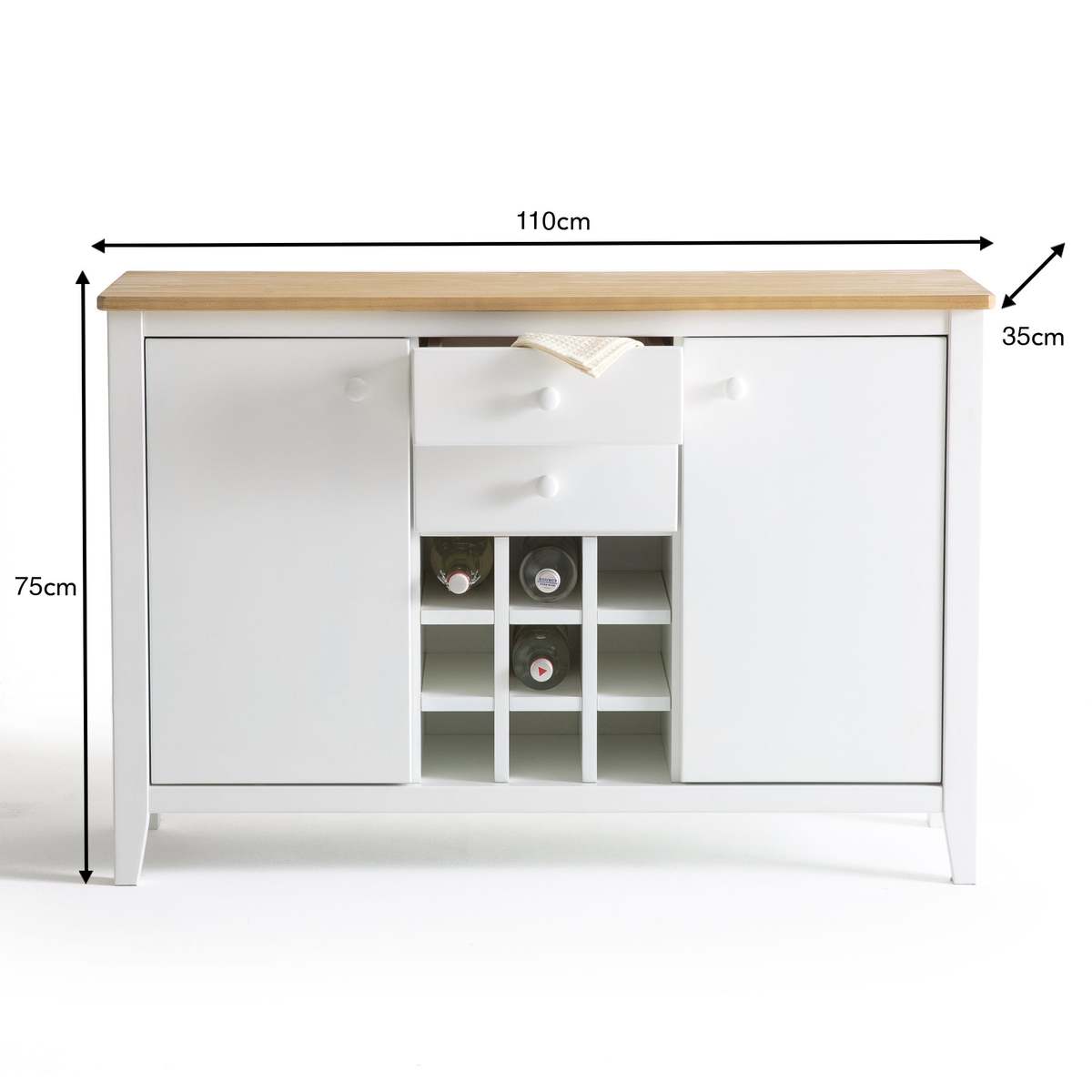 The Alvina sideboard. The space-saving piece of furniture is very practical in a kitchen with its 2 doors, 2 drawers and its bottle rack!
