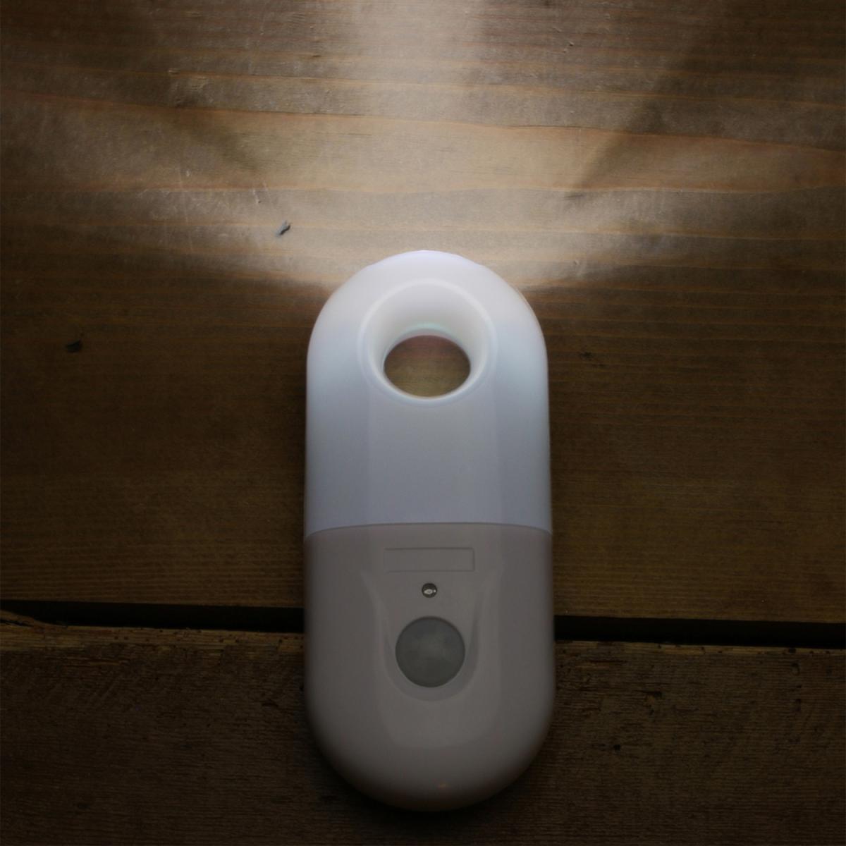 This compact luminaire offers both a portable nightlight and a powerful torch - the ideal solution to your security and safety. Whilst docked this handy night light will wirelessly recharge, ready for use as a super-bright torch with 3 targeted LEDs. In automatic mode, the night light will illuminate when it detects movement in a 3m, 110o detection range.