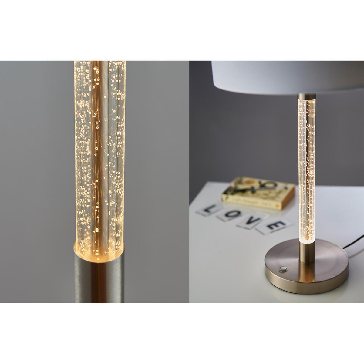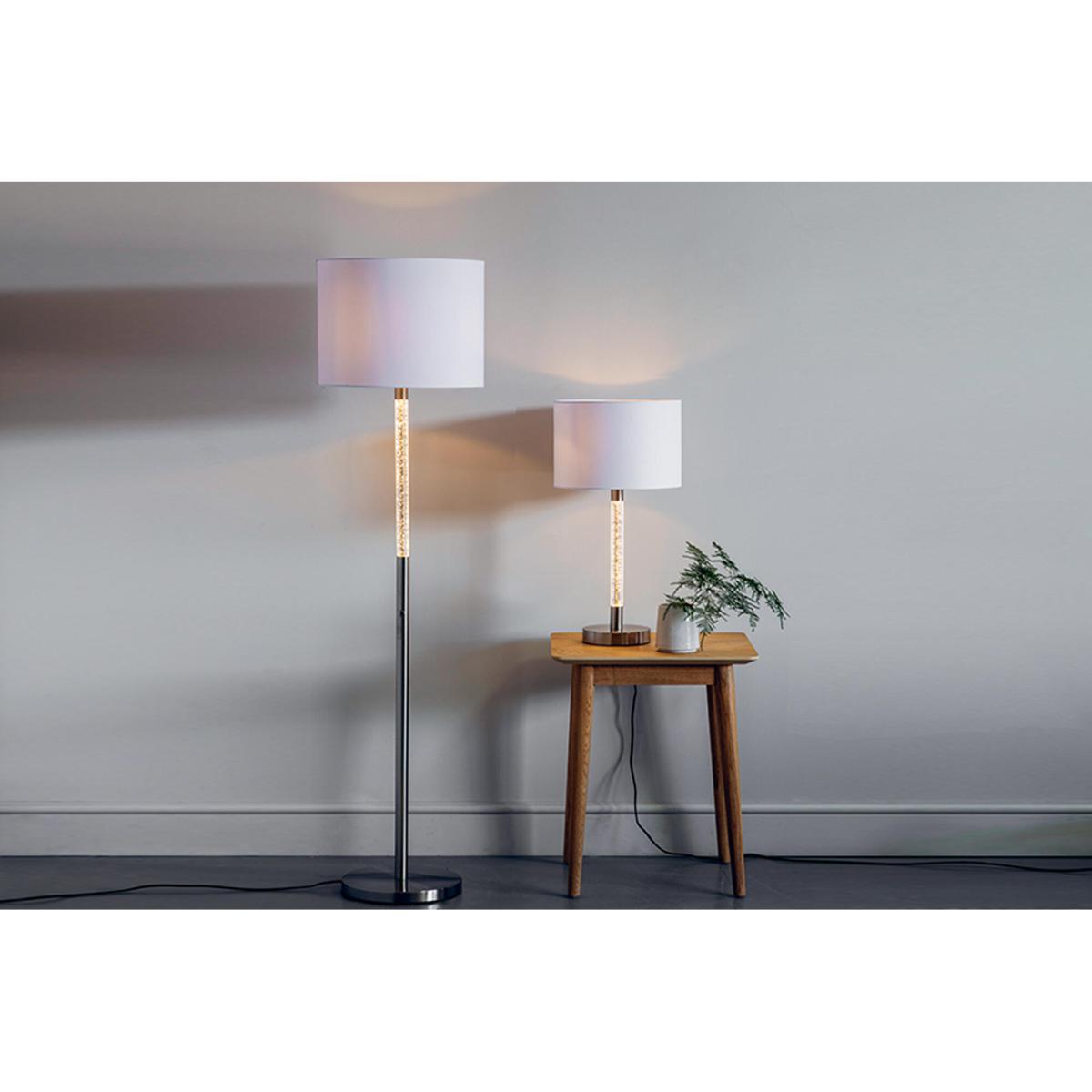 Stunning, glistening perfection, The Alwin Table Lamp is our way of lighting up your home. With a half and half stand, featuring a clear acrylic section to the base, with a bubble effect which creates a beautiful effect from an additional LED light source at the top. The Alwin, available as a floor lamp as well, has a beautiful contemporary fabric shade, and for added measure both the stem and main lamp can be lit separately.