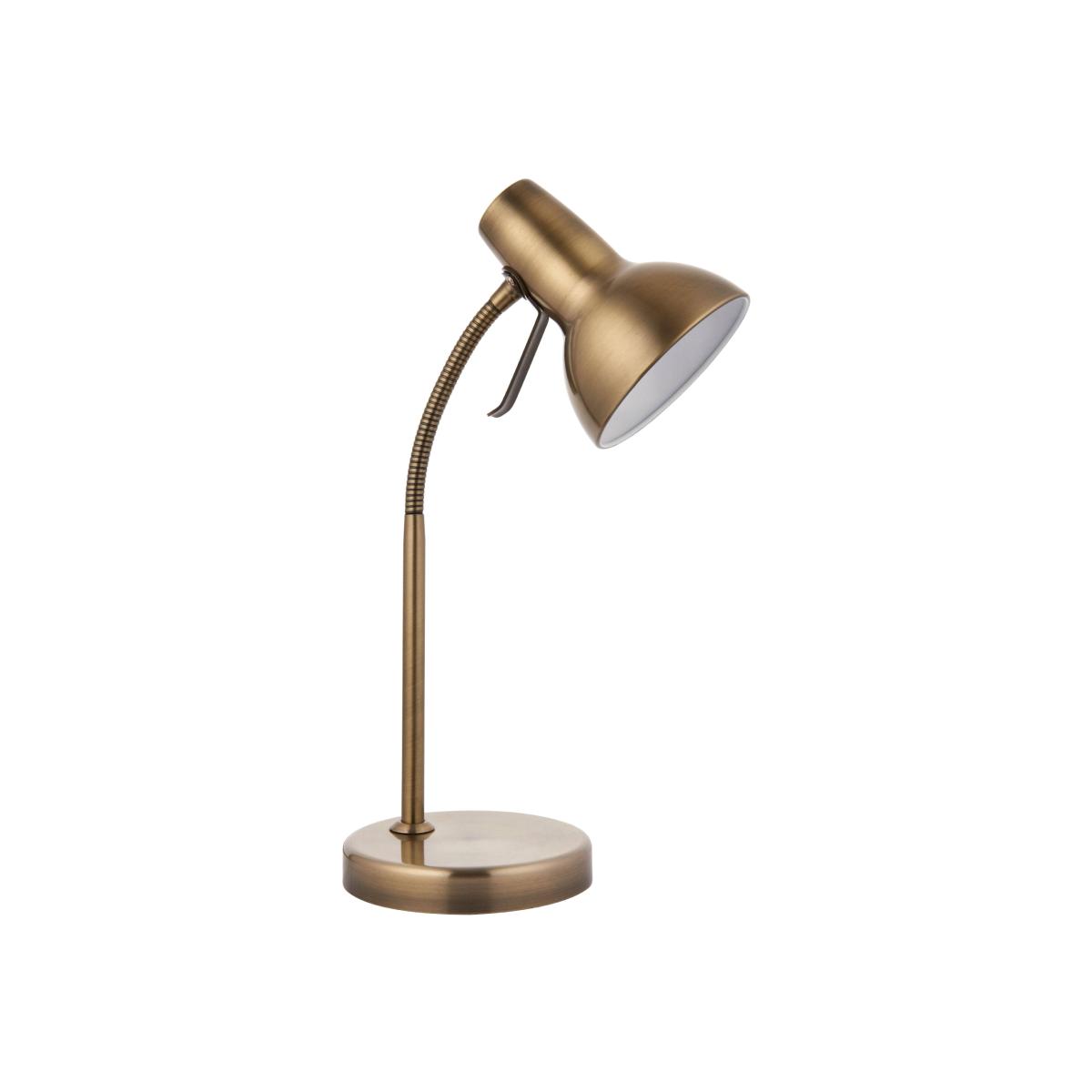 Modern desk lamp boasting an antique brass finish. A functional piece, this desk lamp is part of the Amalfi range from Endon. Finished in antique brass throughout, the lamp features an adjustable lamp head, easily adjusted by using the curved handle located from beneath. It also comes complete with an integrated USB socket, meaning you can charge your mobile phone directly from the lamp base. Operated by an on/off switch located at the back of the lamp head, it is ideal for use in living rooms, bedrooms and office spaces.