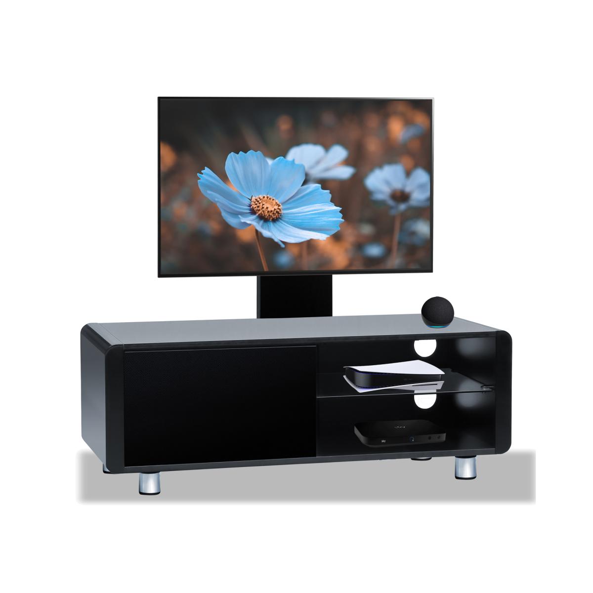 As striking as it is elegant, the Amalfi TV cabinet from Centurion Supports is a real head turner. With its soft curves the Amalfi stand is very much in harmony with today's modern gadgets. Suitable for TV screens up to 55" the Amalfi cabinet caters for the largest of screens and has ample storage for a full range of equipment. Finished in gloss black with contrasting silver feet, the Amalfi TV stand is complemented by a glass Beam-Thru door with infrared compatibility to maintain a very sleek appearance whilst hiding away equipment from view. The shelving of the Amalfi TV unit also offers additional storage with two shelves while the curvy corners echo the smoothness of its surface. The practicality is further enhanced by full cable management at the rear of the cabinet offering plenty of ventilation for the equipment housed inside. As striking as it is elegant, the Amalfi TV cabinet from Centurion Supports is a real head turner. With its soft curves the Amalfi stand is very much in harmony with today's modern gadgets. Suitable for TV screens up to 55", the Amalfi cabinet caters for the largest of screens and has ample storage for a full range of equipment. Finished in gloss black with contrasting silver feet, the Amalfi TV stand is complemented by a glass Beam-Thru door with infrared compatibility to maintain a very sleek appearance whilst hiding away equipment from view. The shelving of the Amalfi TV unit also offers additional storage with two shelves while the curvy corners echo the smoothness of its surface. The best feature of the Amalfi TV cabinet is the compatibility with the Screen Mounting Arm that transforms the cabinet into a cantilever style system to give your TV a floating appearance. The practicality is further enhanced by full cable management at the rear of the cabinet, offering plenty of ventilation for the equipment housed inside. Dimensions: Width: 120cm x Depth: 40cm x Height: 46cm / Maximum Top Load Weight: 60kg.