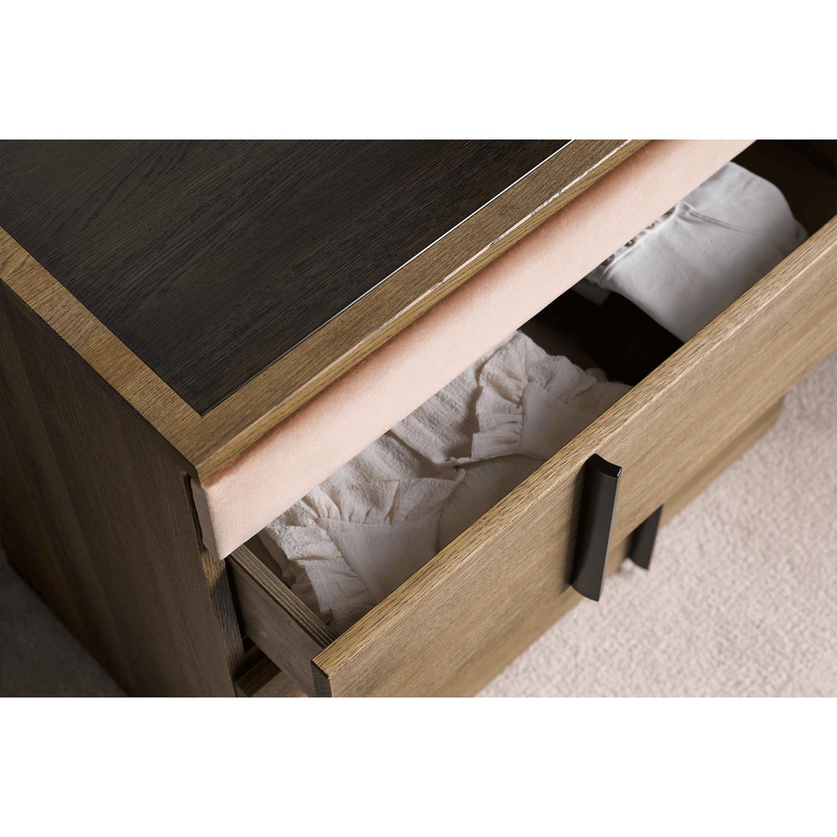 Amalfi modern design and smoked glass inlay cuts a contemporary figure. Providing ample space across 3 drawers, complete with a unique handle design, and a fabric accessory drawer available in our wide selection of velvets, linens, cottons and more, this wooden wonder is the perfect partner to getting ready, day or night.