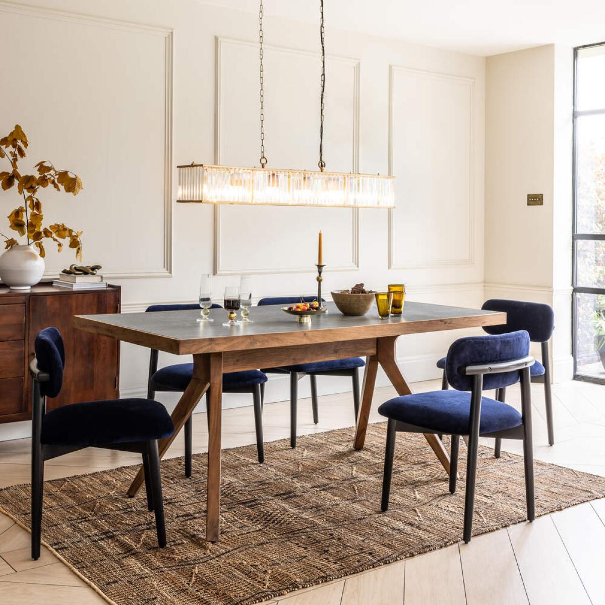 I’m a fan of the Amalfi pendant for its clean, linear crystal bars that bring contemporary glamour without feeling heavy. It sits beautifully over a dining table or kitchen island in modern, minimalist or transitional schemes - pair it with warm woods, deep-coloured upholstery or soft neutrals. For best results, hang it about 75 cm above the surface, fit warm-white LEDs on a dimmer, and echo its metal finish in small accessories like candlesticks or mirror frames so the light really anchors the room.