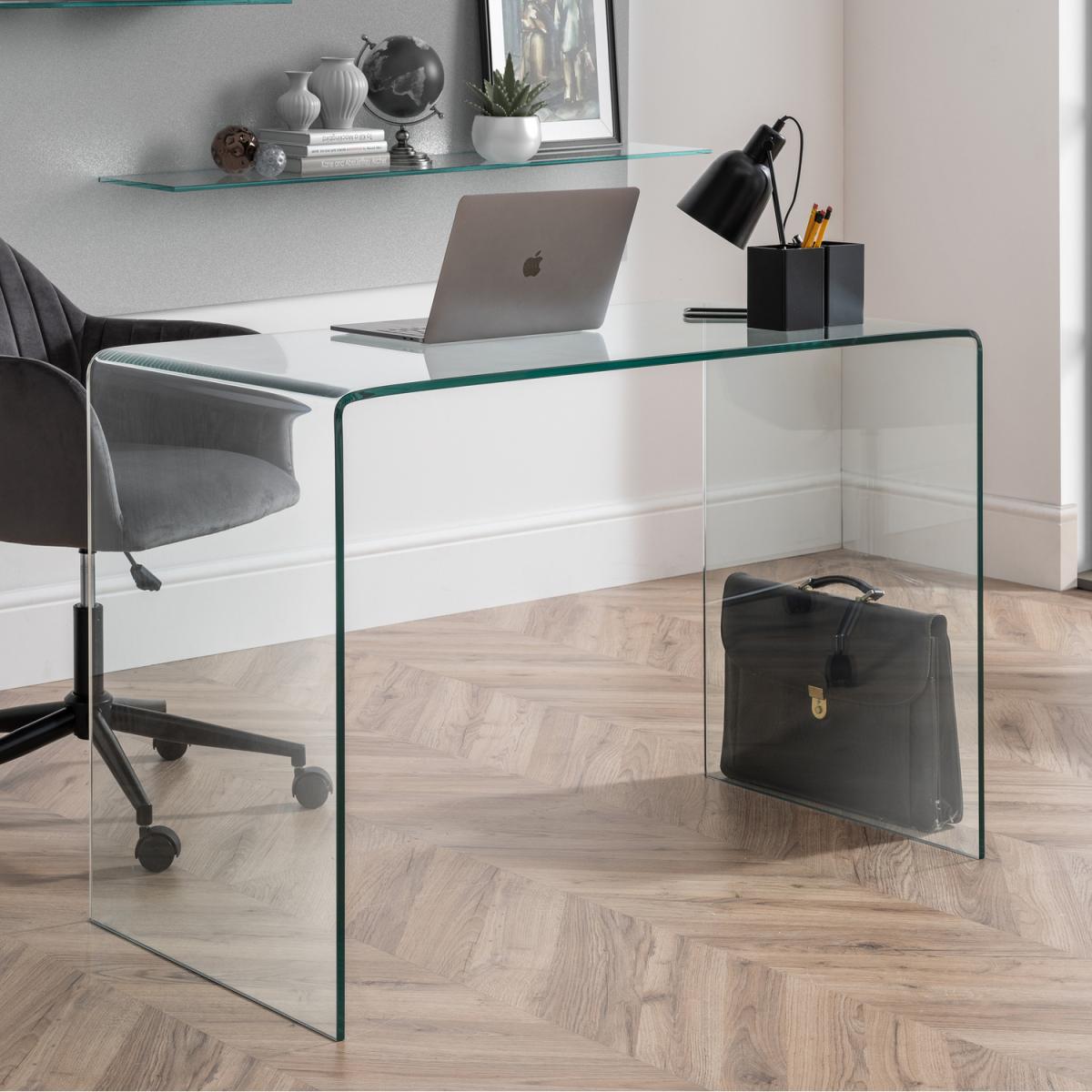 This Amalfi bent glass desk is beautifully crafted from a single sheet of tempered glass, bent and moulded into a curvacious design with no joins or fixings. From a collection of three pieces, the Julian Bowen Amalfi clear glass range will create the feeling of more space in your home, whilst adding a touch of elegance.