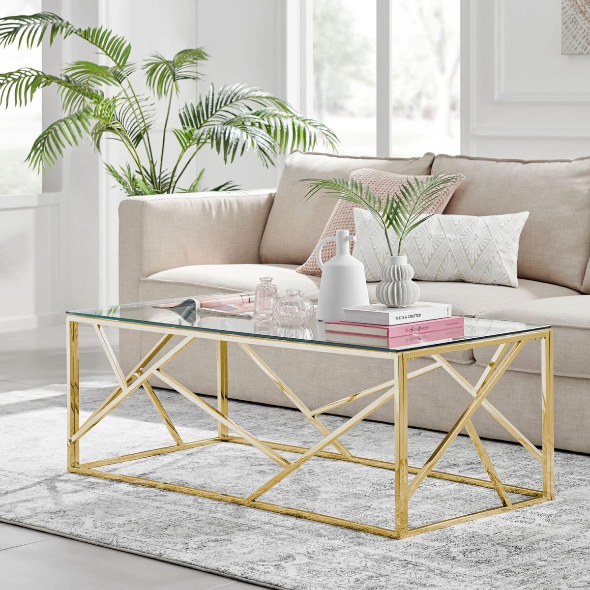Our Amalfi rectangular coffee table is a luxurious piece that will definitely add a bit of glam to your home! The abstract pattern of the frame and the clear glass table top keep this coffee table light and airy. Add in the shiny gold chrome and the Amalfi will bounce natural light beautifully - great for darker or shadowed corners. With a frame constructed of stainless steel and with 8mm thick tempered glass on top, the Amalfi is strong, sturdy and durable while looking delicate. It's also got plenty of surface space to keep all your living room essentials accessories looking gorgeous. We offer this in silver chrome, along with matching Amalfi side and console tables, so check out the full range.