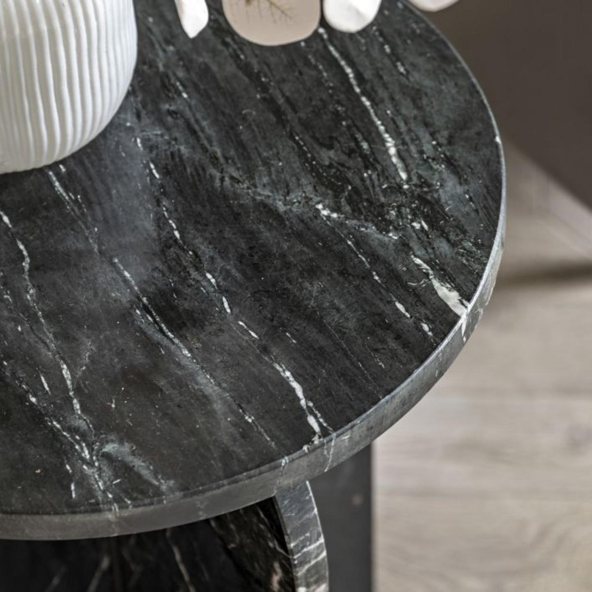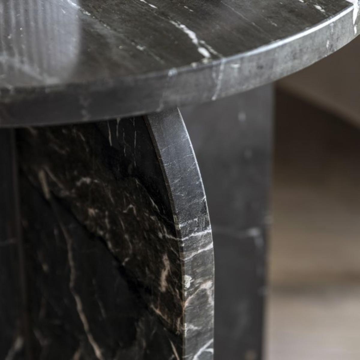 Add a touch of style to a room with this beautiful table, crafted from marble. The solid top and base show the natural pattern of the marble to great effect whilst the base features gently curved tops to create a stunning design feature.