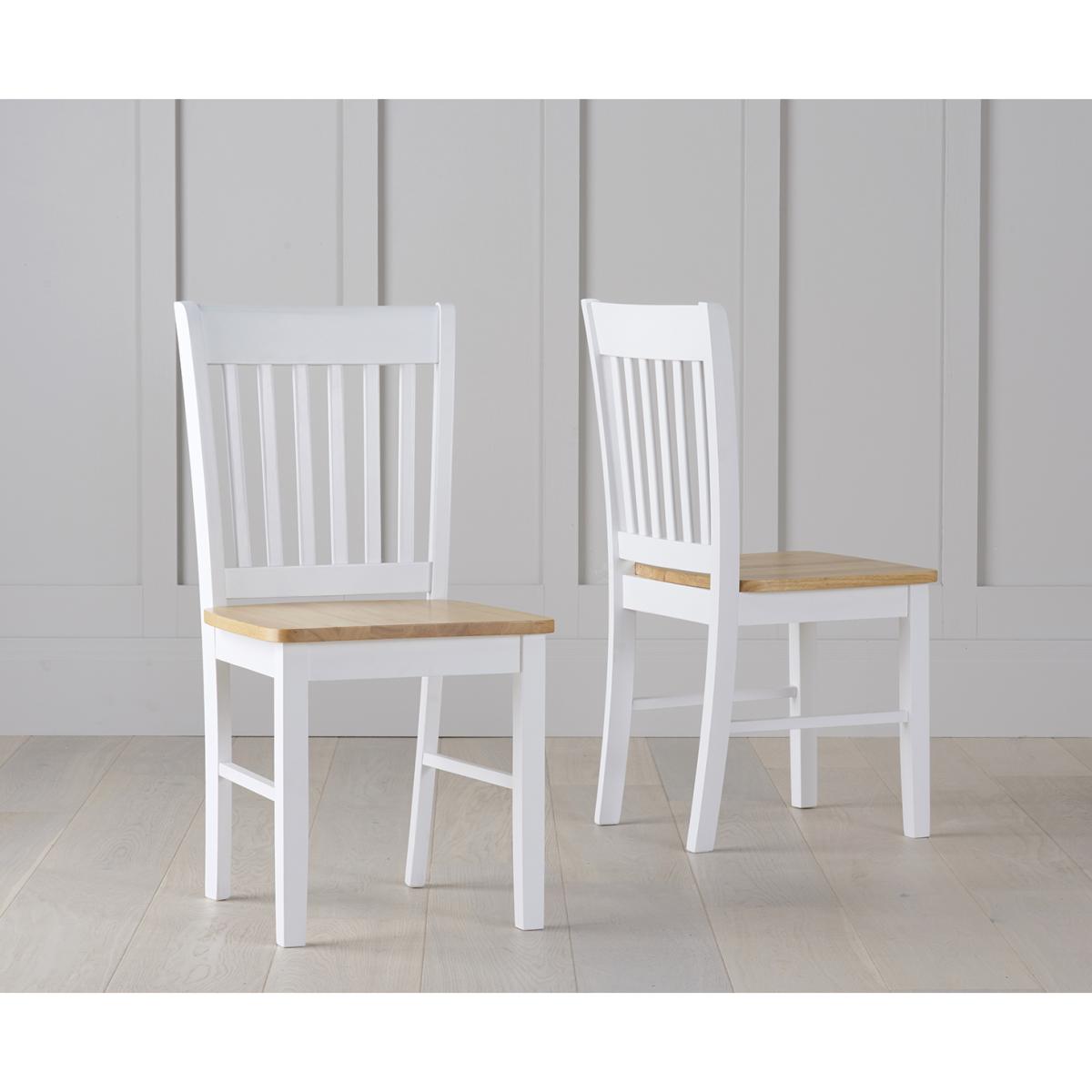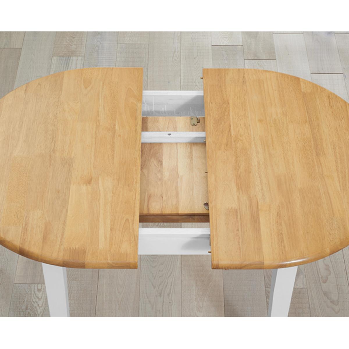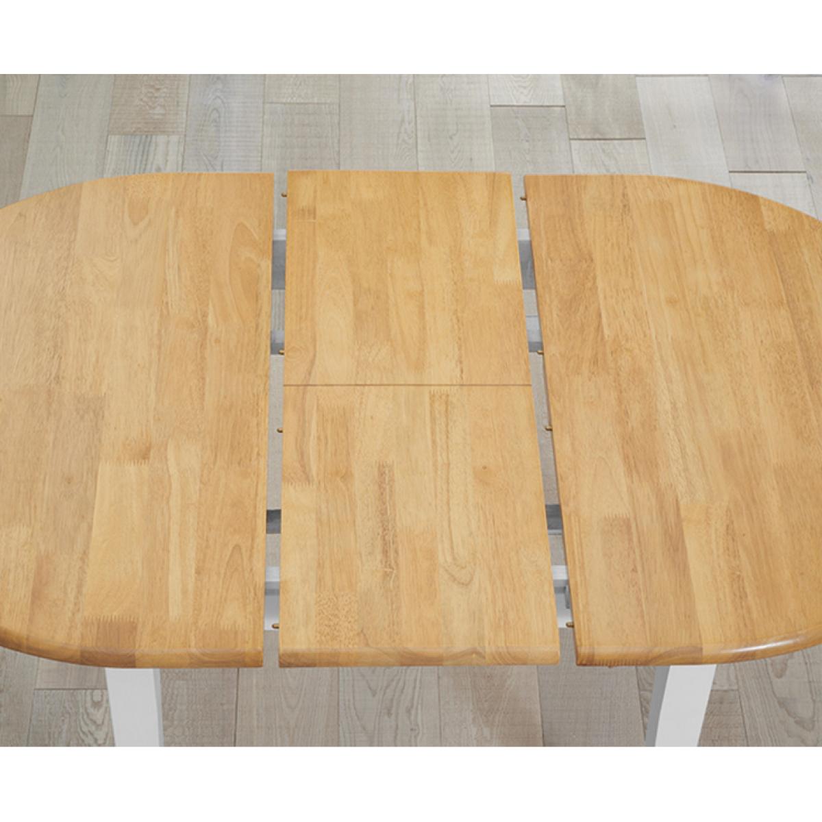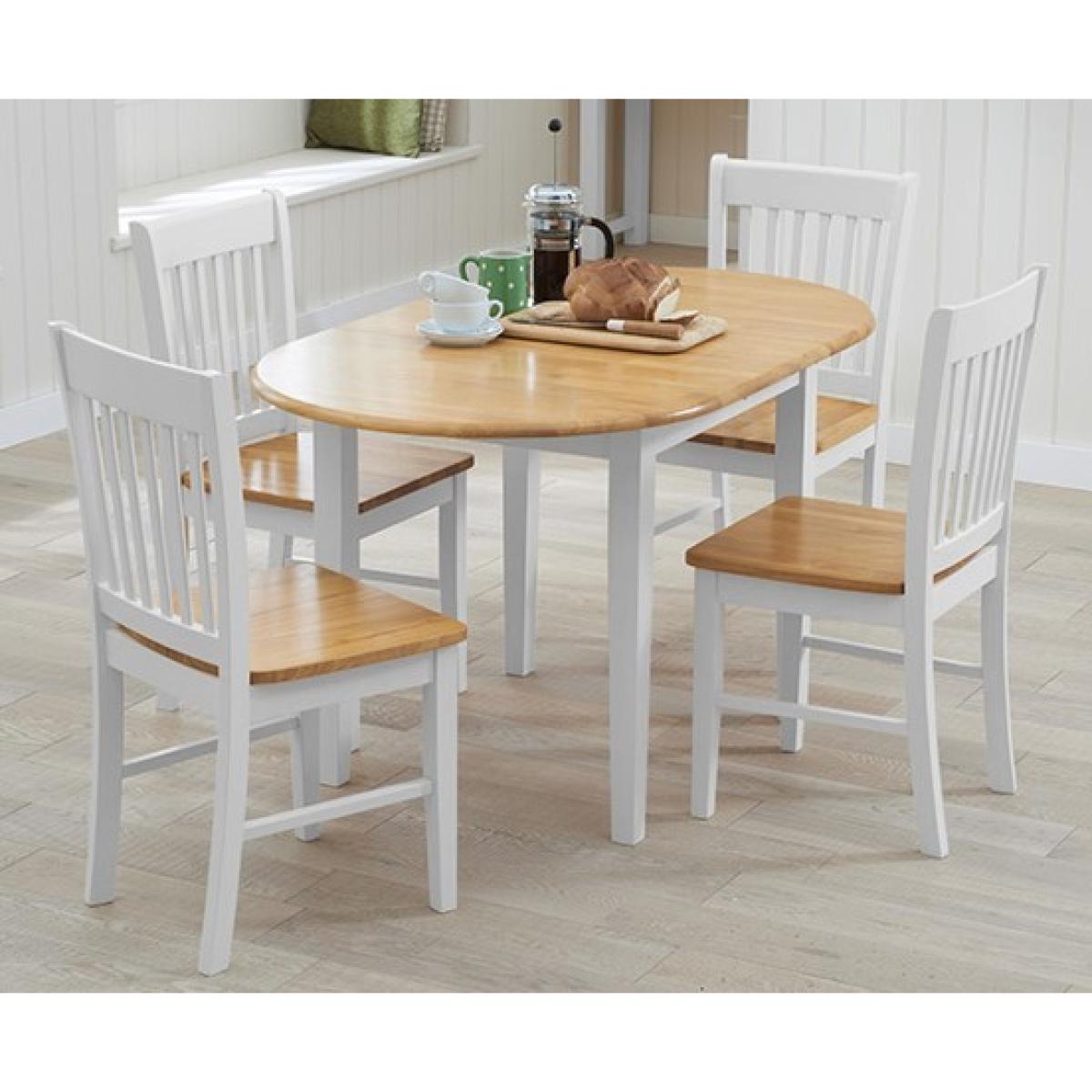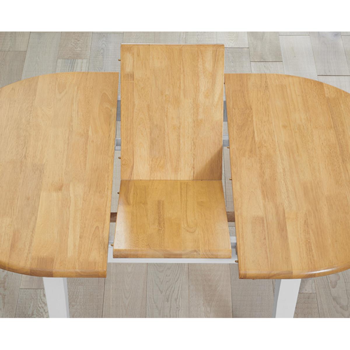 The Amalfi Oak and White Extending Dining Table brings style and practicality to any home. Chic and versatile, the space saving dining table comfortably seats up to 4 people. Crafted with care from resilient solid hardwood, the extending dining table features a smooth table top with a clear lacquered finish supported by durable white painted legs for an attractive contrast. Ideal for kitchens and small dining areas, the painted dining table extends to 135cm in length in moments via a convenient inbuilt butterfly extension feature. Complementing the painted extending table, Amalfi Chairs are crafted from solid hardwood and feature a slatted backrest and white painted finish. The stylish dining chairs are complete with a bevelled timber seat.