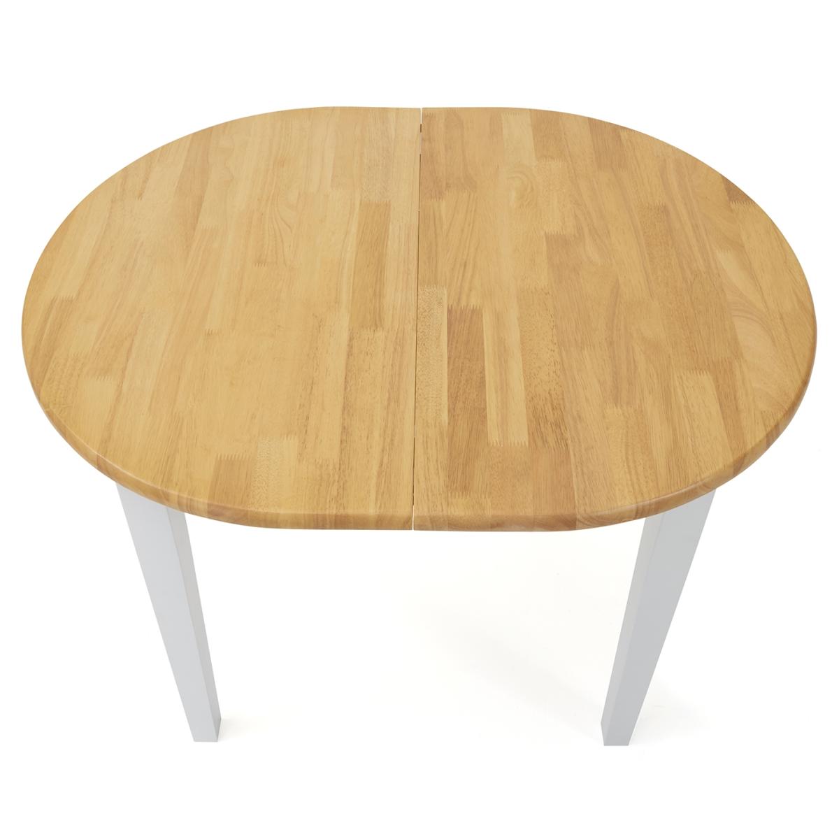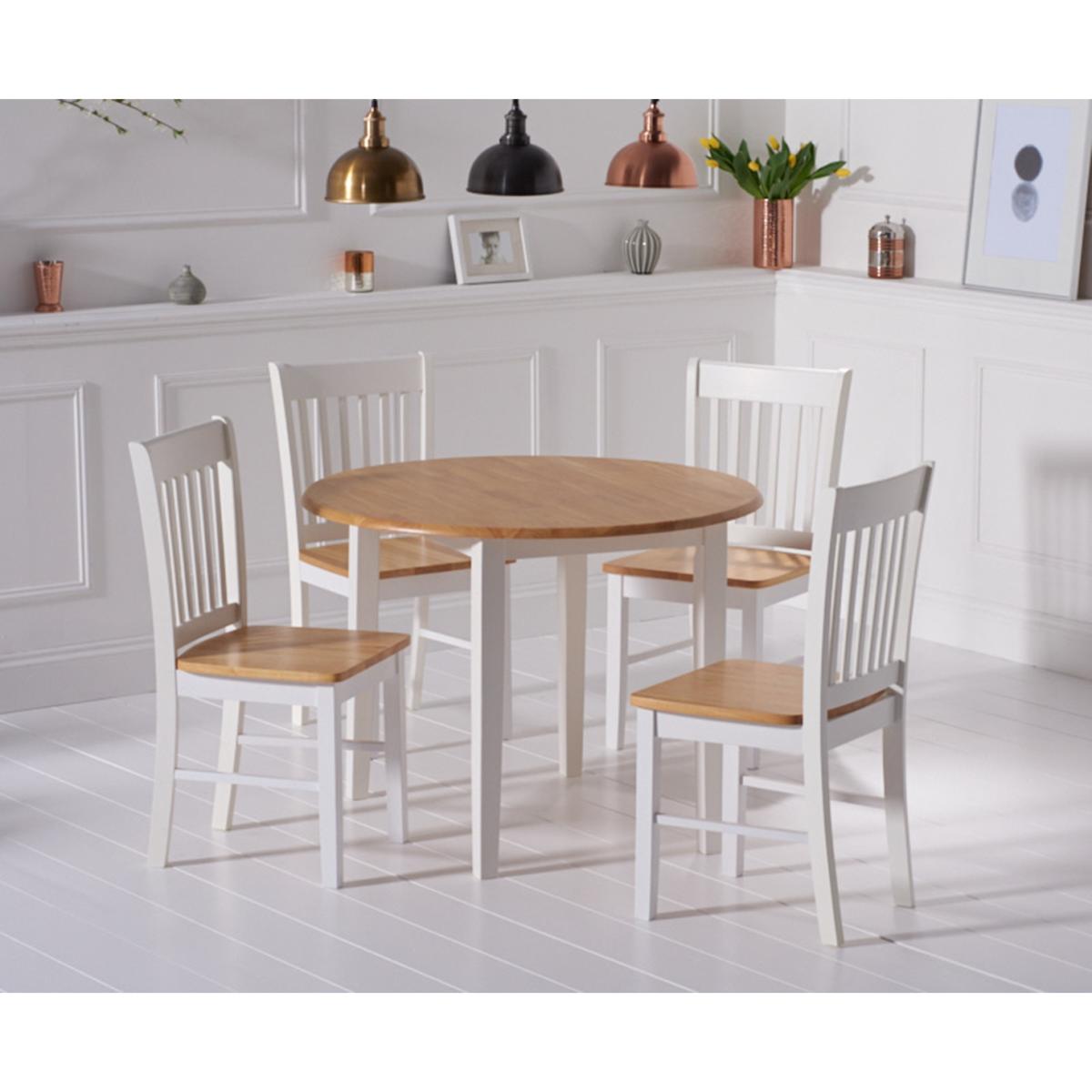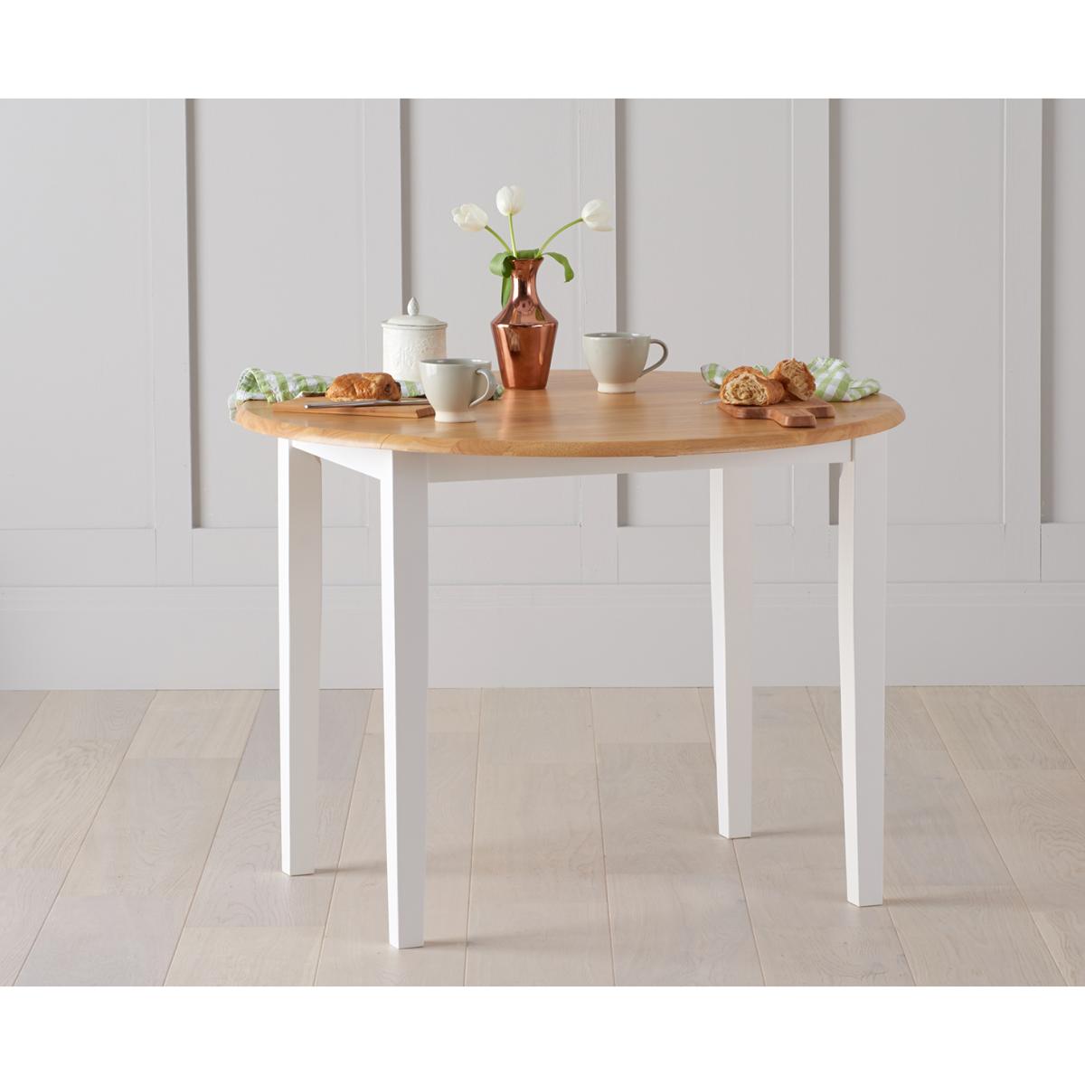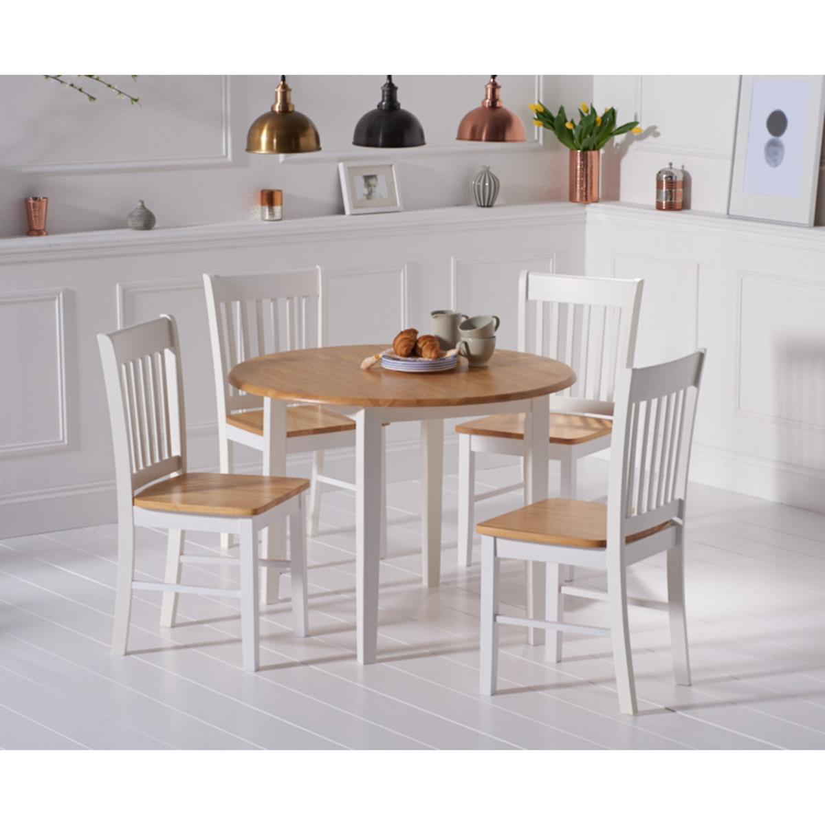 The Amalfi Oak and White Extending Dining Table brings style and practicality to any home. Chic and versatile, the space saving dining table comfortably seats up to 4 people. Crafted with care from resilient solid hardwood, the extending dining table features a smooth table top with a clear lacquered finish supported by durable white painted legs for an attractive contrast. Ideal for kitchens and small dining areas, the painted dining table extends to 135cm in length in moments via a convenient inbuilt butterfly extension feature. Complementing the painted extending table, Amalfi Chairs are crafted from solid hardwood and feature a slatted backrest and white painted finish. The stylish dining chairs are complete with a bevelled timber seat.