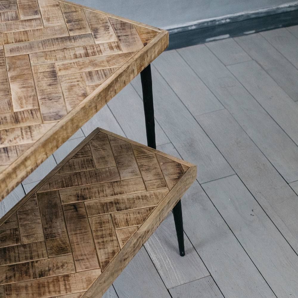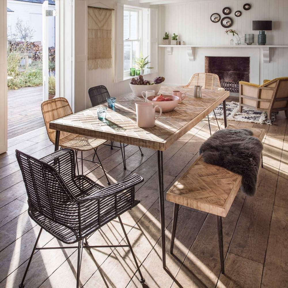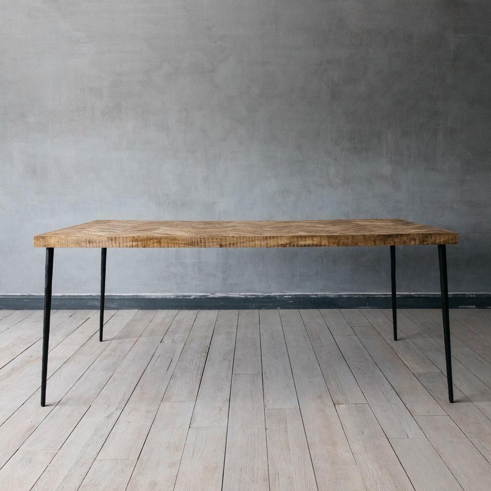 Entertain in style with our impressive Amaliah Chevron Dining Table. Supported by beaten iron legs, its design ensures it is large enough to seat six comfortably around its mango wood parquet top. It is destined to take pride of place in any dining room or kitchen.