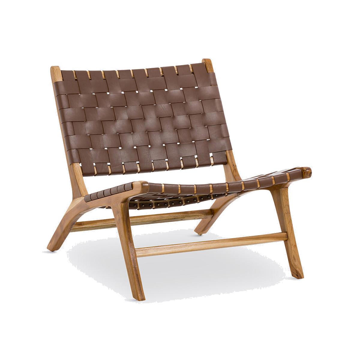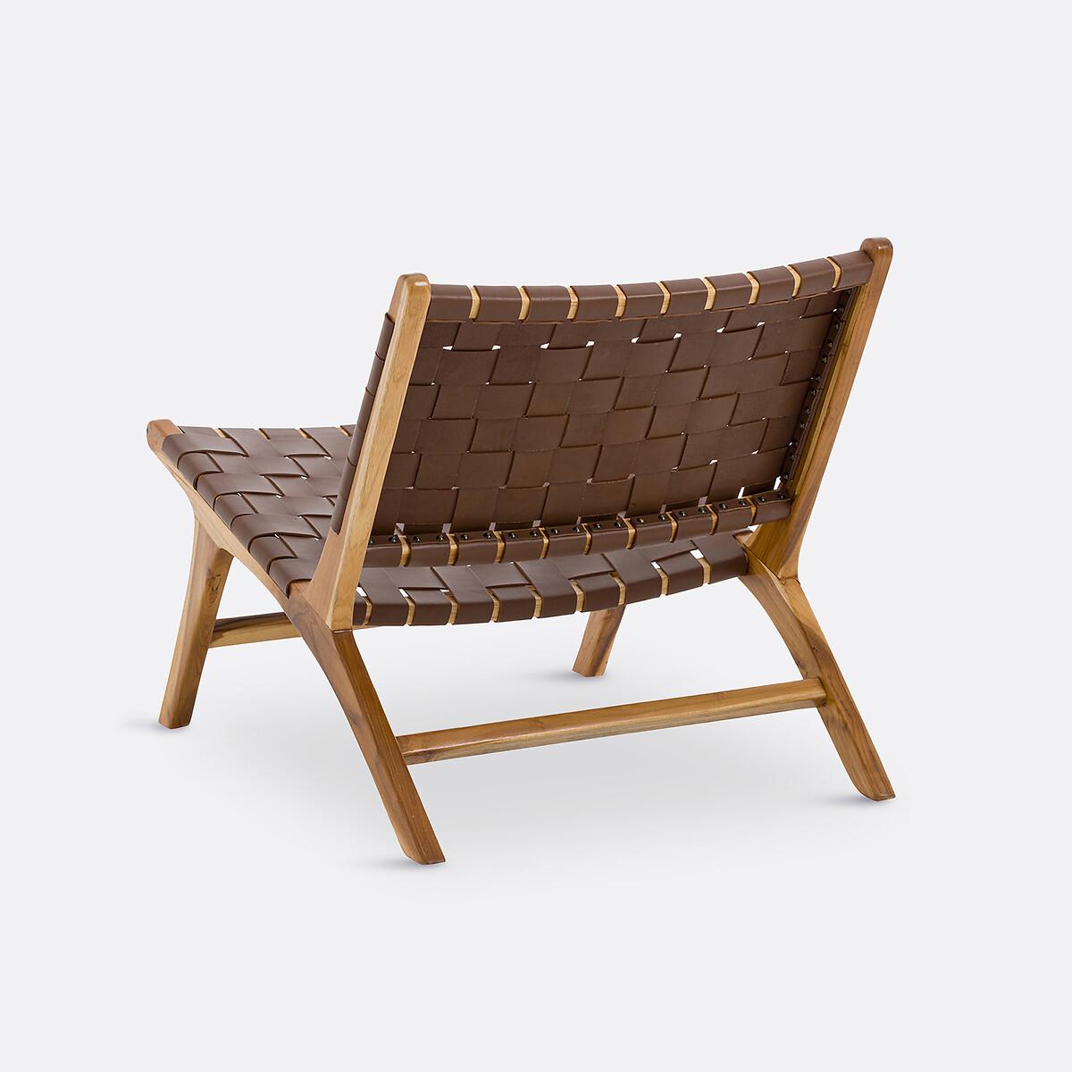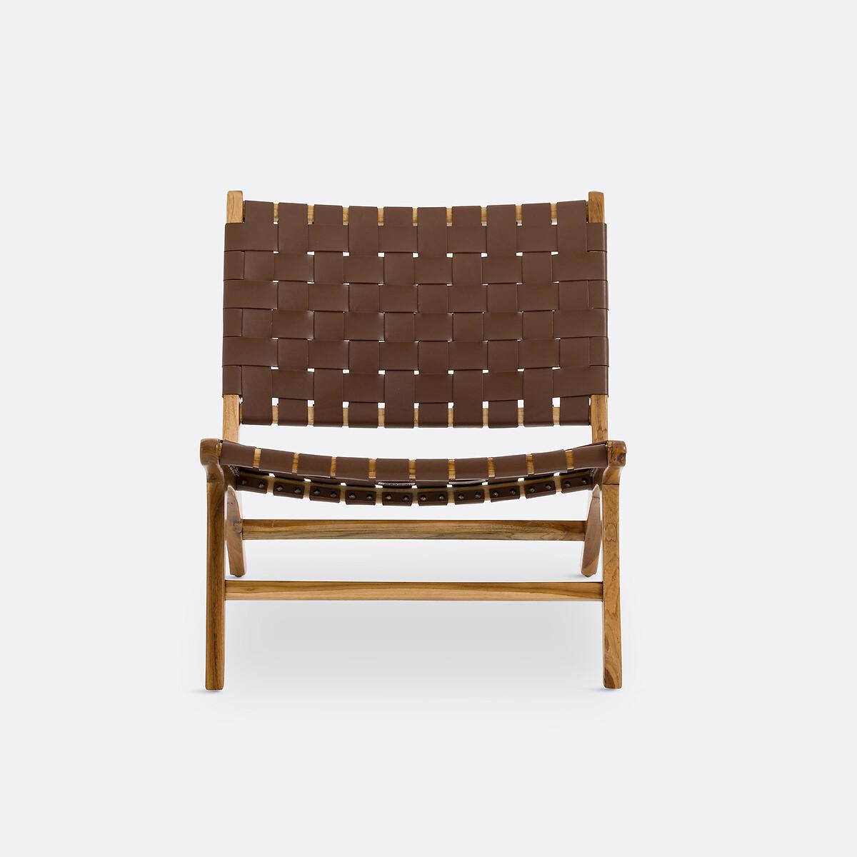 A wide, low seat with an inclined back. How does one resist the call of the Amanda lounge chair, in solid teak and woven leather? To chill, read a book or sip a drink with friends. it's perfect!